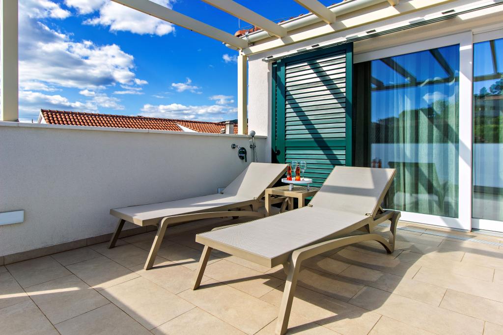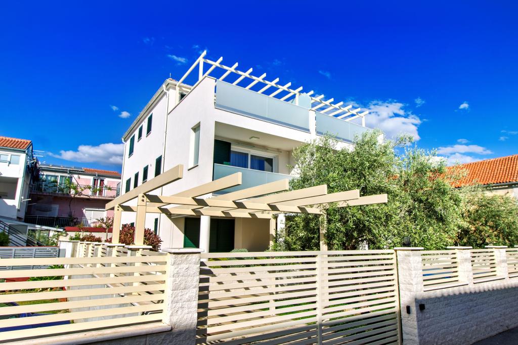 Die Three Olives-Anlage ist ein Neubau und öffnet ab Sommer 2024 erstmals ihre Türen für Gäste. Im Innenhof des Gebäudes stehen drei alte Olivenbäume, ein für die kroatische Küste und die Inseln so typisches Holz, aus dessen Früchten das Öl bester Qualität gewonnen wird, das oft als „flüssiges Gold“ bezeichnet wird. Der Name Three Olives deutet auf eine Umgebung des Friedens, der Ruhe und des Überflusses hin. Die Apartments der Anlage sind einzigartig, modern und voll funktionell ausgestattet, sodass Sie sich wie zu Hause fühlen können! Die Anlage ist hervorragend positioniert; Es liegt 150 m vom Meer und 200 m vom Stadtzentrum entfernt. In der unmittelbaren Umgebung gibt es keine Hauptstraßen oder Geschäftseinrichtungen, so dass den Gästen tagsüber und nachts Ruhe garantiert ist. Kurz gesagt, alles ist für Ihren kompletten Urlaub bereit.