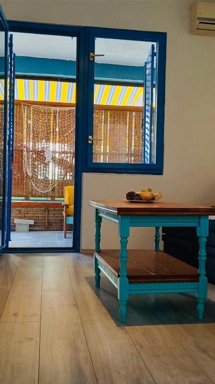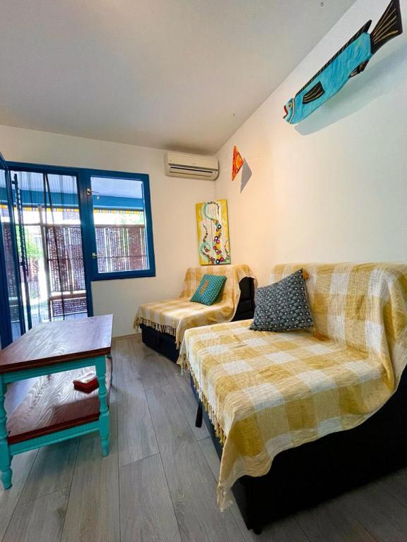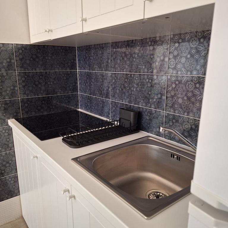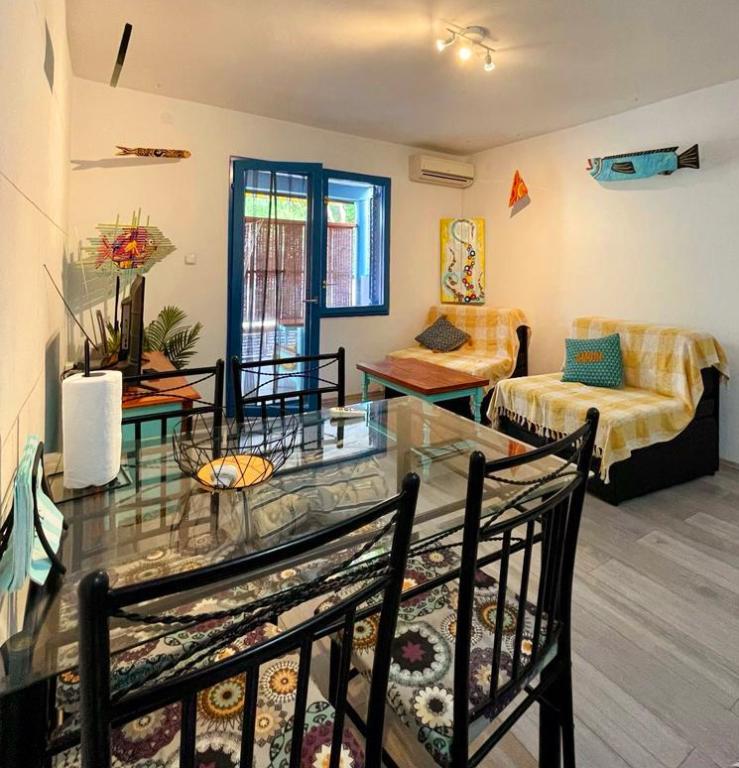 Abgesehen von der Tatsache, dass Sie sich in einer versteckten und ruhigen Ecke eines wunderschönen kleinen Fischerdorfes befinden, werden Sie beim Überschreiten der Schwelle von einer ungewöhnlichen Einrichtung und einer Verspieltheit begrüßt, die Ihren Aufenthalt wirklich unvergesslich machen wird. Segeln Sie in den Urlaub mit farbenfrohen, verspielten Fischen, die von Zimmer zu Zimmer segeln, und jedes Möbelstück hat seine eigene Geschichte. Vom Schlafzimmerfenster aus können Sie die Lorbeerbäume sehen und riechen. Vom Wohnzimmer aus, wo es bequeme Zustellbetten gibt, können Sie auf die Terrasse gehen, wo Sie völlige Intimität genießen können. Während die Klimaanlage für Abkühlung sorgt, begeben Sie sich in der voll ausgestatteten Küche auf ein kulinarisches Abenteuer. Auf der Außenterrasse im dichten Schatten können Sie Kontakte knüpfen und speisen. Selbstverständlich hat Ihr Blechtier einen garantierten Platz, direkt neben unserer neu eingerichteten Wohnung.