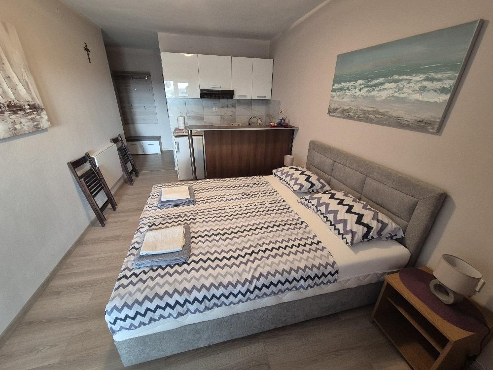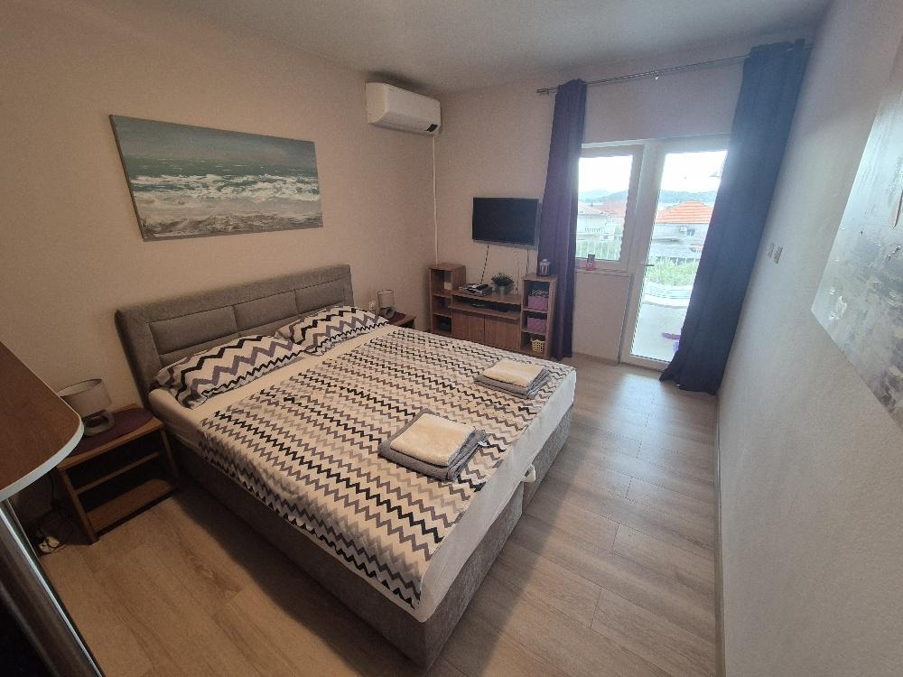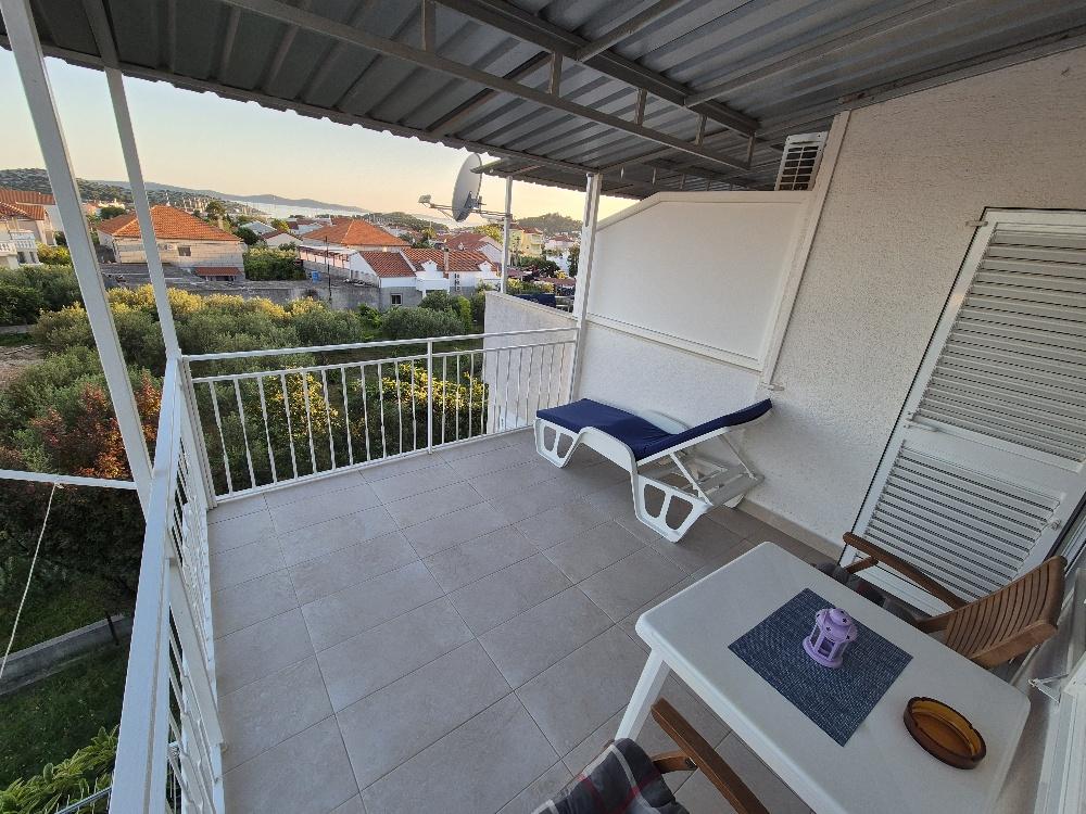 Wir vermieten eine charmante Zwei-Zimmer-Wohnung in Tribunj, einem malerischen Fischerdorf, das sich an der Küste erhebt, nicht weit vom malerischen Vodice entfernt und für sein traditionelles Frachtrennen bekannt ist. Dieses Apartment liegt im zweiten Stock eines kleineren Gebäudes und bietet eine geräumige Terrasse mit einem wunderschönen Blick auf das Meer und die umliegende Landschaft, die bis nach Vodice, Šibenik, Prvić und einer Reihe anderer Inseln reicht, während die Kirche von St. Nikole leuchtet nachts in der Ferne. Für angenehme Abende voller Entspannung stehen den Gästen eine Klimaanlage, Parkplätze und ein moderner LCD-TV/Satellitenantenne zur Verfügung. Die Küche ist komplett ausgestattet mit einem Gasherd, einem Kühlschrank mit Gefrierfach und allem notwendigen Zubehör zum Zubereiten und Servieren von Speisen und Getränken. Das Badezimmer ist komfortabel, mit einer Duschkabine und funktionellen Sanitäranlagen ausgestattet. Der Preis beinhaltet die Kurtaxe, die Nutzung der Klimaanlage und des Parkplatzes und eine Anzahlung von 30 % des Preises sichert die Reservierung. Tribunj bietet wunderschöne Strände und alle notwendigen Annehmlichkeiten für einen angenehmen Aufenthalt – Geschäfte, Geldautomaten, Klinik, Apotheke,