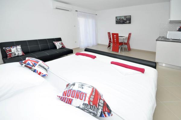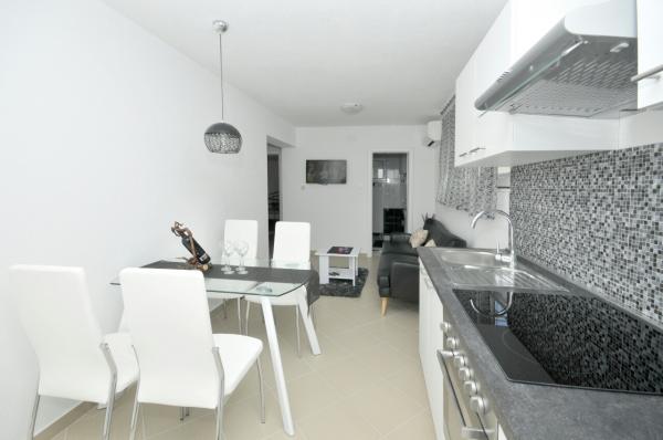 Ich verbrachte zwei Wochen mit einer charmanten Familie. Die Wohnung, die wir gelebt sieht genauso aus wie auf den Bildern. Die beiden anderen Wohnungen auch, weil ich hatte die Gelegenheit, sie zu sehen. Alle Wohnungen sind neu renoviert und sind in der Art fertig, wirklich edel. Sie verfügen über alle Annehmlichkeiten, von Löffel und endet mit Töpfen und Handtücher. Die Küche verfügt über einen großen Kühlschrank mit Gefrierfach und Backofen mit Herd und Backofen. Es gibt auch WiFi und Klimaanlage. Die Wohnung hat einen langen Balkon, der auch viel Schatten am Nachmittag hat. Der Besitzer Ana ist eine liebenswerte Frau, die verdoppelt und verdreifacht, den Mann, während weg zu bleiben. Unterteilt in wertvolle Informationen darüber, was zu sehen und behandelt nach Hause Rakija. Ich empfehle den Nationalpark Krka, Kirche auf dem Felsen am Ende der Straße in Slatine zu besuchen. Sie können auch nach Split gehen. Wie für den Strand ist es wert an den Strand oder in der Lower Labadusa Okrugu gehen, die nicht überfüllt sind und haben eine herrliche Aussicht. Wenn jemand für Unterhaltung am Strand suchen, empfehle ich den Strand in Copacabana Okrugu Ober. Trogir Sie können an den Beinen sicher gehen, etwa 15-20 Minuten.