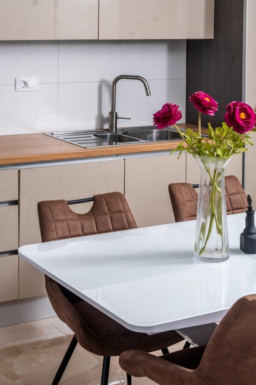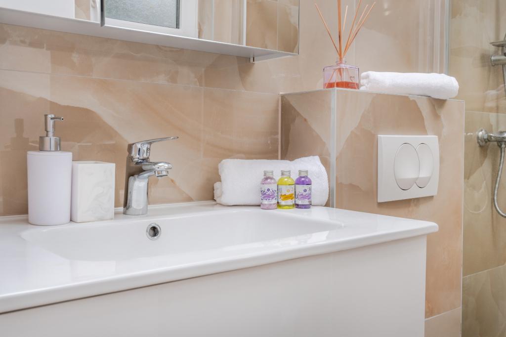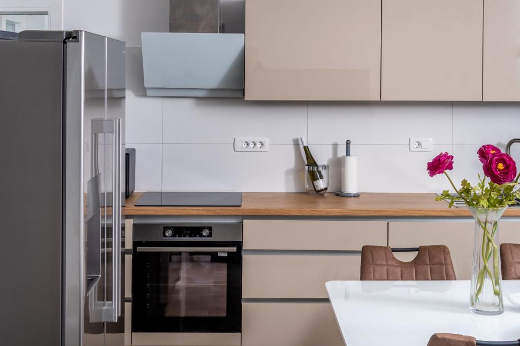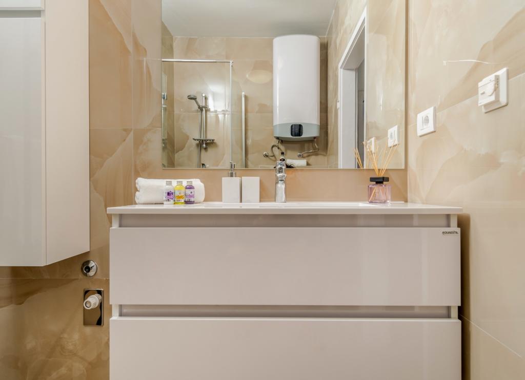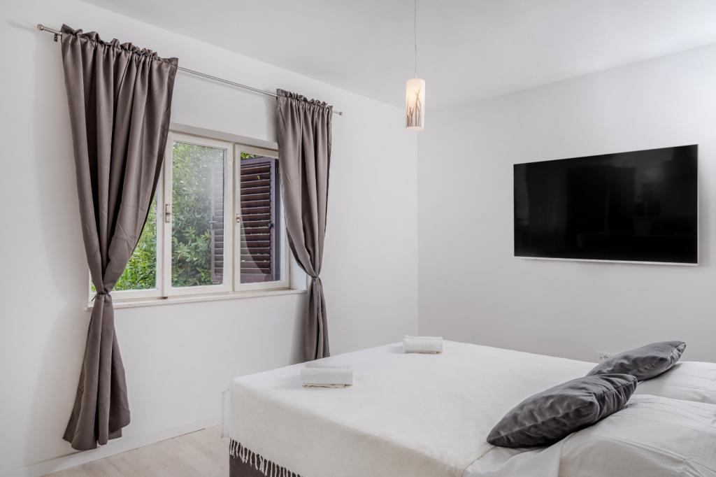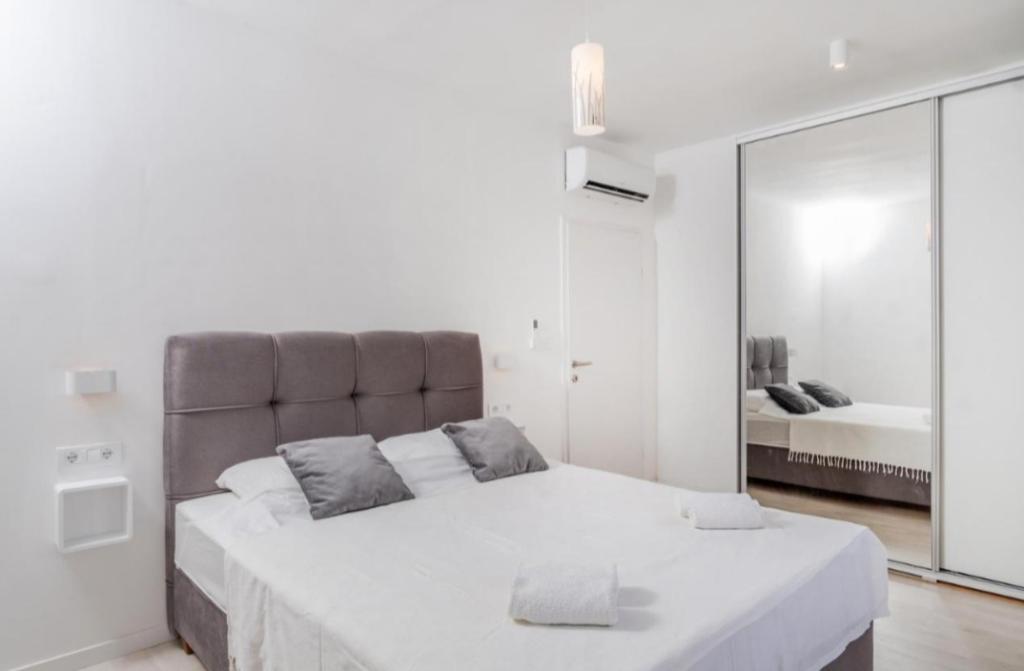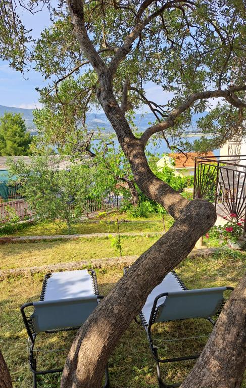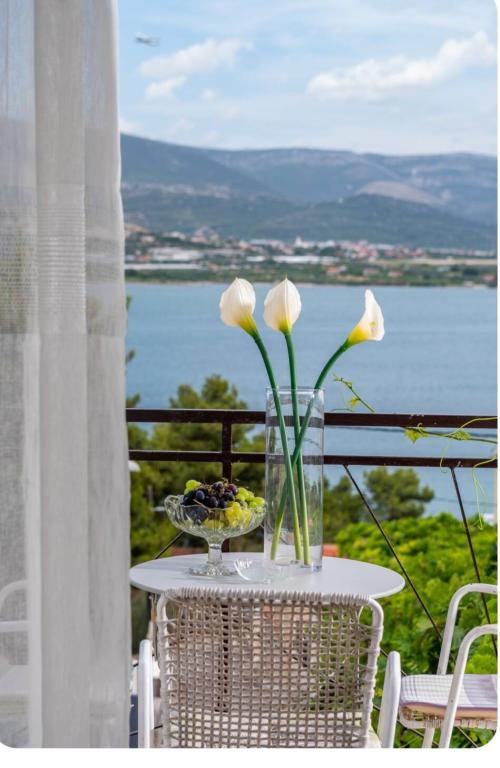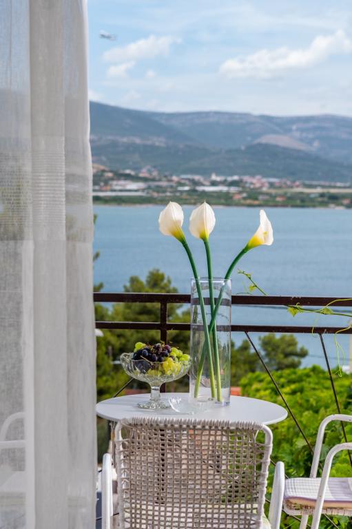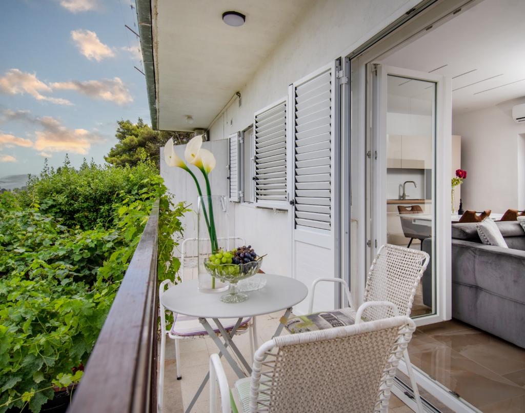 Sehr luxuriöse Wohnung 1 Minute vom Meer entfernt. Das gesamte Apartment ist mit der neuesten High-Sense-Technologie ausgestattet, wobei jedes Zimmer über eine eigene Klimaanlage, einen großen Videowandfernseher und ein separates WC verfügt, sodass jeder Gast seine eigene Privatsphäre hat. Die Küche ist mit neuen High-Sense-Geräten wie Geschirrspüler, Mikrowelle, Kaffeemaschine und Kühlschrank mit Eismaschine ausgestattet. Die Wohnung verfügt über einen schönen Garten und eine Terrasse mit Blick auf das Meer und liegt 5 Autominuten vom Flughafen Split entfernt. Ein schöner Sandstrand liegt 10 m von der Wohnung entfernt. Es befindet sich in ausgezeichneter Lage, nur 2 Minuten vom Zentrum von Trogir und 20 Autominuten vom Zentrum von Split entfernt. Nicht weit von der Wohnung entfernt befindet sich ein Taxiboot, das die Gäste ins Zentrum von Split und auf dem Seeweg bringt.