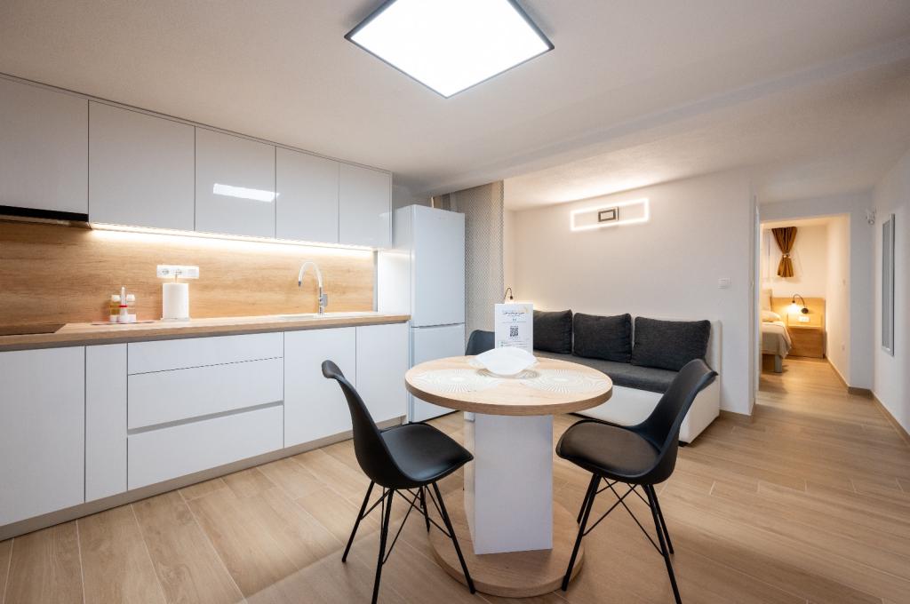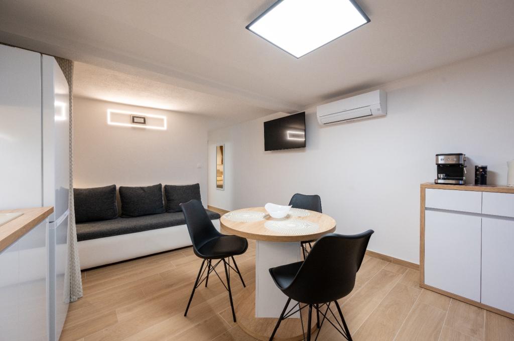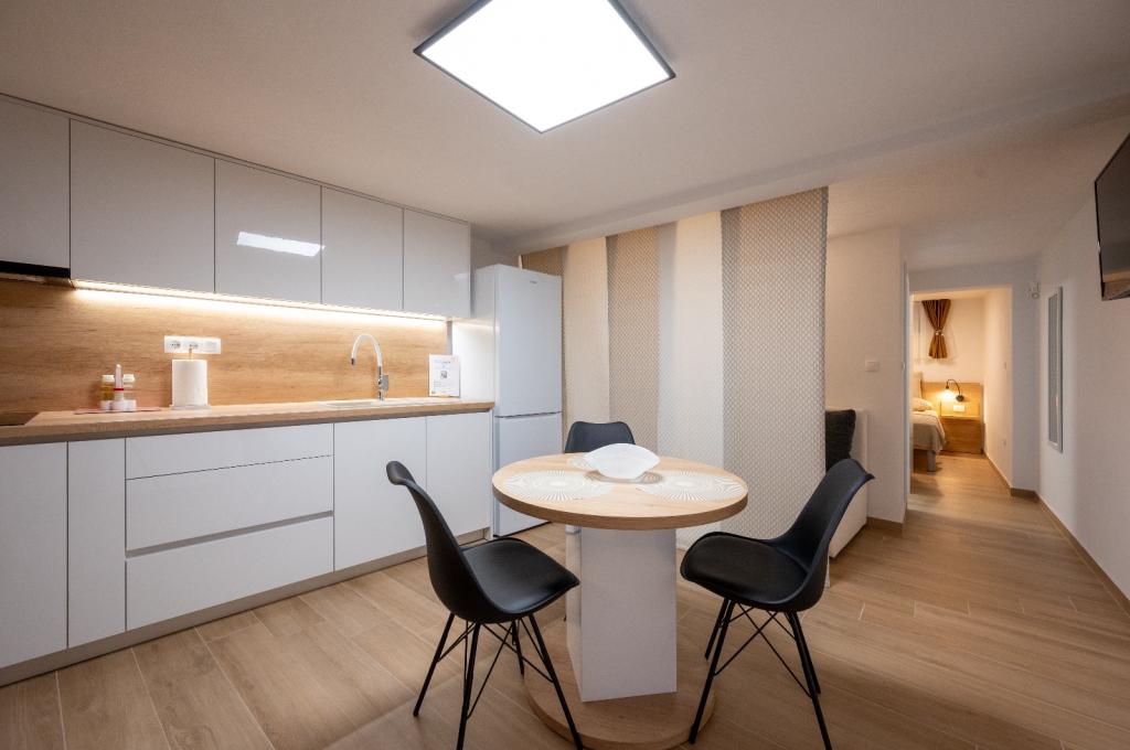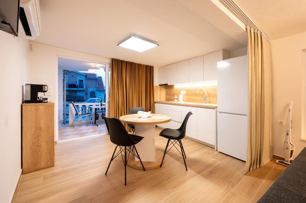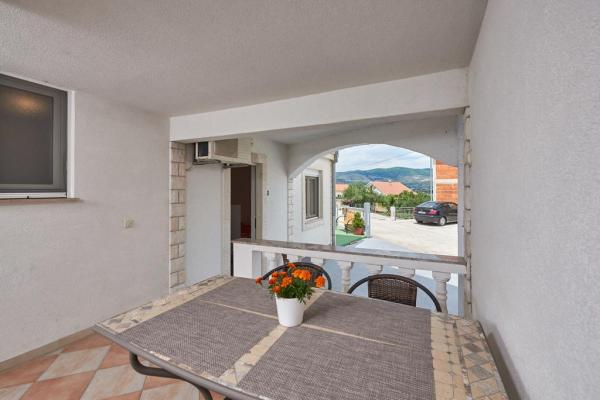 Sehr saubere und komplett ausgestattete Wohnung... Vom Bügeleisen bis zum Fön. Bügelbretter für 2 Fernseher. Klimaanlage, Geschirrsets. Kühlschrank. Mikrowelle, Geschirrspüler. 2 verschiedene Kaffeemaschinen. Kaltes Wasser zur Begrüßung im Kühlschrank, Obst auf dem Tisch. Rakija mit dem Gastgeber. Perfekter Urlaub. Die Besitzer waren sehr nett und hilfsbereit. Der Urlaub hier war perfekt. In der Nähe des Meeres, zum Geschäft, zur Altstadt von Trogir sind es genau 3 km. Schöner Ort. Ich empfehle