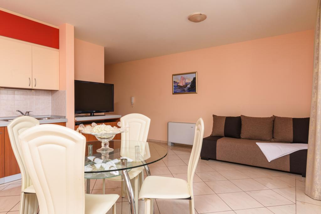 Kurtaxe ist im Preis inbegriffen.Ferienwohnung A2 Typ 2 (51m2) - Großes Wohnzimmer mit Küche und ein Bett für zwei Personen, ein Doppelzimmer, Bad und Balkon (12m2). Appartement Typ / Studio A2 1 (30m2) - Wohnraum mit Küche, Doppelbett, Sofa razvalčenje Einzelbett, Bad und Balkon (6,5m2). Appartement Typ / Studio Ferienwohnung A2 (26m2) - Wohnraum mit Küche, Doppelbett, Bad und Balkon (6,5m2). Alle unsere Gäste können einen Grill mit einem Holzofen im Garten und genießen das Mittag- und Abendessen auf den späteren Stunden in absoluter Privatsphäre. Für alle Gäste ist ein privater prakig vor dem Haus.