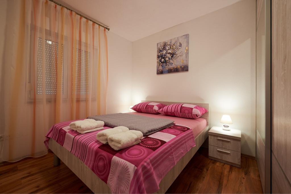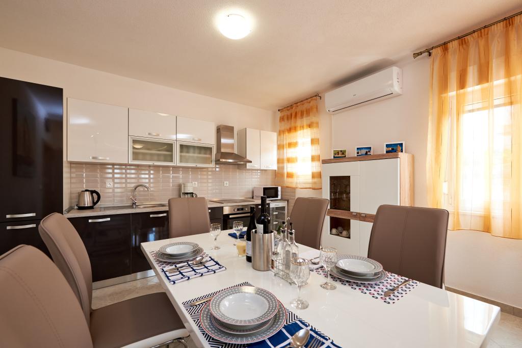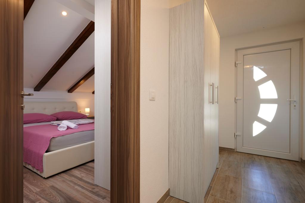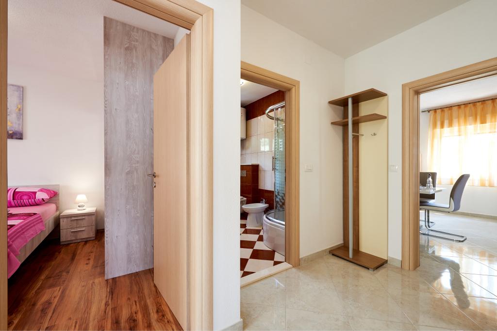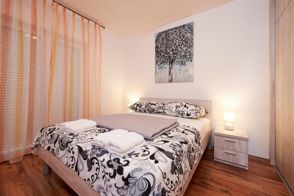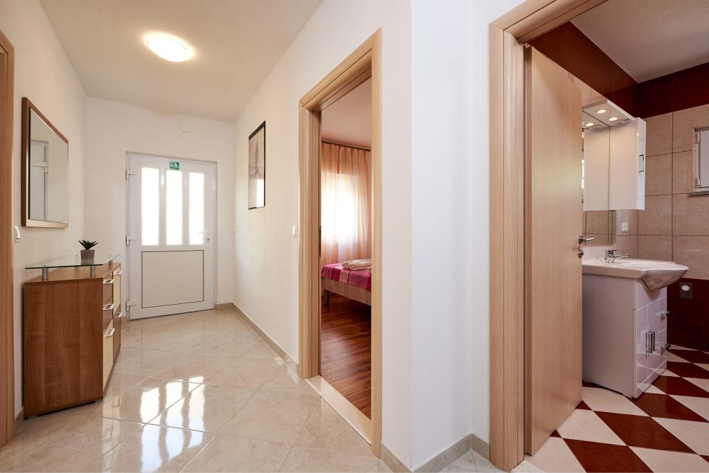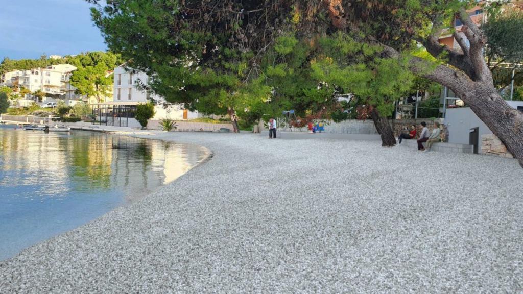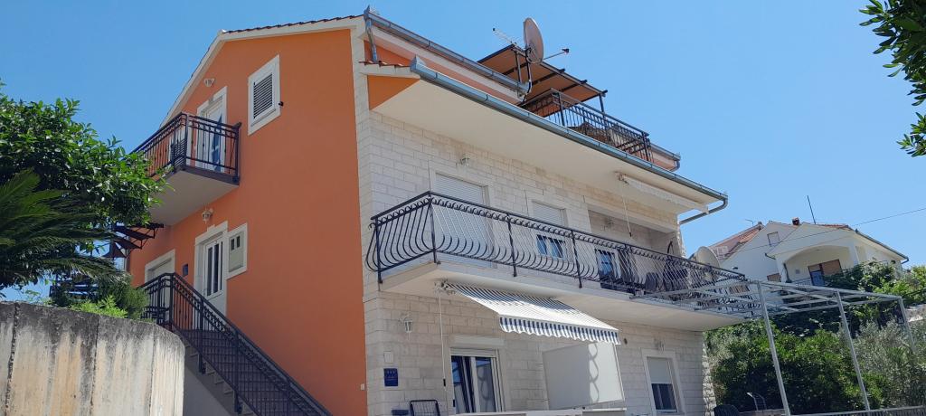 Die Apartments Magdalena sind komfortabel und bestens ausgestattet. Sie befinden sich auf der Insel Čiovo, nur 1,3 km vom Zentrum der Altstadt von Trogir entfernt. Von hier aus genießen Sie einen wunderschönen Blick auf das Meer und die Umgebung. Die Apartments liegen in einer ruhigen Gegend, nur 250 m vom nächsten Strand entfernt. Restaurants, ein Supermarkt, ein Geldautomat, eine Bushaltestelle und eine Bootsanlegestelle ins Zentrum befinden sich in einem Umkreis von 400 m. Die Zufahrt erfolgt über eine Straße, die einen Hügel hinaufführt. Zur Ausstattung gehören Klimaanlage, kostenlose Parkplätze, WLAN, eine voll ausgestattete Küche, Kabelfernsehen, eine Waschmaschine, ein Geschirrspüler usw. Die Apartments sind 75 bzw. 85 Quadratmeter groß und verfügen zusätzlich über Terrassen mit bequemen Sesseln und eiförmigen Hängeschaukeln. Apartment 1 befindet sich im ersten Stock und hat drei Schlafzimmer, Apartment 2 im zweiten Stock und bietet zwei Schlafzimmer und zwei Badezimmer. Alle Apartments sind geschmackvoll eingerichtet, sauber und ordentlich. Der Strand ist 5 Gehminuten und das Zentrum von Trogir 15 Gehminuten entfernt. Der nahegelegene Strand ist der Abfahrtspunkt für die Bootslinie, die ins Stadtzentrum fährt; die Fahrt dauert 10 Minuten.