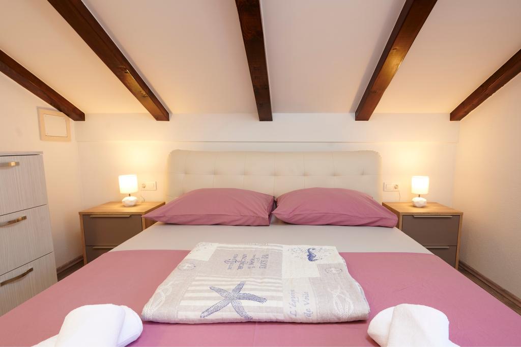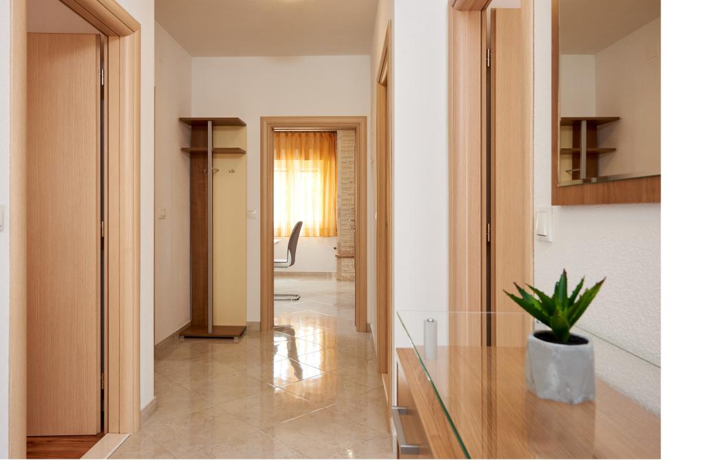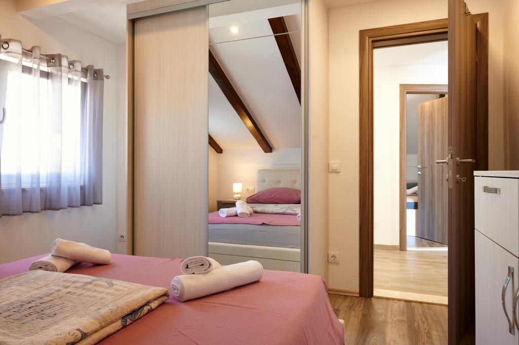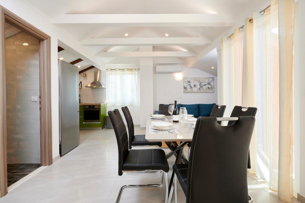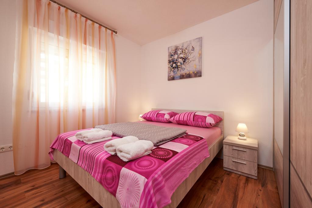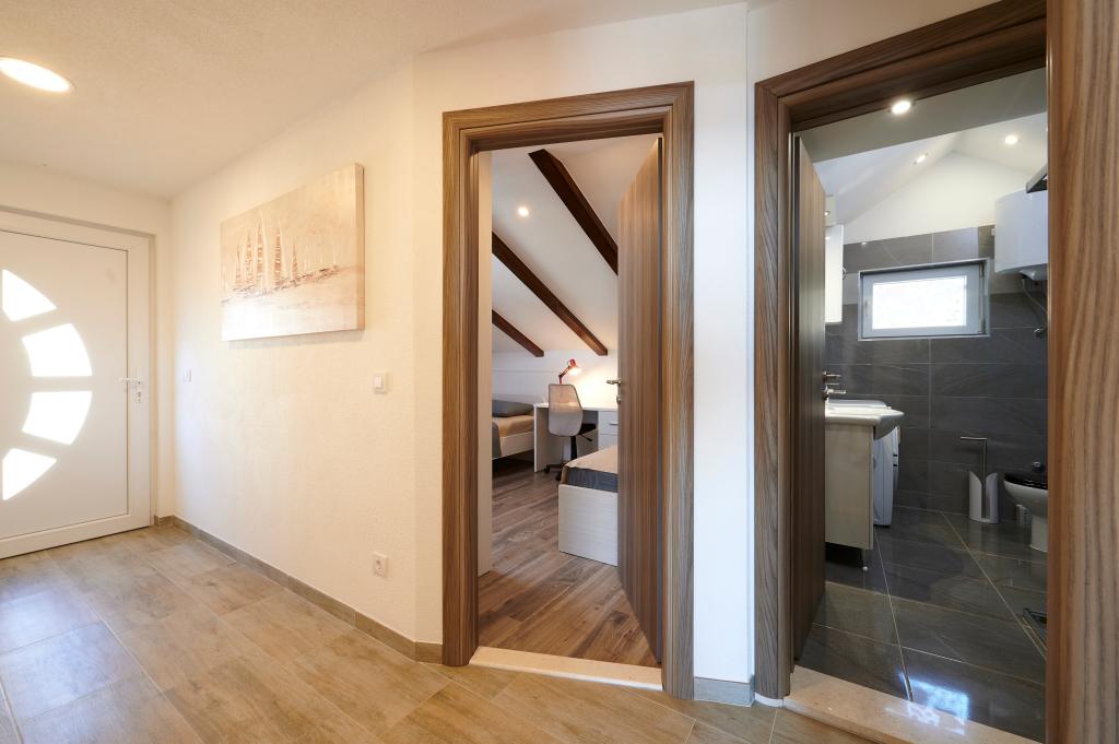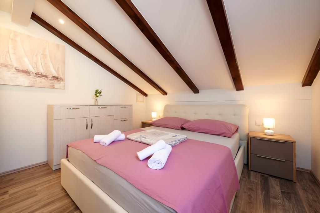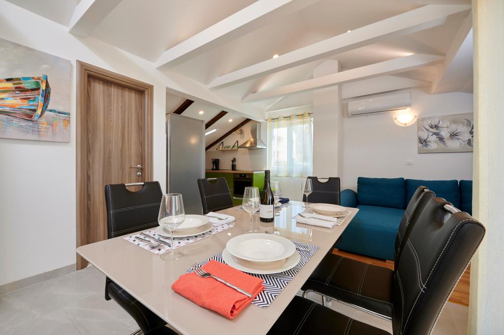 Die Apartments Magdalena sind komfortabel und bestens ausgestattet. Sie befinden sich auf der Insel Čiovo, nur 1,3 km vom Zentrum der Altstadt von Trogir entfernt. Von hier aus genießen Sie einen wunderschönen Blick auf das Meer und die Umgebung. Die Apartments liegen in einer ruhigen Gegend, nur 250 m vom nächsten Strand entfernt. Restaurants, ein Supermarkt, ein Geldautomat, eine Bushaltestelle und eine Bootsanlegestelle ins Zentrum befinden sich in einem Umkreis von 400 m. Die Zufahrt erfolgt über eine Straße, die einen Hügel hinaufführt. Zur Ausstattung gehören Klimaanlage, kostenlose Parkplätze, WLAN, eine voll ausgestattete Küche, Kabelfernsehen, eine Waschmaschine, ein Geschirrspüler usw. Die Apartments sind 75 bzw. 85 Quadratmeter groß und verfügen zusätzlich über Terrassen mit bequemen Sesseln und eiförmigen Hängeschaukeln. Apartment 1 befindet sich im ersten Stock und hat drei Schlafzimmer, Apartment 2 im zweiten Stock und bietet zwei Schlafzimmer und zwei Badezimmer. Alle Apartments sind geschmackvoll eingerichtet, sauber und ordentlich. Der Strand ist 5 Gehminuten und das Zentrum von Trogir 15 Gehminuten entfernt. Der nahegelegene Strand ist der Abfahrtspunkt für die Bootslinie, die ins Stadtzentrum fährt; die Fahrt dauert 10 Minuten.