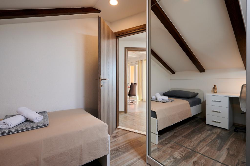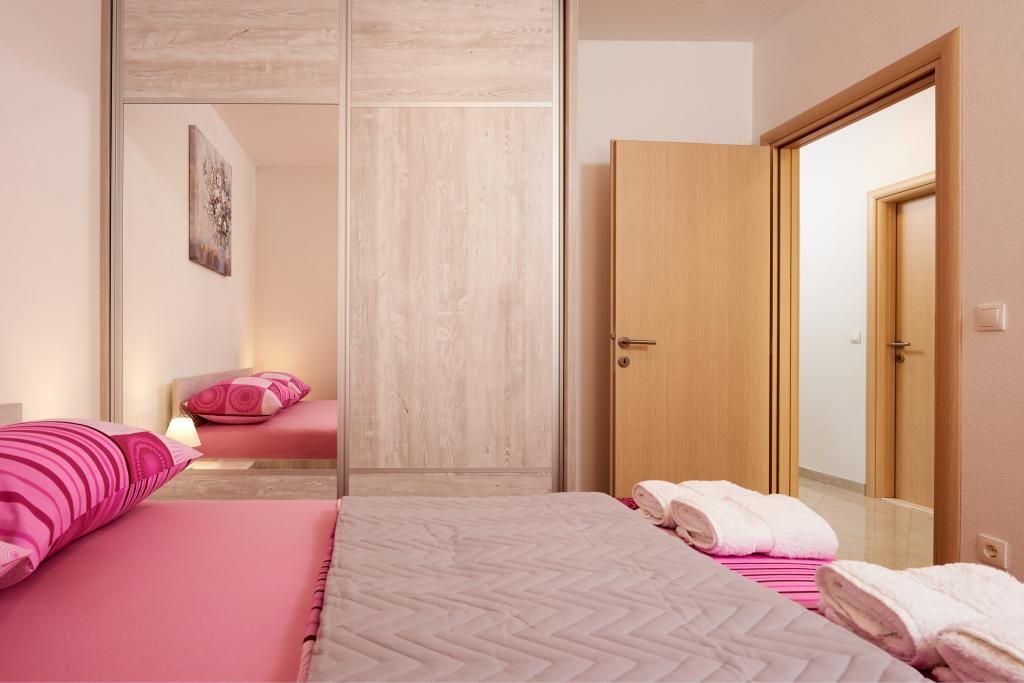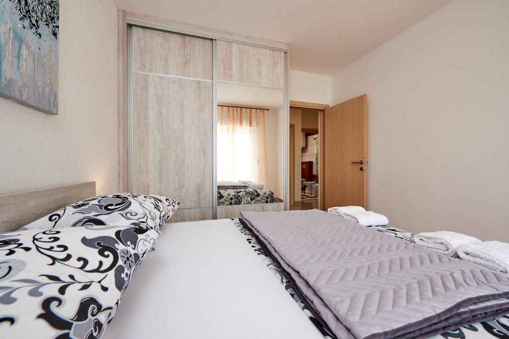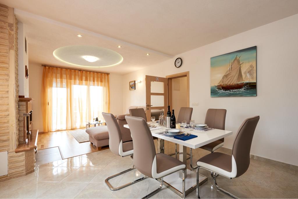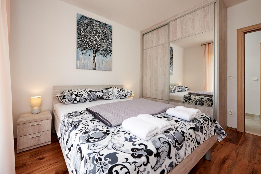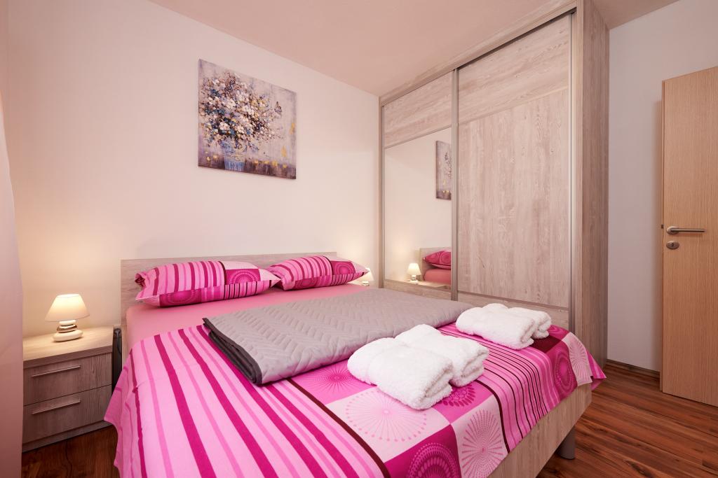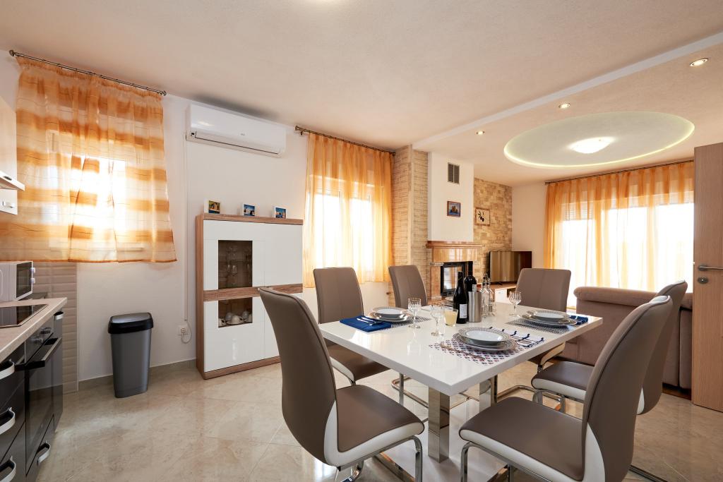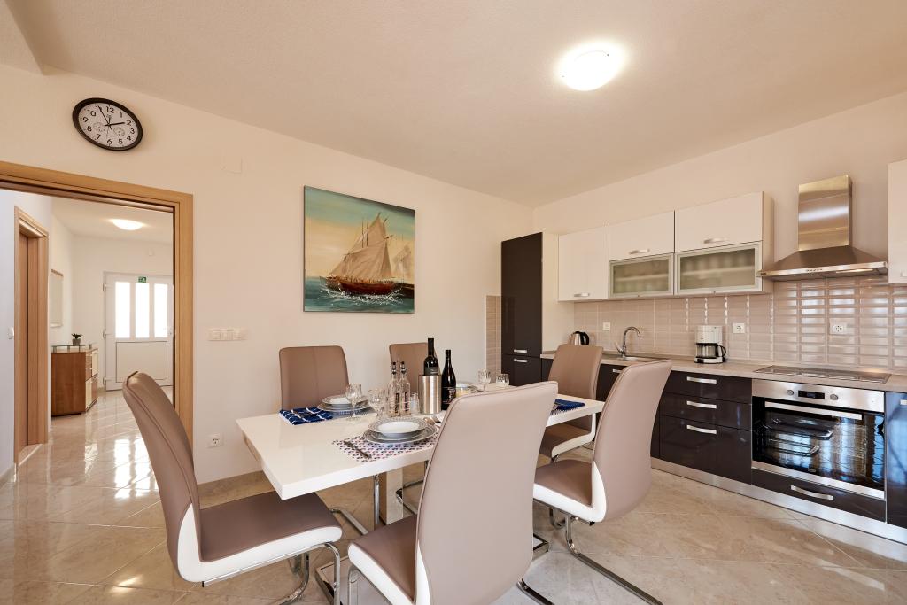 Die Apartments Magdalena sind komfortabel und bestens ausgestattet. Sie befinden sich auf der Insel Čiovo, nur 1,3 km vom Zentrum der Altstadt von Trogir entfernt. Von hier aus genießen Sie einen wunderschönen Blick auf das Meer und die Umgebung. Die Apartments liegen in einer ruhigen Gegend, nur 250 m vom nächsten Strand entfernt. Restaurants, ein Supermarkt, ein Geldautomat, eine Bushaltestelle und eine Bootsanlegestelle ins Zentrum befinden sich in einem Umkreis von 400 m. Die Zufahrt erfolgt über eine Straße, die einen Hügel hinaufführt. Zur Ausstattung gehören Klimaanlage, kostenlose Parkplätze, WLAN, eine voll ausgestattete Küche, Kabelfernsehen, eine Waschmaschine, ein Geschirrspüler usw. Die Apartments sind 75 bzw. 85 Quadratmeter groß und verfügen zusätzlich über Terrassen mit bequemen Sesseln und eiförmigen Hängeschaukeln. Apartment 1 befindet sich im ersten Stock und hat drei Schlafzimmer, Apartment 2 im zweiten Stock und bietet zwei Schlafzimmer und zwei Badezimmer. Alle Apartments sind geschmackvoll eingerichtet, sauber und ordentlich. Der Strand ist 5 Gehminuten und das Zentrum von Trogir 15 Gehminuten entfernt. Der nahegelegene Strand ist der Abfahrtspunkt für die Bootslinie, die ins Stadtzentrum fährt; die Fahrt dauert 10 Minuten.