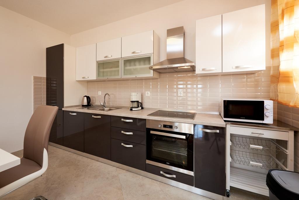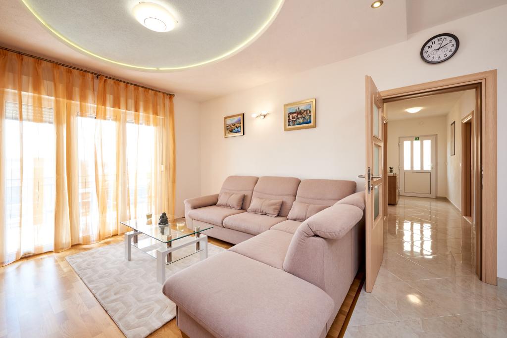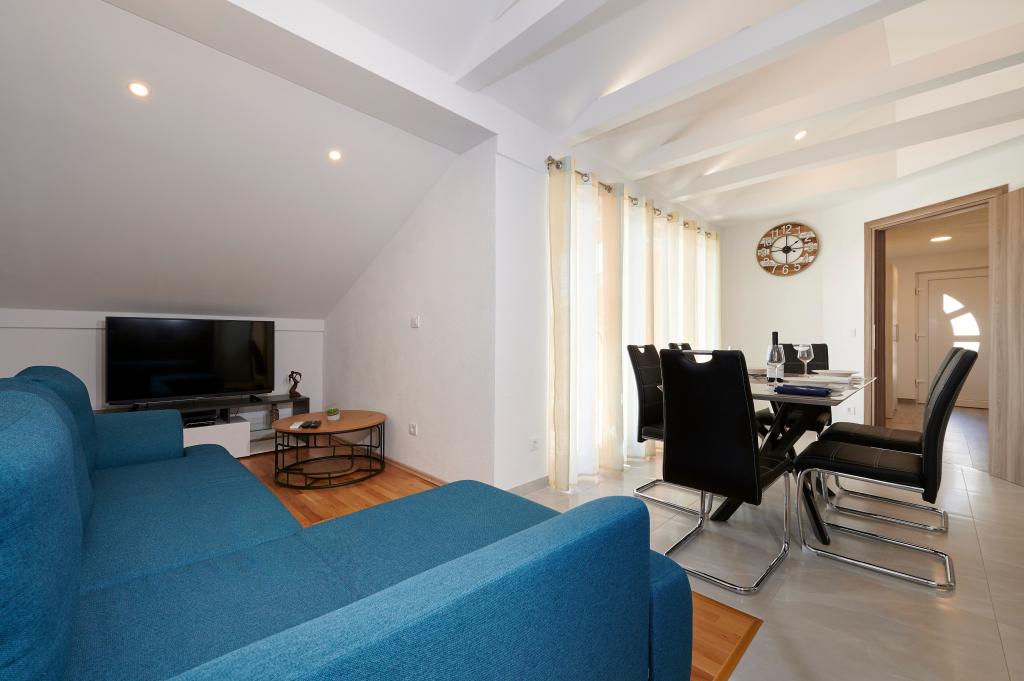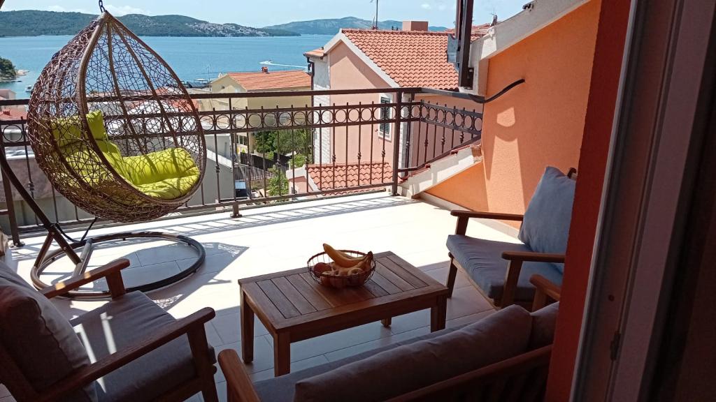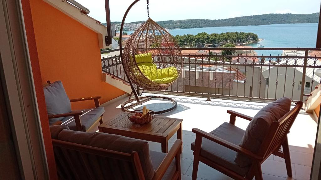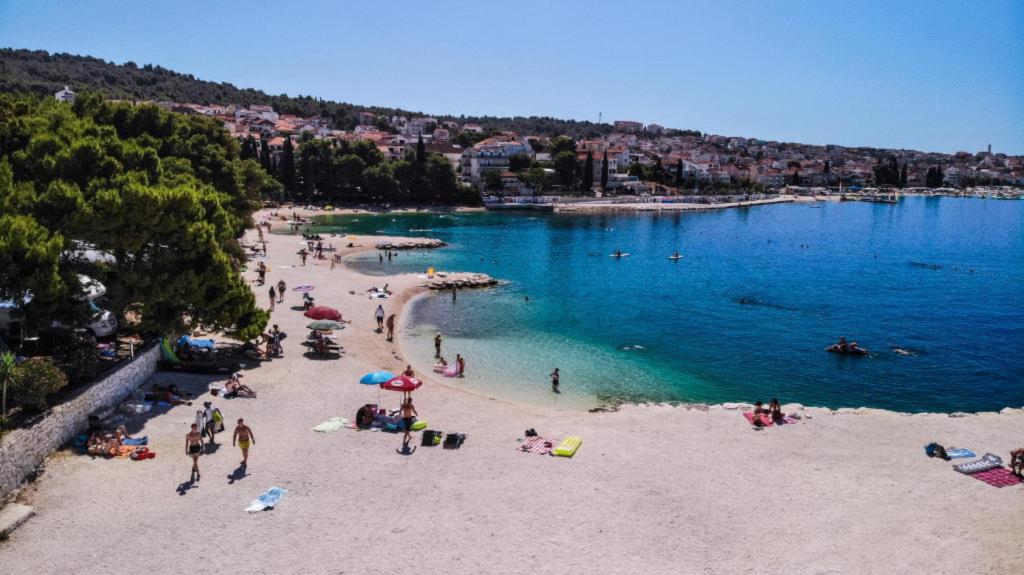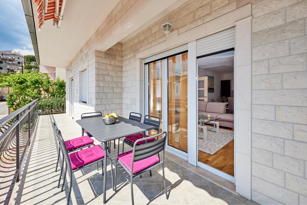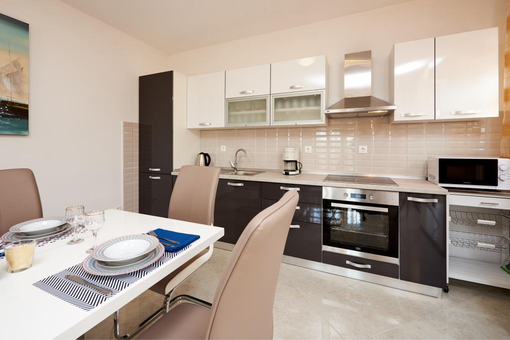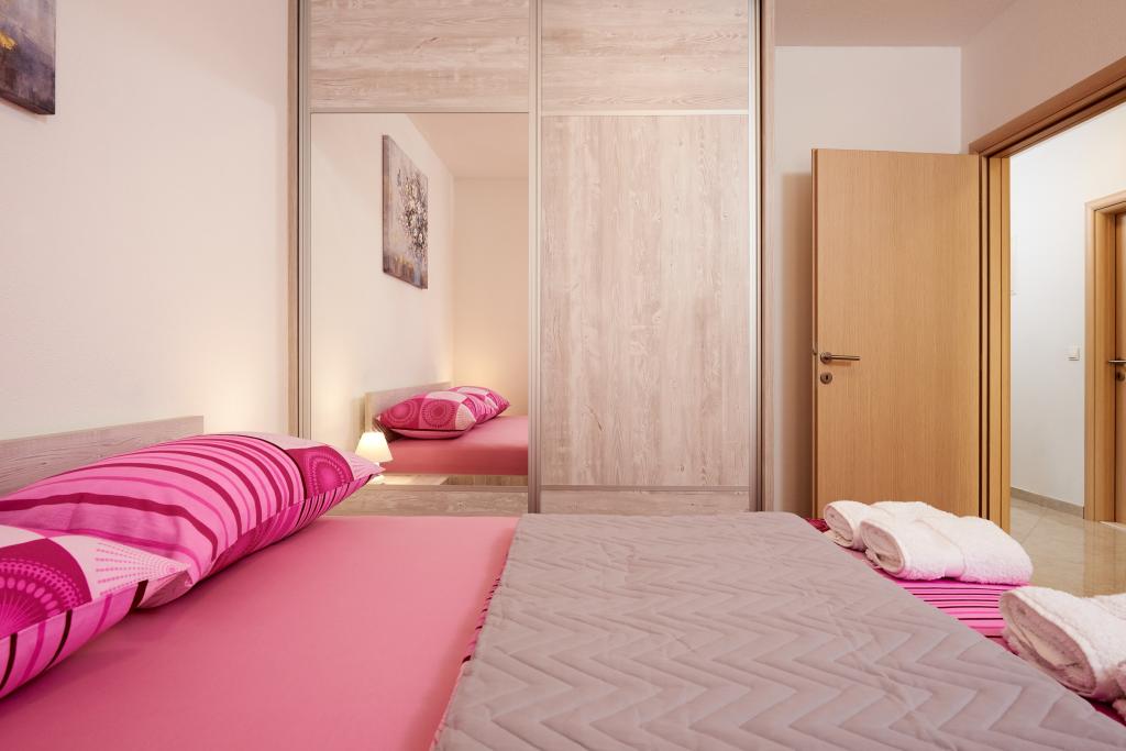 Die Apartments Magdalena sind komfortabel und bestens ausgestattet. Sie befinden sich auf der Insel Čiovo, nur 1,3 km vom Zentrum der Altstadt von Trogir entfernt. Von hier aus genießen Sie einen wunderschönen Blick auf das Meer und die Umgebung. Die Apartments liegen in einer ruhigen Gegend, nur 250 m vom nächsten Strand entfernt. Restaurants, ein Supermarkt, ein Geldautomat, eine Bushaltestelle und eine Bootsanlegestelle ins Zentrum befinden sich in einem Umkreis von 400 m. Die Zufahrt erfolgt über eine Straße, die einen Hügel hinaufführt. Zur Ausstattung gehören Klimaanlage, kostenlose Parkplätze, WLAN, eine voll ausgestattete Küche, Kabelfernsehen, eine Waschmaschine, ein Geschirrspüler usw. Die Apartments sind 75 bzw. 85 Quadratmeter groß und verfügen zusätzlich über Terrassen mit bequemen Sesseln und eiförmigen Hängeschaukeln. Apartment 1 befindet sich im ersten Stock und hat drei Schlafzimmer, Apartment 2 im zweiten Stock und bietet zwei Schlafzimmer und zwei Badezimmer. Alle Apartments sind geschmackvoll eingerichtet, sauber und ordentlich. Der Strand ist 5 Gehminuten und das Zentrum von Trogir 15 Gehminuten entfernt. Der nahegelegene Strand ist der Abfahrtspunkt für die Bootslinie, die ins Stadtzentrum fährt; die Fahrt dauert 10 Minuten.
