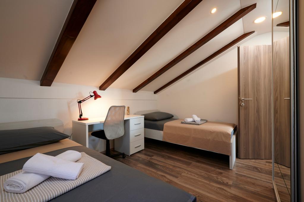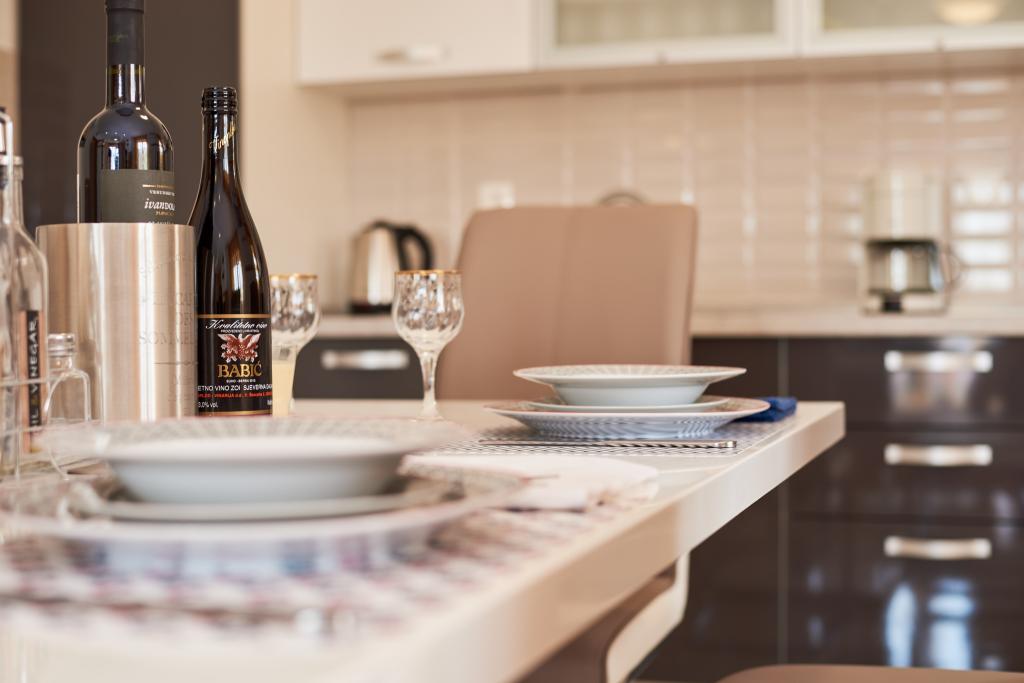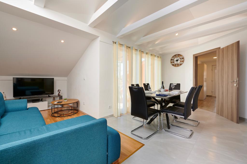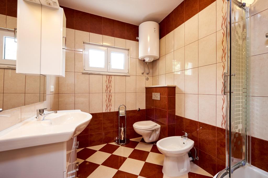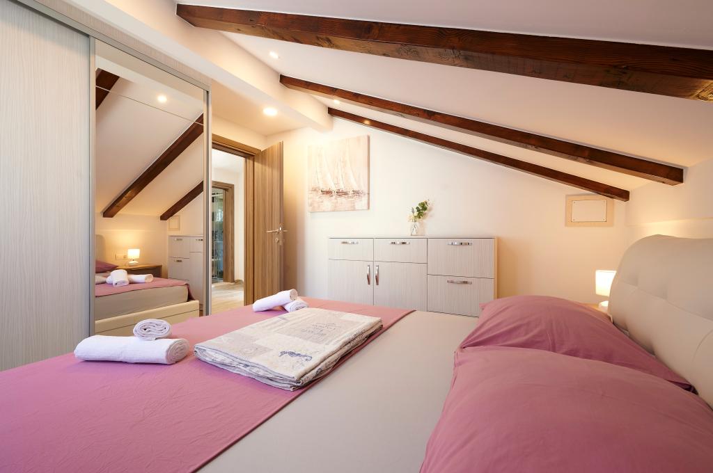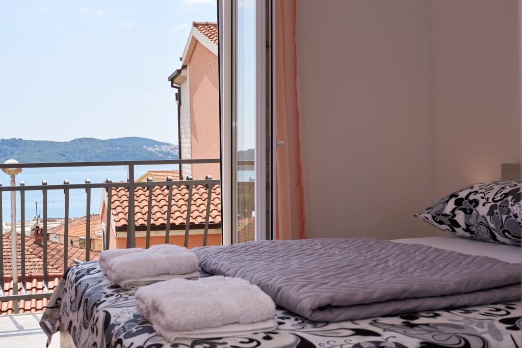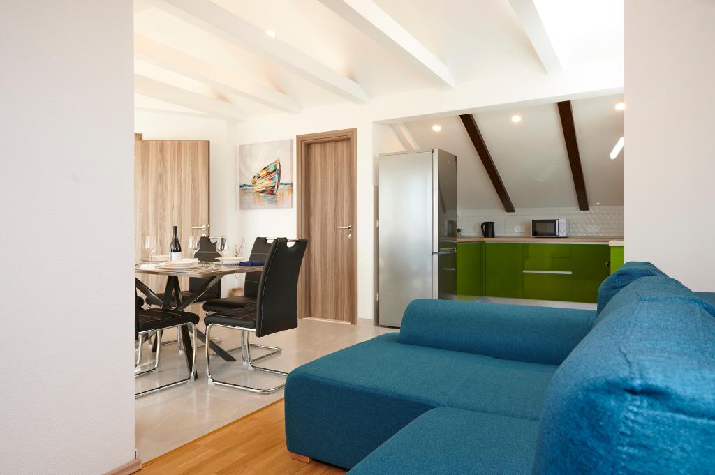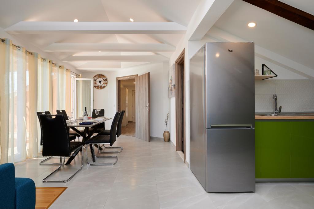 Die Apartments Magdalena sind komfortabel und bestens ausgestattet. Sie befinden sich auf der Insel Čiovo, nur 1,3 km vom Zentrum der Altstadt von Trogir entfernt. Von hier aus genießen Sie einen wunderschönen Blick auf das Meer und die Umgebung. Die Apartments liegen in einer ruhigen Gegend, nur 250 m vom nächsten Strand entfernt. Restaurants, ein Supermarkt, ein Geldautomat, eine Bushaltestelle und eine Bootsanlegestelle ins Zentrum befinden sich in einem Umkreis von 400 m. Die Zufahrt erfolgt über eine Straße, die einen Hügel hinaufführt. Zur Ausstattung gehören Klimaanlage, kostenlose Parkplätze, WLAN, eine voll ausgestattete Küche, Kabelfernsehen, eine Waschmaschine, ein Geschirrspüler usw. Die Apartments sind 75 bzw. 85 Quadratmeter groß und verfügen zusätzlich über Terrassen mit bequemen Sesseln und eiförmigen Hängeschaukeln. Apartment 1 befindet sich im ersten Stock und hat drei Schlafzimmer, Apartment 2 im zweiten Stock und bietet zwei Schlafzimmer und zwei Badezimmer. Alle Apartments sind geschmackvoll eingerichtet, sauber und ordentlich. Der Strand ist 5 Gehminuten und das Zentrum von Trogir 15 Gehminuten entfernt. Der nahegelegene Strand ist der Abfahrtspunkt für die Bootslinie, die ins Stadtzentrum fährt; die Fahrt dauert 10 Minuten.