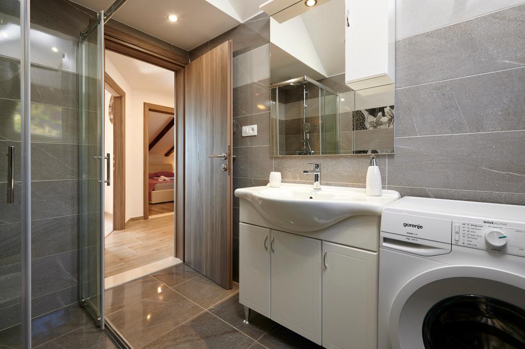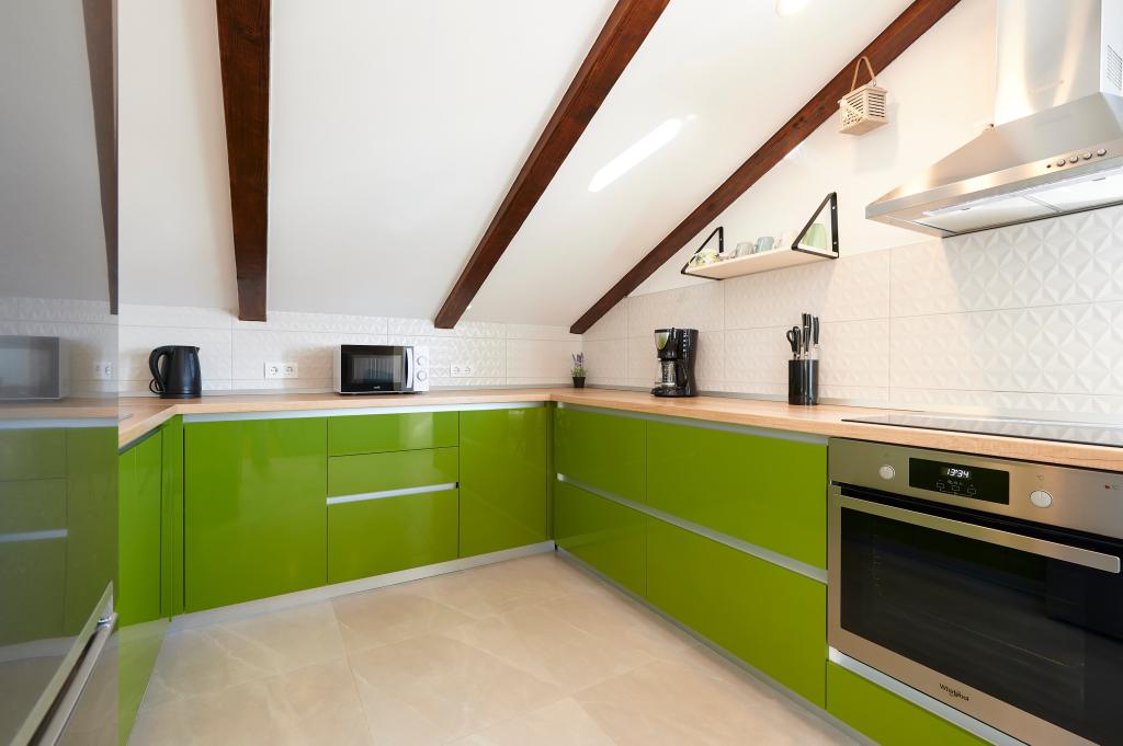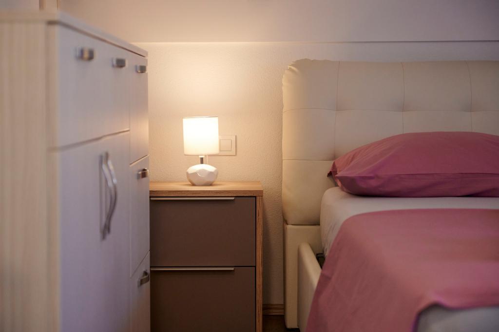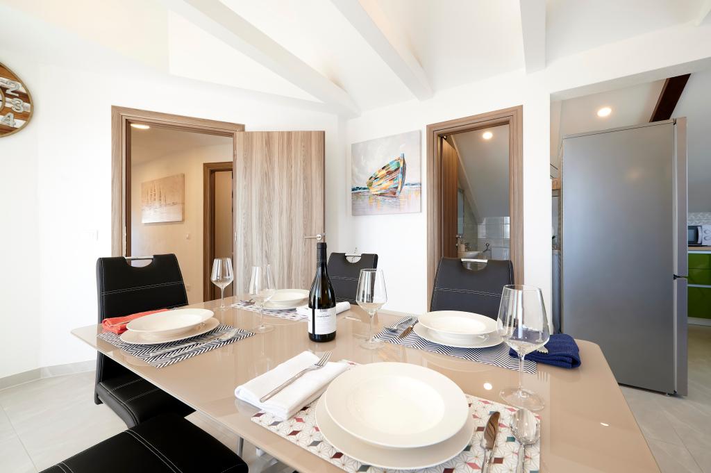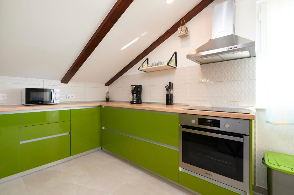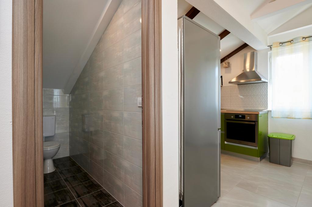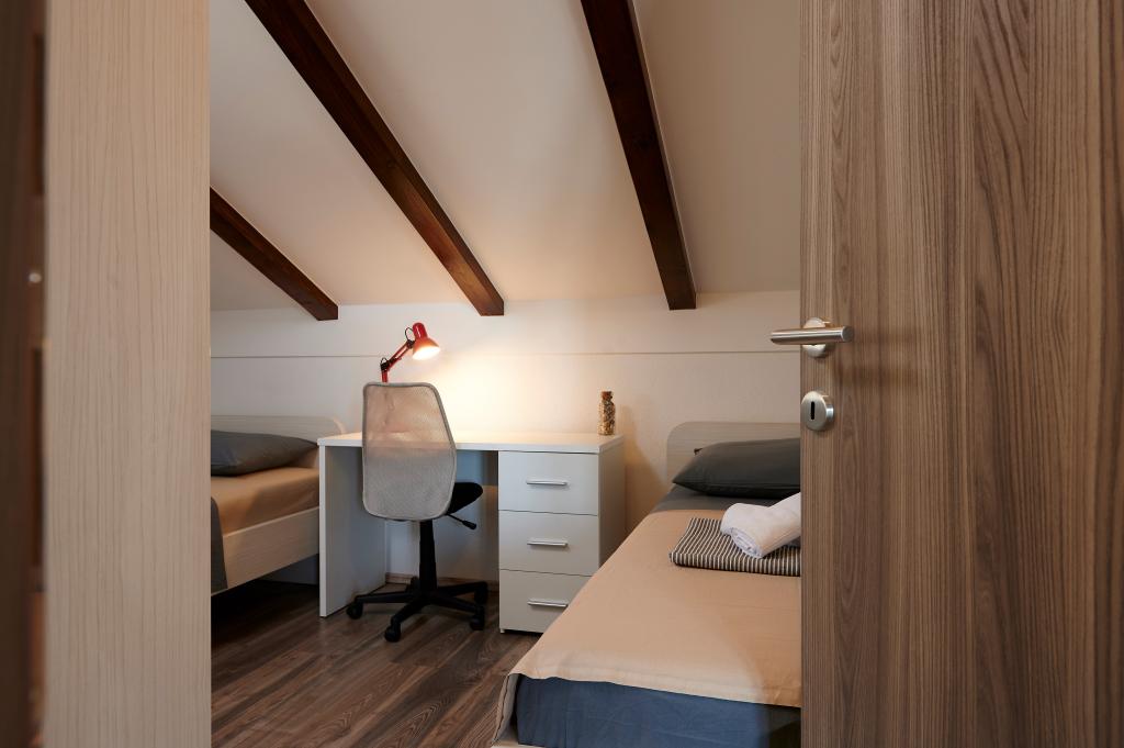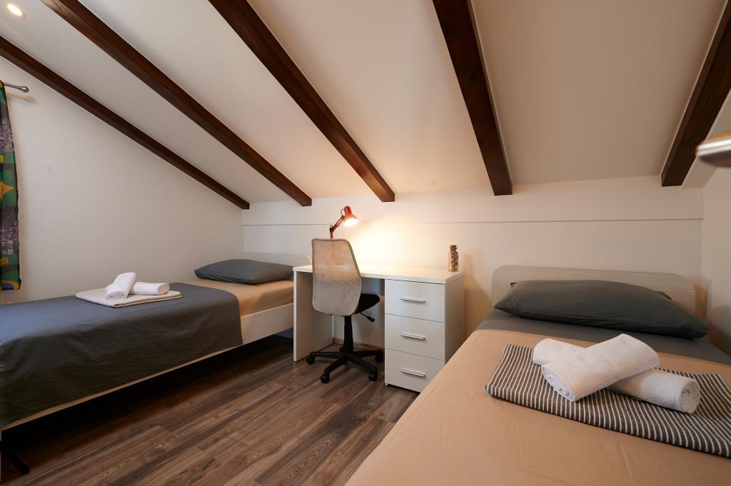 Die Apartments Magdalena sind komfortabel und bestens ausgestattet. Sie befinden sich auf der Insel Čiovo, nur 1,3 km vom Zentrum der Altstadt von Trogir entfernt. Von hier aus genießen Sie einen wunderschönen Blick auf das Meer und die Umgebung. Die Apartments liegen in einer ruhigen Gegend, nur 250 m vom nächsten Strand entfernt. Restaurants, ein Supermarkt, ein Geldautomat, eine Bushaltestelle und eine Bootsanlegestelle ins Zentrum befinden sich in einem Umkreis von 400 m. Die Zufahrt erfolgt über eine Straße, die einen Hügel hinaufführt. Zur Ausstattung gehören Klimaanlage, kostenlose Parkplätze, WLAN, eine voll ausgestattete Küche, Kabelfernsehen, eine Waschmaschine, ein Geschirrspüler usw. Die Apartments sind 75 bzw. 85 Quadratmeter groß und verfügen zusätzlich über Terrassen mit bequemen Sesseln und eiförmigen Hängeschaukeln. Apartment 1 befindet sich im ersten Stock und hat drei Schlafzimmer, Apartment 2 im zweiten Stock und bietet zwei Schlafzimmer und zwei Badezimmer. Alle Apartments sind geschmackvoll eingerichtet, sauber und ordentlich. Der Strand ist 5 Gehminuten und das Zentrum von Trogir 15 Gehminuten entfernt. Der nahegelegene Strand ist der Abfahrtspunkt für die Bootslinie, die ins Stadtzentrum fährt; die Fahrt dauert 10 Minuten.