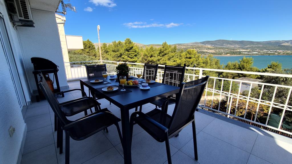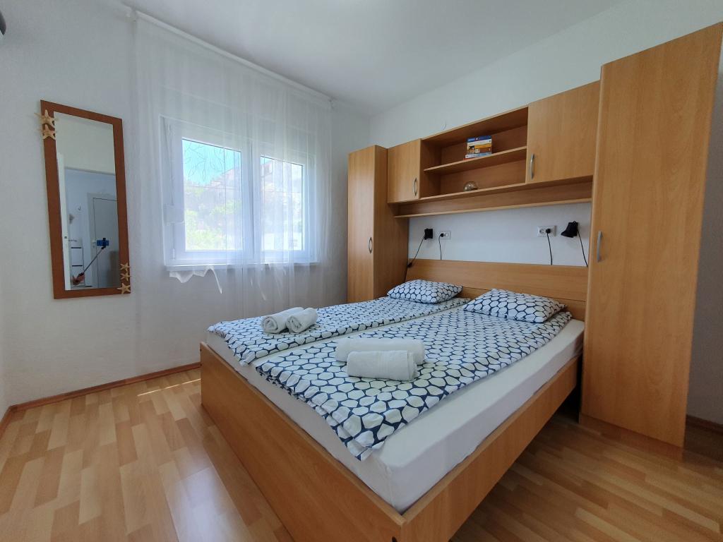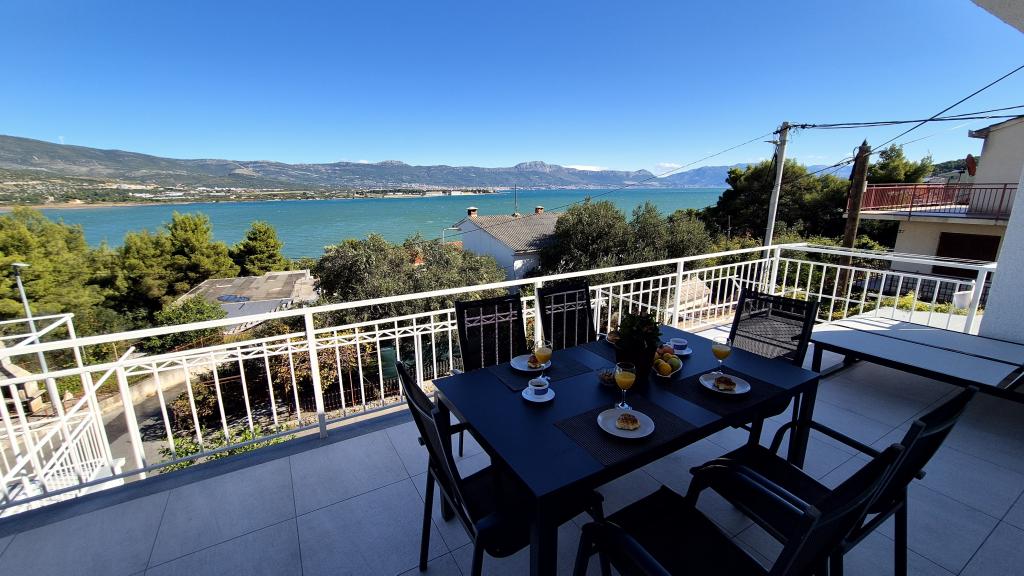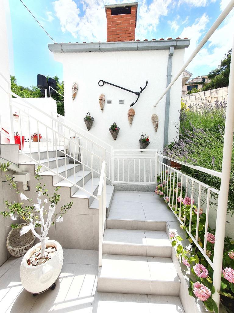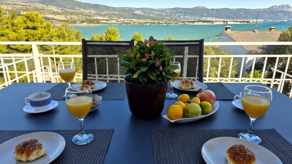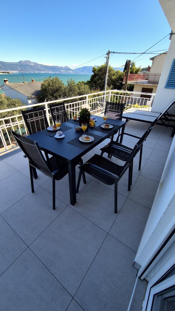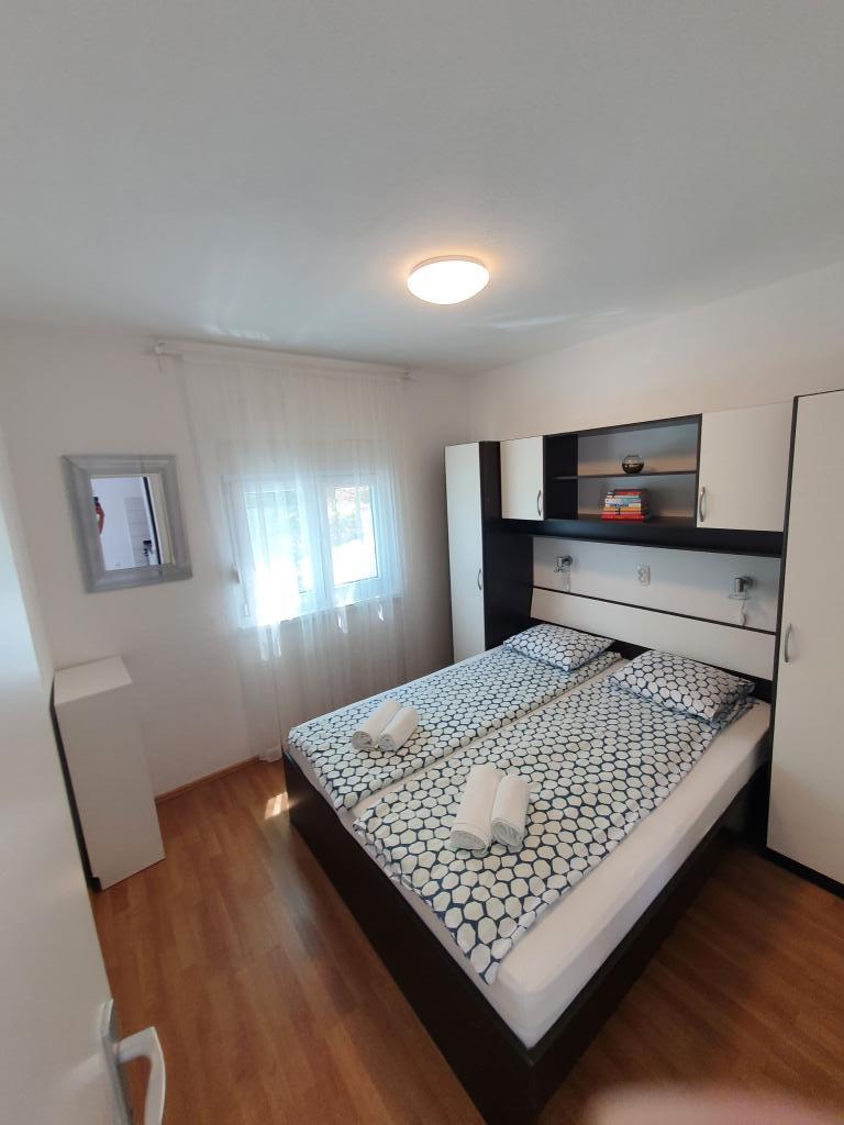 Die Apartments MIRTA befinden sich im nördlichen Teil der Insel Čiovo, 1,8 Kilometer östlich der Brücke, die die Altstadt von Trogir mit Čiovo verbindet. Sie liegen an einem ruhigen Ort, in der Nähe eines Pinienwaldes und des Meeres. Der Kiesstrand liegt am Fuße der Wohnung. Die Wohnung 1 befindet sich im ersten Stock eines Hauses mitten im Grünen. Es besteht aus zwei Schlafzimmern, Wohnzimmer mit Esszimmer, Küche und Bad. Es ist für 4-6 Personen ausgestattet. Die Schlafzimmer verfügen über ein Doppelbett und das Wohnzimmer über ein Zustellbett für zwei Personen. Die Wohnung 2 befindet sich im Erdgeschoss. Es besteht aus zwei Schlafzimmern (Doppelbetten), einem Wohnzimmer mit Esszimmer und Küche sowie einem Badezimmer. Die Apartments verfügen über einen eigenen Parkplatz, einen separaten Eingang und einen Gasgrill. Beide Wohnungen verfügen über eine Terrasse mit schönem Blick auf das Meer und Gartenmöbeln. Terrassen eignen sich perfekt für ganztägiges Vergnügen und geselliges Beisammensein an der frischen Luft.
