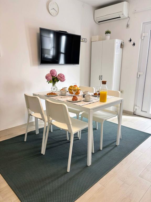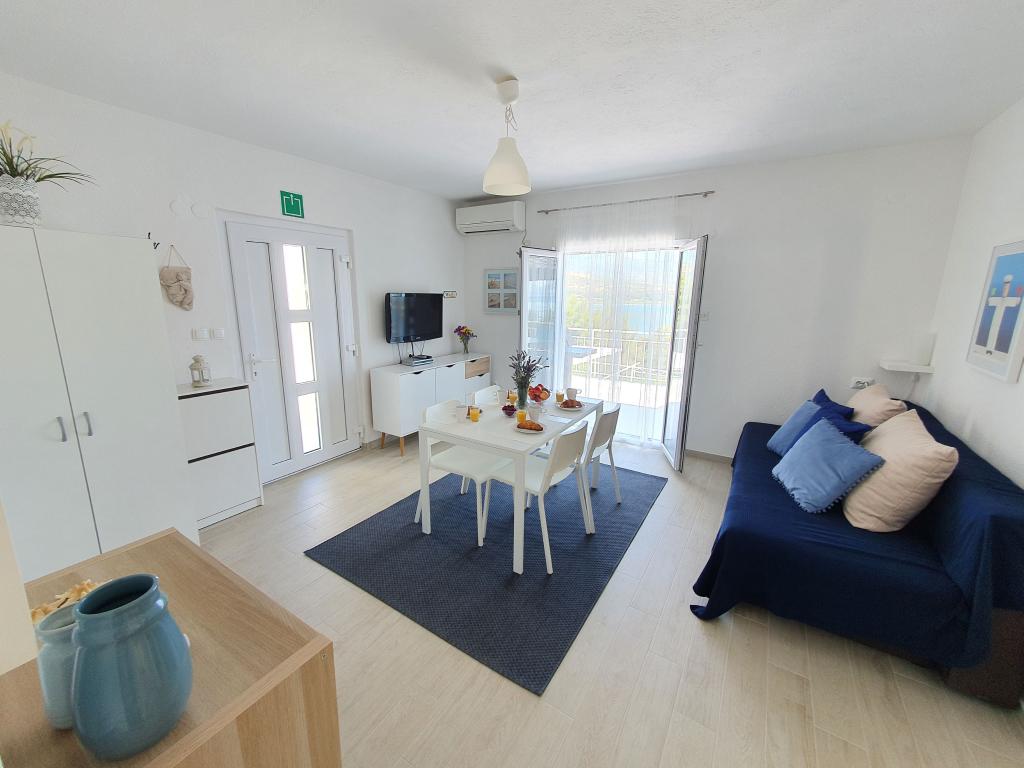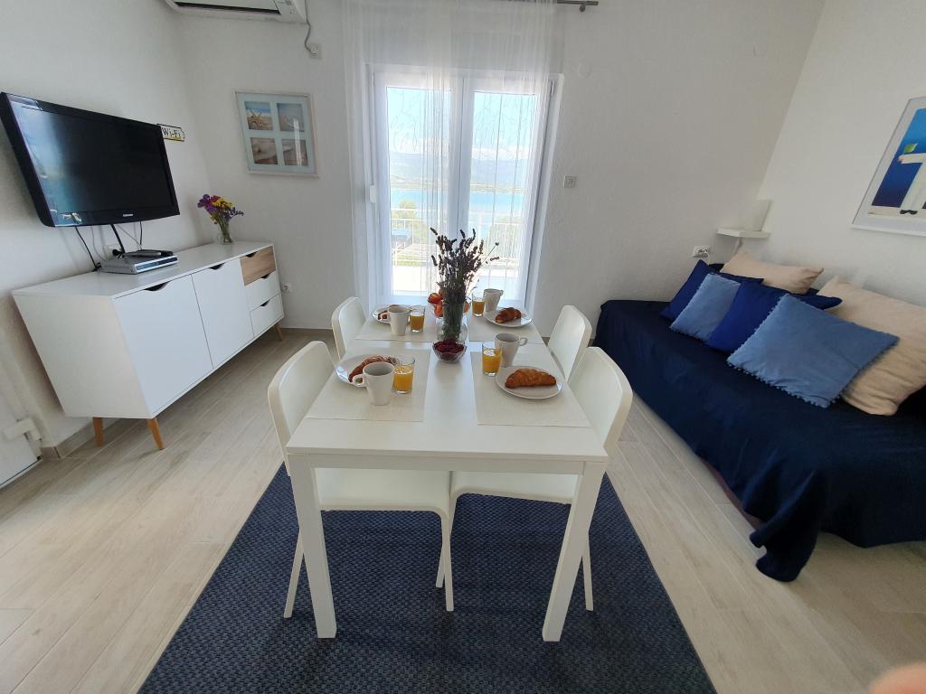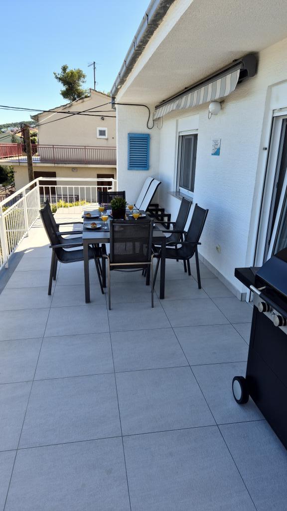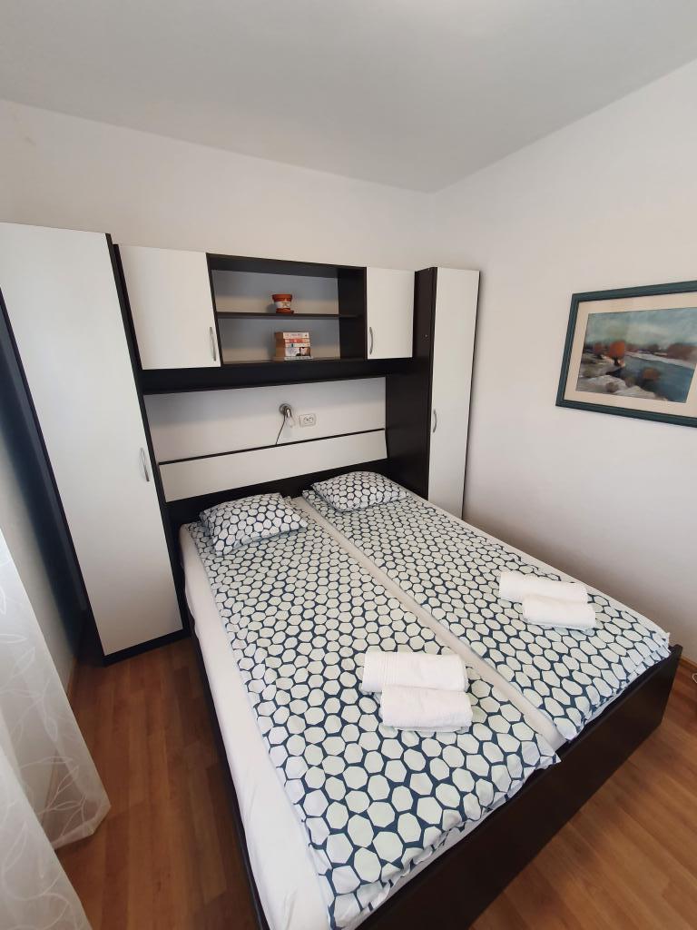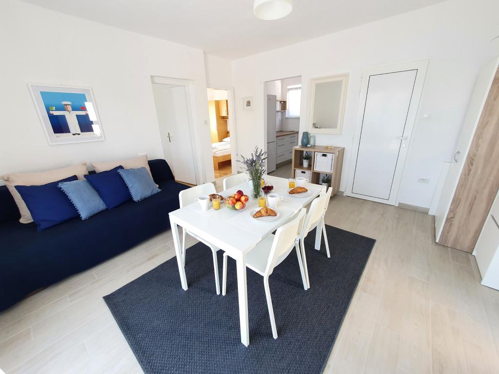 Die Apartments MIRTA befinden sich im nördlichen Teil der Insel Čiovo, 1,8 Kilometer östlich der Brücke, die die Altstadt von Trogir mit Čiovo verbindet. Sie liegen an einem ruhigen Ort, in der Nähe eines Pinienwaldes und des Meeres. Der Kiesstrand liegt am Fuße der Wohnung. Die Wohnung 1 befindet sich im ersten Stock eines Hauses mitten im Grünen. Es besteht aus zwei Schlafzimmern, Wohnzimmer mit Esszimmer, Küche und Bad. Es ist für 4-6 Personen ausgestattet. Die Schlafzimmer verfügen über ein Doppelbett und das Wohnzimmer über ein Zustellbett für zwei Personen. Die Wohnung 2 befindet sich im Erdgeschoss. Es besteht aus zwei Schlafzimmern (Doppelbetten), einem Wohnzimmer mit Esszimmer und Küche sowie einem Badezimmer. Die Apartments verfügen über einen eigenen Parkplatz, einen separaten Eingang und einen Gasgrill. Beide Wohnungen verfügen über eine Terrasse mit schönem Blick auf das Meer und Gartenmöbeln. Terrassen eignen sich perfekt für ganztägiges Vergnügen und geselliges Beisammensein an der frischen Luft.