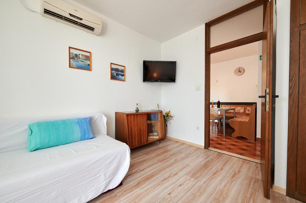 Die Wohnungen befinden sich auf der Insel Ciovo nur 300 Meter von der Altstadt entfernt und 50 Meter vom Strand entfernt. Die Wohnungen sind komplett eingerichtet und klimatisiert, mit eigenem Eingang, eigenem Balkon mit Meerblick und Parkplatz. Die Wohnung im Erdgeschoss A2 +1 (mit einem Zimmer), die eine Kapazität von bis zu 3 Personen, und auf der ersten Etage eines Mehrfamilienhauses A4 (zwei Zimmer), die eine Kapazität von bis zu 4 Personen verfügt hat. Es besteht die Möglichkeit der Anmietung zwei Wohnungen für maximal 7 Personen. Klimaanlage und Kurtaxe sind im Preis inbegriffen.