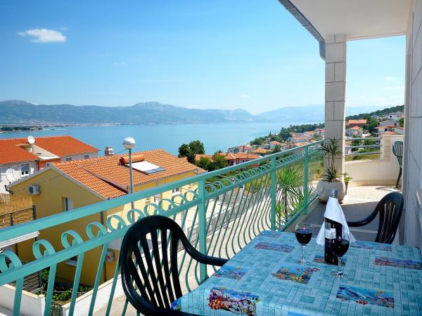Loben! Die Organisation und Reservierung der Unterkunft ging schnell. Besitzer freundlich, wir wurden nach der Fahrt im Kühlschrank mit einem Erfrischungsgetränk begrüßt, das nach dem Stau willkommen war. Die Wohnung ist sehr sauber, ordentlich und schön eingerichtet. Die Aussicht vom Balkon hat uns begeistert. Ruhige und friedliche Umgebung, Parkplätze vorhanden. Wir machten einen leichten Spaziergang, um Trogir zu besuchen. Die Preise auf der Insel sind wirklich in Ordnung, zB 2 große Kaffees haben wir 12 kn bezahlt. Die Strände sind nah. Und ja, am Ende haben wir ein kleines Zeichen der Aufmerksamkeit bekommen, was wunderbar ist. Wir waren wirklich begeistert. Ein echtes Beispiel dafür, wie Tourismus aussehen sollte.