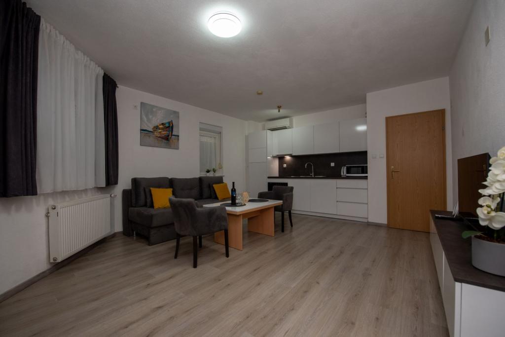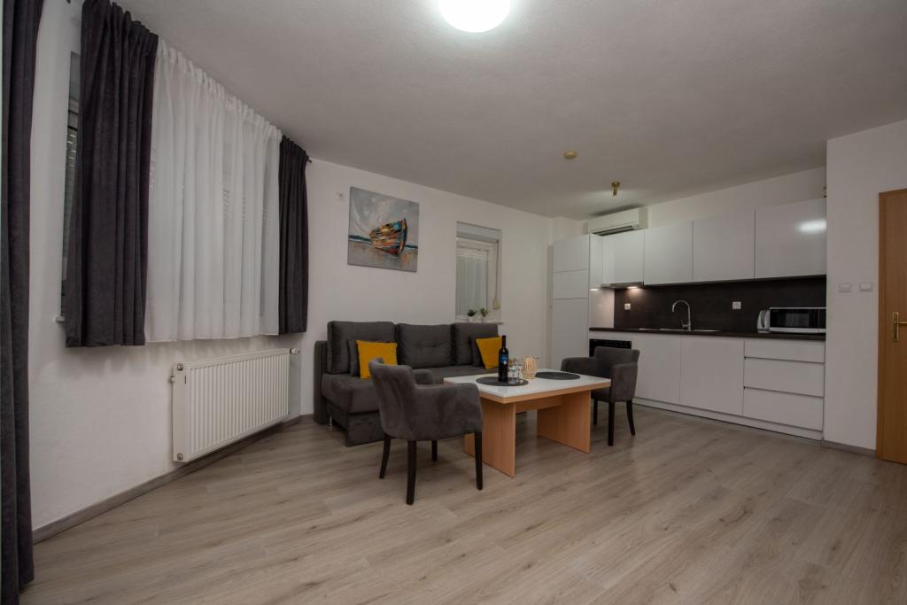 Sehr nette und freundliche Besitzer. Die Wohnung ist schön, sauber, klimatisiert, mit Terrasse und Blick auf das Meer. Die Unterkunft liegt direkt an einem sehr schönen Kiesstrand und Lebensmittelgeschäfte befinden sich direkt neben der Unterkunft. 2-3 Minuten von der Bäckerei und vom Taxi, das nach Trogir fährt. 15-20 Minuten zu Fuß zum Zentrum und zum Copacabana-Strand. Danke schön.