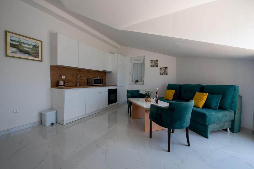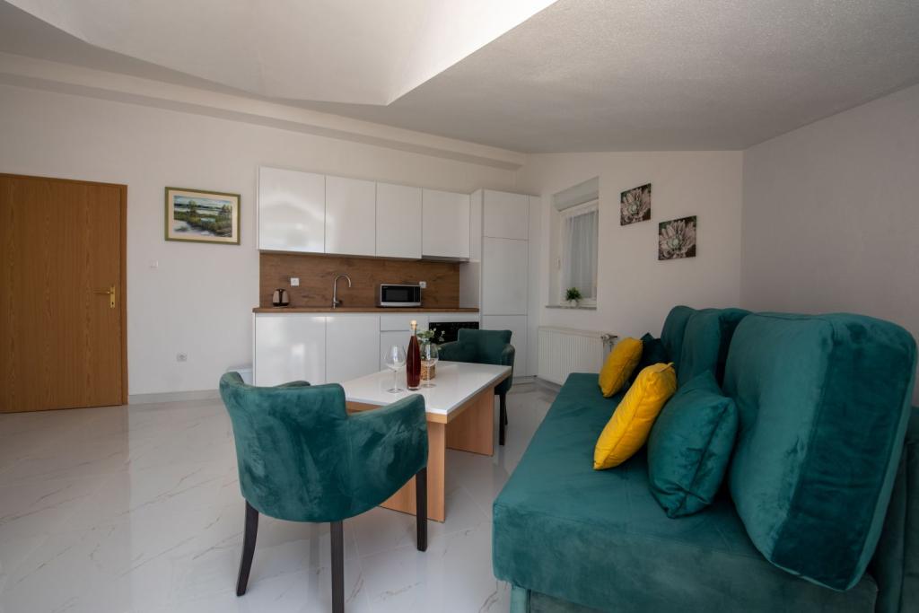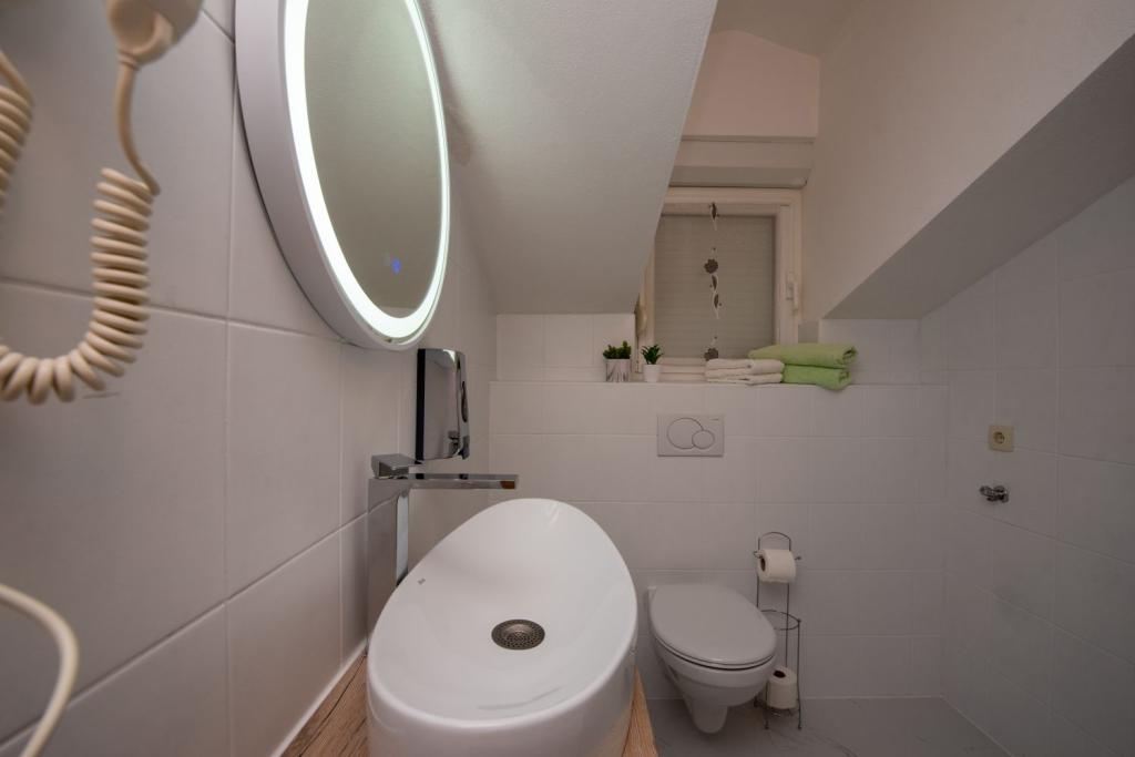 Ein ganz neues Gebäude. Das Bett war sehr gut, insgesamt sauber und schön, der Gastgeber war sehr nett. Geschäft wirklich in der Nähe von 30m. Vielleicht nur minus ein bisschen hügeliger Spaziergang nach Trogir, Stadtkürzel 1000m, sehr schön. Region ist auch fantastisch und nachts, weil es Mahlzeiten und Getränke mit anderen Freunden und Bars am Strand bietet.