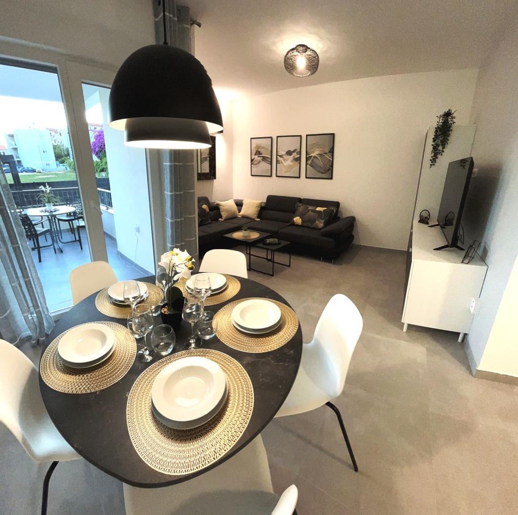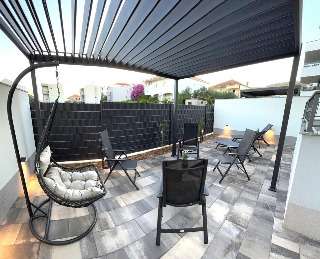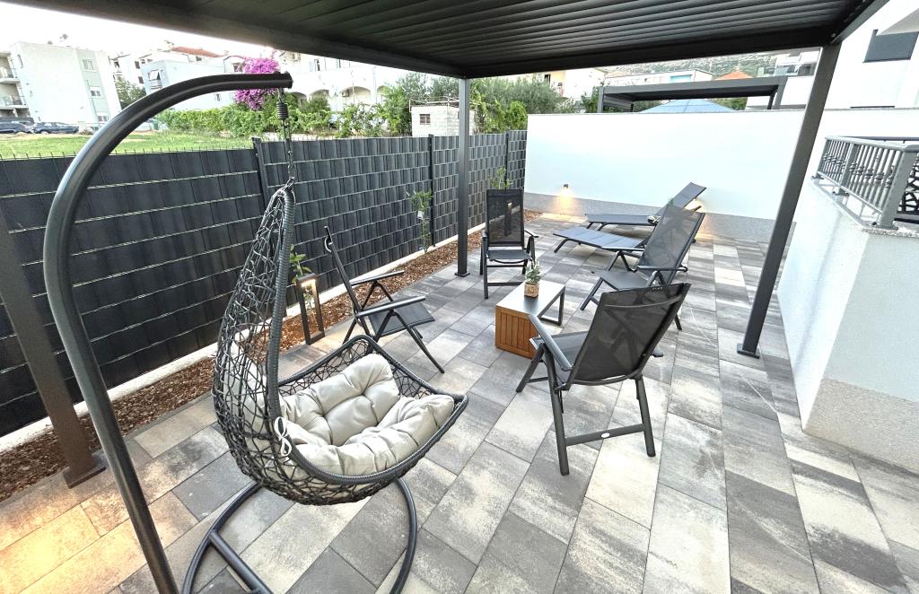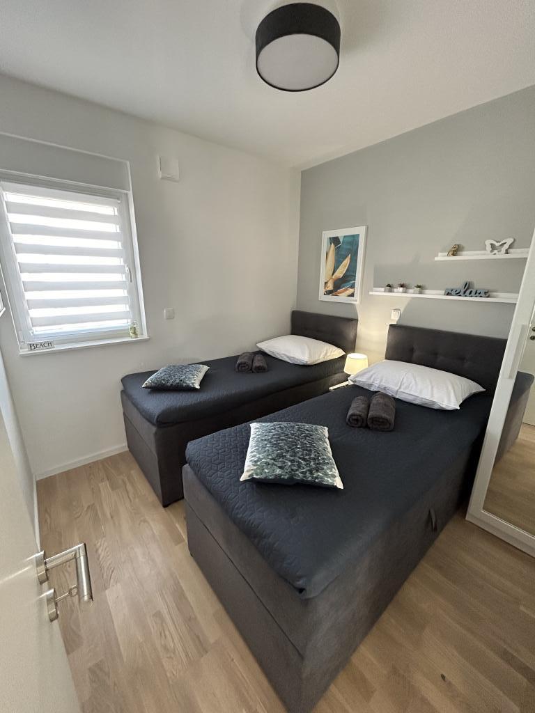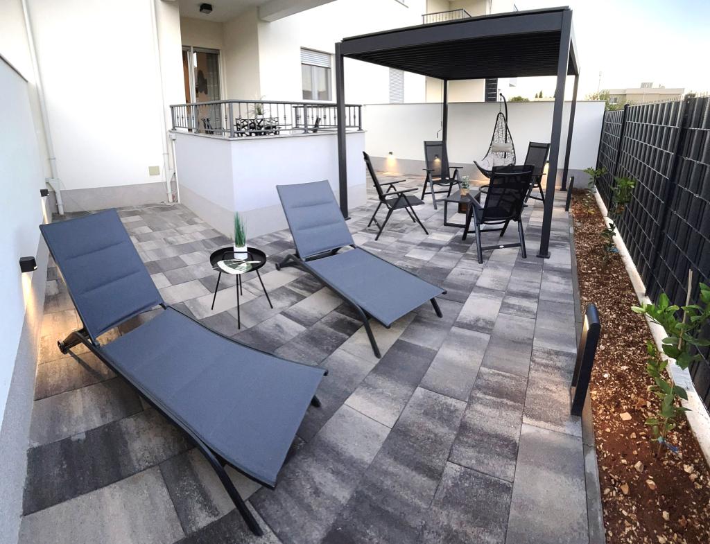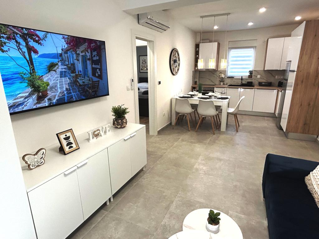Die Town Trogir Apartments befinden sich in bester Lage auf dem Festland von Trogir, nur 400 m von der Altstadt und 1000 m vom neuen Stadtstrand entfernt. Der Strand ist über eine Strandpromenade erreichbar. Alle wichtigen Einrichtungen sind in 5 bis 10 Minuten zu Fuß erreichbar. Die Town Trogir Apartments sind neu und befinden sich in einem kleinen Wohngebäude mit insgesamt 6 Apartments. Die Apartments haben eine Fläche von ca. 60 m² und liegen im Erdgeschoss, 1. und 2. Obergeschoss. Sie sind modern eingerichtet und komplett ausgestattet. Die Apartments verfügen über 2 Schlafzimmer, ein Wohnzimmer mit Essbereich, eine voll ausgestattete Küche, ein Badezimmer und im Erdgeschoss große Terrassen mit Gartenmöbeln. Wohnzimmer und Schlafzimmer sind mit separaten Klimaanlagen ausgestattet. Kostenlose Parkplätze stehen vor dem Gebäude zur Verfügung. Bettwäsche und Handtücher sind inklusive. WLAN ist kostenlos. Die Kurtaxe ist im Preis enthalten.