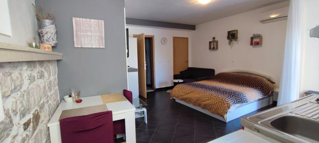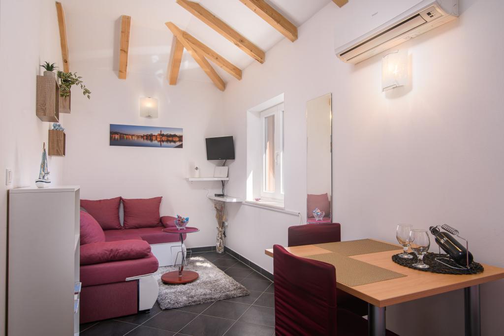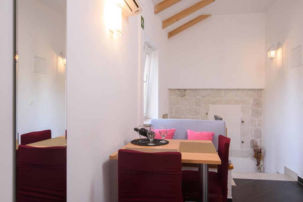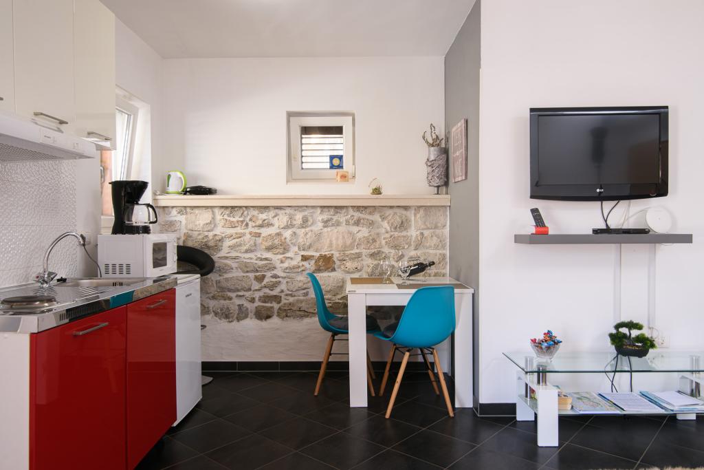 Brandneue und modern eingerichtete 4-Sterne-Apartments befinden sich im alten Teil von Trogir auf der Insel Čiovo. Im Erdgeschoss befindet sich ein Studio (für 2 Personen) und im ersten Stock ein Apartment (2 + 1). Die Apartments wurden 2014 vollständig renoviert, mit authentischen, über 200 Jahre alten Steinmauern, und sind komplett mit neuen Möbeln ausgestattet. Diese komfortabel eingerichteten Apartments sind klimatisiert und verfügen über kostenfreies WLAN. Jede Unterkunft verfügt über ein eigenes Badezimmer mit Haartrockner. Die Anlage ist nur 2 Minuten von der Altstadt Trogirs entfernt. In unmittelbarer Nähe gibt es Strände (5 Minuten entfernt), einen kleinen Yachthafen für Boote, Geschäfte, Restaurants, einen Markt und zahlreiche Cafés. Vor der Wohnung befindet sich ein kleiner Bootsterminal Trogir-Split. Außerdem besteht dort die Möglichkeit, Boote, Fahrräder oder Motorroller zu mieten. Die Apartments liegen in einem ruhigen Familienviertel, umgeben von alten Steinhäusern, direkt am Meer mit einem unvergesslichen Blick auf die Altstadt! Kostenlose Parkplätze stehen allen Gästen zur Verfügung. Willkommen :)