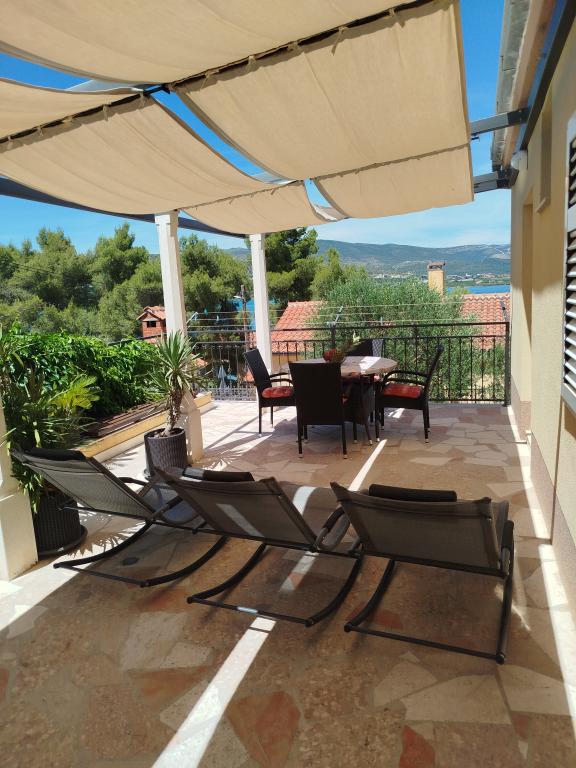 Wohnung 2 + 1 groß - groß, sehr nah am Strand. Der Nachteil ist der Mangel an Duschen am Strand, und nur sehr wenige Orte, an denen man essen kann. In Restaurants, Zahlung nur in bar. 2 km von Trogir, wo es alles, was man braucht. Ich würde empfehlen, wenn Sie Ruhe suchen.
