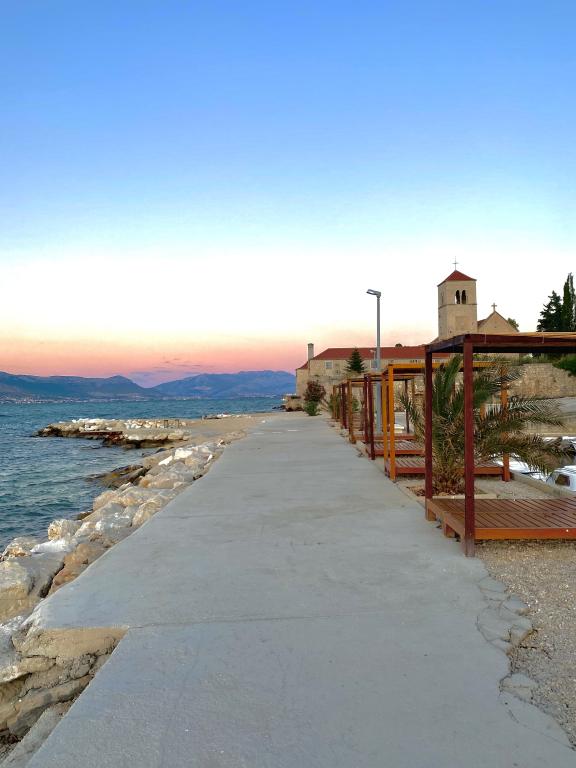 Das Apartment Bubble befindet sich in Mastrinka – Trogir (Insel Čiovo) in einem kleinen Gebäude, nur 5 Gehminuten vom Meer (250 m bergauf) und dem Strand entfernt, wo Sie viel Schatten finden. Außerdem gibt es am Strand zahlreiche Einrichtungen (Cafés, Schlauchboote im Meer usw.). Die Wohnung besteht aus einem Schlafzimmer, einem Badezimmer, einem Wohnzimmer und einer Küche sowie einem privaten, kleinen, eingezäunten Garten (30 Quadratmeter), in dem Sie den ganzen Tag und angenehme Sommernächte genießen können. Das Apartment ist klimatisiert und komplett mit allen notwendigen Geräten (Kaffeemaschine, Wasserkocher, Toaster...) ausgestattet, inklusive eingebautem Wasserfilter. Dem Gast steht ein gesicherter Parkplatz direkt vor dem Eingang des Gebäudes zur Verfügung. Unbegrenztes Internet, Smart-TV. Tragbares Babybett auf Anfrage. Haustiere erlaubt (Aufpreis)