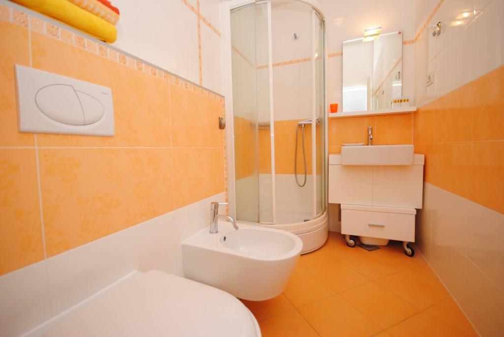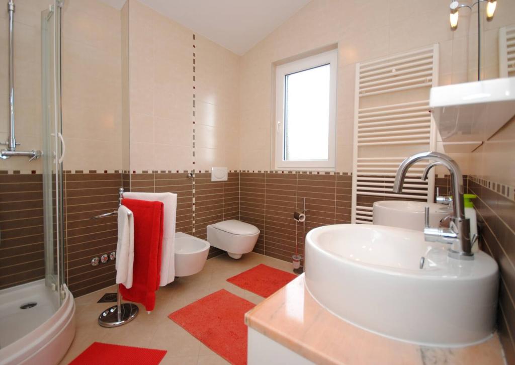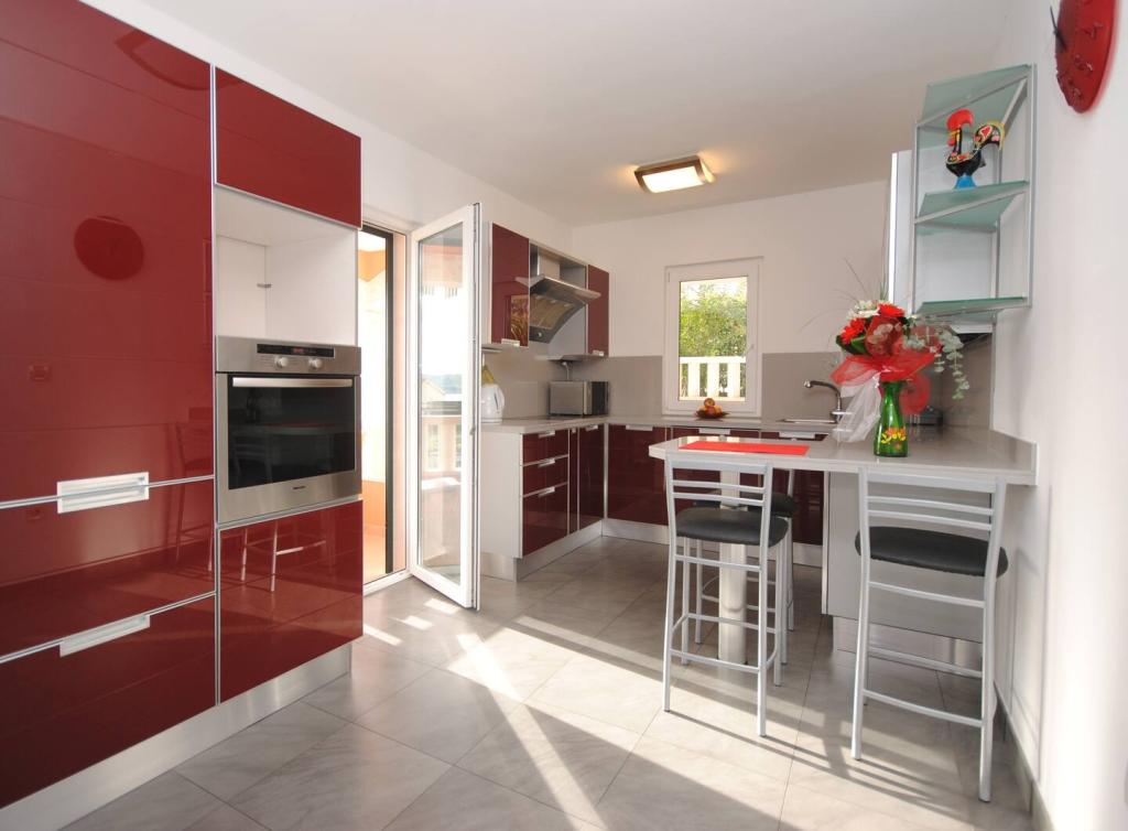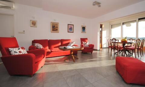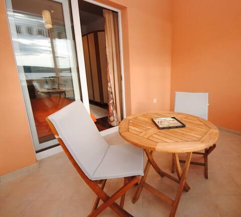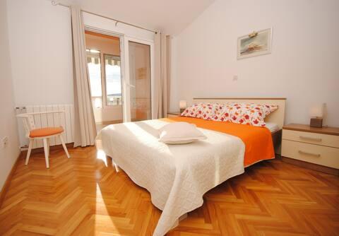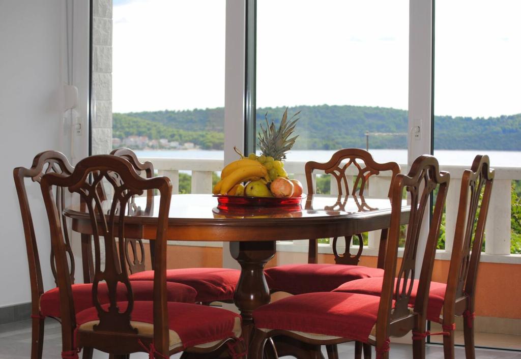 Das Luxusapartment mit Terrasse „Lucy“ und Blick auf das Meer liegt auf der Insel Čiovo in einer ruhigen Gegend, nur 10 Minuten von der historischen Altstadt von Trogir entfernt. Die Wohnung befindet sich im 1. Stock eines Einfamilienhauses. Diese Dreizimmerwohnung mit wunderschönem Blick auf das Meer ist nach höchsten Standards eingerichtet und mit allem ausgestattet, was Sie für einen angenehmen Aufenthalt benötigen. Wohnzimmer: Das geräumige Wohnzimmer ist mit Smart-TV, WLAN, bequemen Sofas und Sesseln und einer großen schönen Terrasse ausgestattet. Schlafzimmer: Es gibt Treppen, die zu 3 luxuriösen Schlafzimmern führen (Sonnenschlafzimmer (mit eigenem Bad und Terrasse), Meeresschlafzimmer und Sandschlafzimmer (mit Terrasse und Gemeinschaftsbad)). Jedes Zimmer verfügt über eine Klimaanlage, Nachttische, einen Schrank mit Bettwäsche und Handtüchern sowie ein Doppelbett (1,60 × 2). Hinter dem Haus befindet sich eine wunderschöne Vintage-Sommerküche (mit Grillplatz), die mit allem ausgestattet ist, was Sie für mediterranen Genuss benötigen.
