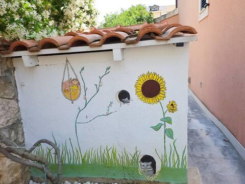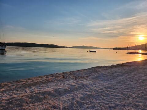 Für unsere jüngsten Gäste gibt es neben der Sommerküche einen Spielbereich, der mit einem Spielhaus, einem Tisch, Puzzles und Spielzeug ausgestattet ist. Wenn unsere Gäste ihren Sommerurlaub in vollen Zügen genießen möchten, steht ihnen ein SUP (Stand Up Paddle) zur Verfügung. Es ist kostenlos. In unmittelbarer Nähe der Wohnung finden Sie zahlreiche Cafés, Restaurants und Geschäfte – alles, was Sie während Ihres Aufenthalts benötigen. Das nächste Geschäft ist nur 2 Minuten entfernt, ebenso das Restaurant „Mediteraneo“. Der örtliche Strand ist ebenfalls nur 2 Gehminuten entfernt. Denken Sie auf dem Weg zurück zur Wohnung daran, dass ein kleiner Hügel zur Wohnung führt. Wenn Sie Empfehlungen zum Essen oder zum Gehen benötigen, können Sie sich an die Haushälterin Lucia wenden, die im Erdgeschoss wohnt Wir helfen Ihnen gerne bei allem, was Sie brauchen. Wenn Sie eine Woche oder länger bei uns bleiben, erhalten Sie eine kostenlose Führung durch die Altstadt von Trogir mit Lucia, die auch eine lizenzierte Reiseführerin ist.