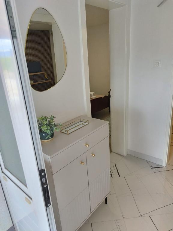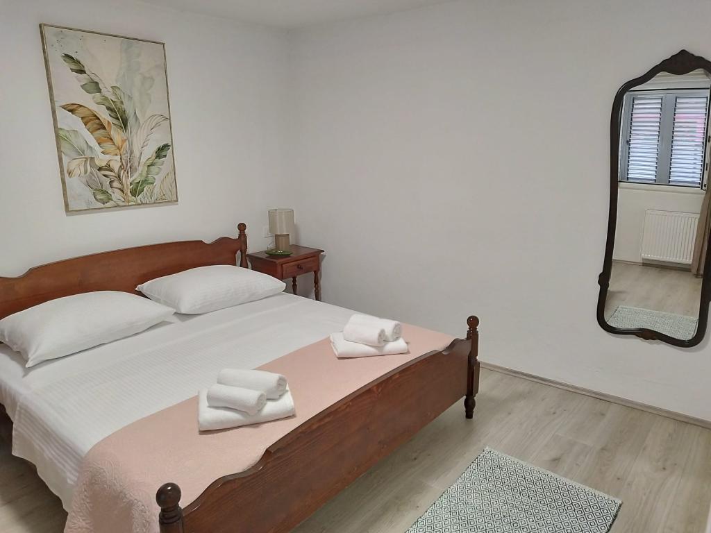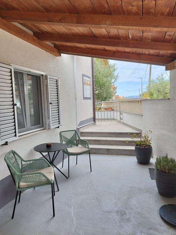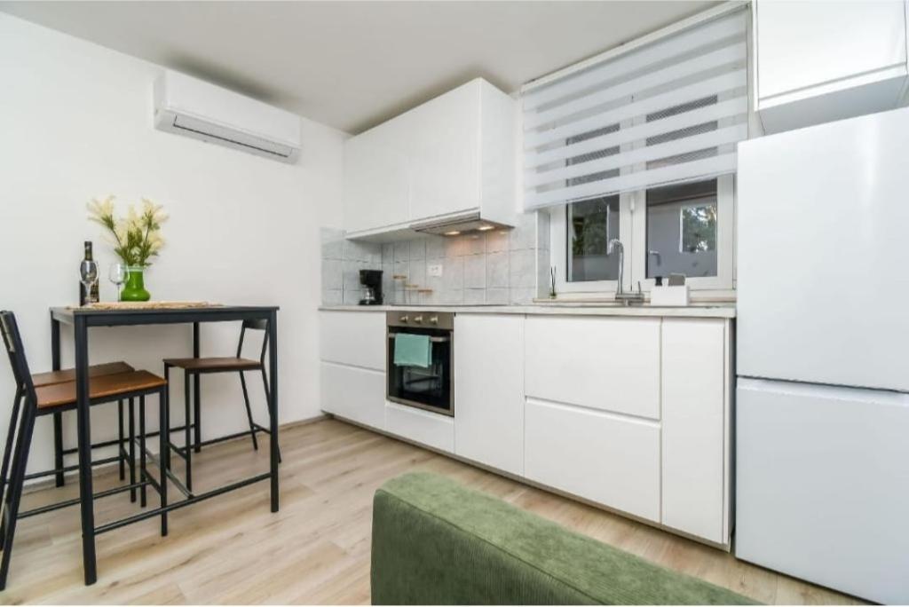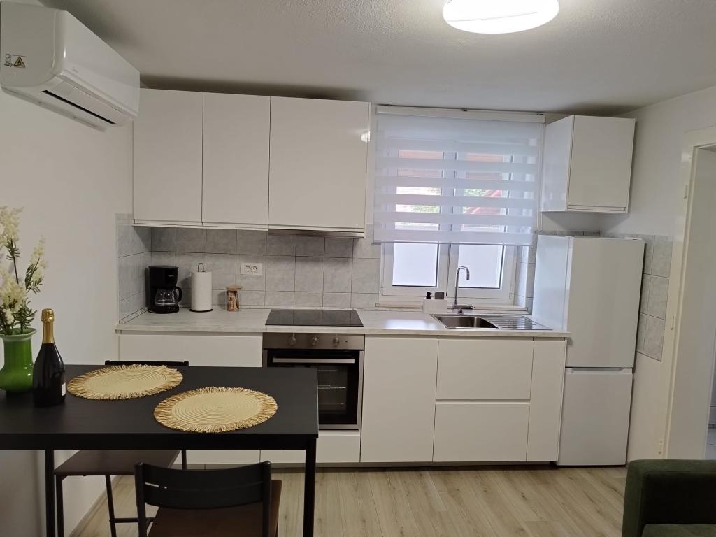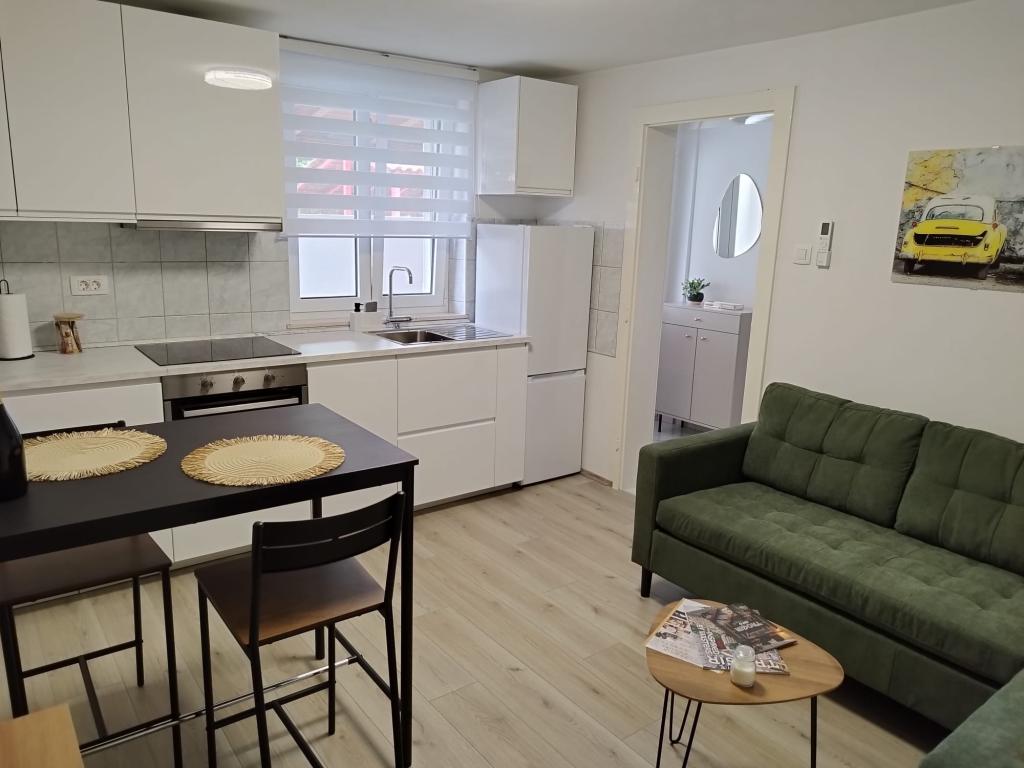 Willkommen im Apartment Žunta. Das Apartment liegt nur 5 Gehminuten vom UNESCO-geschützten historischen Zentrum von Trogir entfernt. Es verfügt über eine voll ausgestattete Küche mit Geschirrspüler und Kaffeemaschine, ein Badezimmer mit Dusche und Haartrockner sowie ein separates, geräumiges Schlafzimmer mit Kingsize-Bett. Vor dem Apartment befindet sich eine Terrasse mit Schaukel zum Entspannen. Das Apartment ist Teil eines Privathauses und hat einen separaten Eingang. Dank der ruhigen Lage in der Nachbarschaft sind wir sehr gut erreichbar und befinden uns in unmittelbarer Nähe zum Stadtzentrum, Sehenswürdigkeiten, Supermärkten, Flughäfen und Stränden. Die Unterkunft bietet kostenfreie Privatparkplätze, kostenfreies WLAN im gesamten Gebäude sowie eine Klimaanlage. Das Apartment ist für maximal zwei Personen buchbar.
