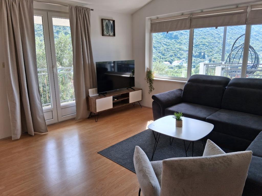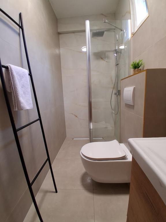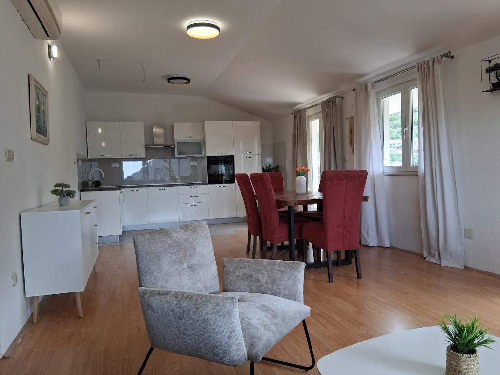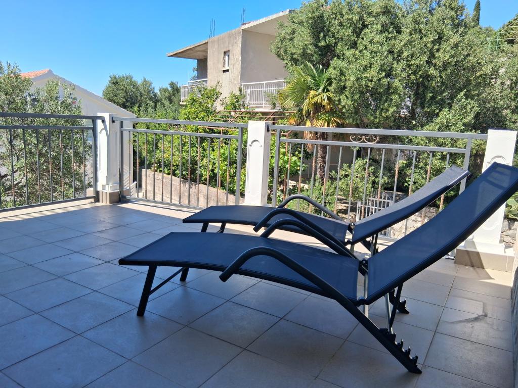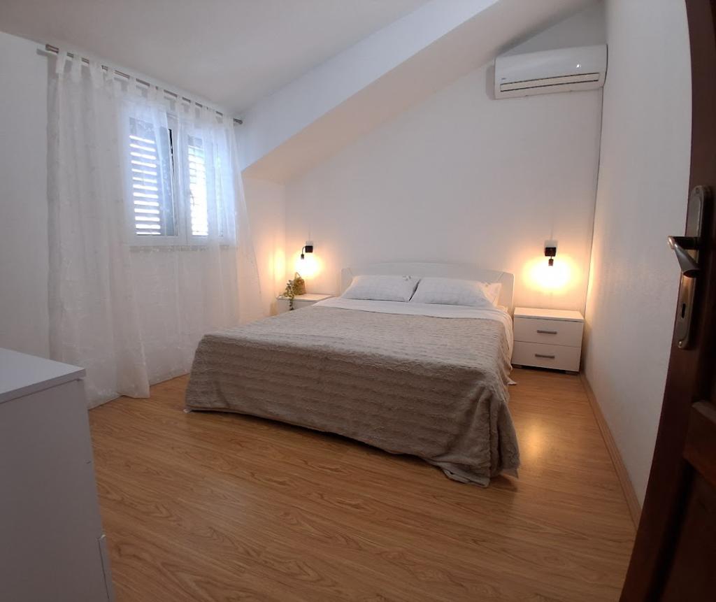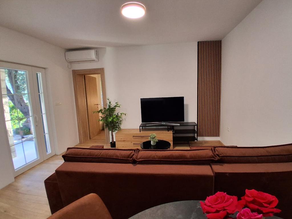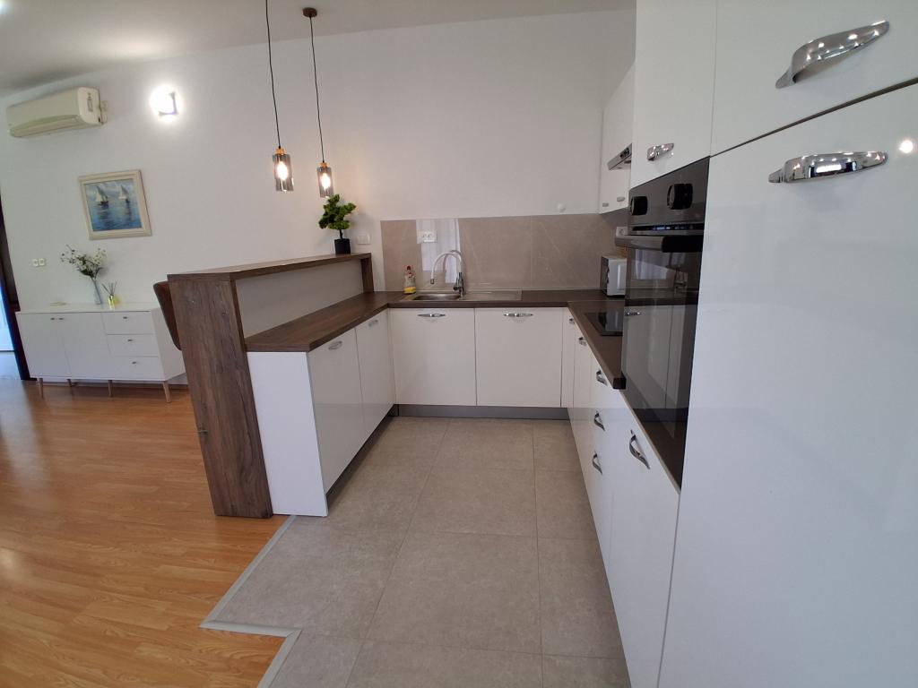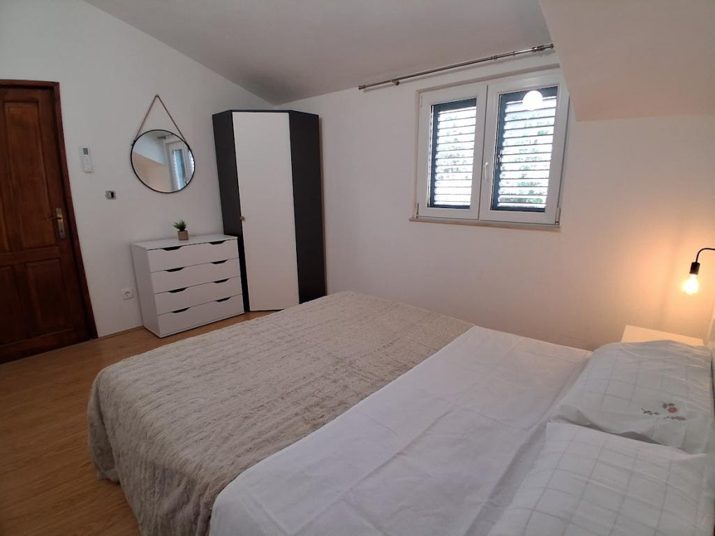 Komplett und modern ausgestattetes großes Apartment mit zwei Schlafzimmern, Meerblick und großer überdachter Terrasse – gesamte Etage und Apartment mit einem Schlafzimmer im Erdgeschoss mit einer wunderschönen Terrasse. Das Apartment mit zwei Schlafzimmern besteht aus zwei Schlafzimmern mit Doppelbetten, einem Badezimmer, einer geräumigen Küche und einem Wohnzimmer mit einem Sofa, das bei Bedarf in ein Bett umgewandelt werden kann. Das Apartment mit einem Schlafzimmer besteht aus einem Zimmer mit Doppelbett plus Zustellbett für eine dritte Person. Es besteht auch die Möglichkeit eines Schlafsofas im Wohnzimmer. 5-7 Minuten vom schönen Strand und der Strandbar entfernt; Entfernung zum Zentrum ca. 10 Minuten zu Fuß. Im Preis inbegriffen sind Parkplatz, WLAN, Klimaanlage in jedem Zimmer, Handtücher, Waschmaschine und Geschirrspüler, Toilette, Wasserkocher, Kaffeemaschine (Apartment mit zwei Schlafzimmern), Haartrockner, Bügeleisen und Bügelbrett (Apartment mit zwei Schlafzimmern).