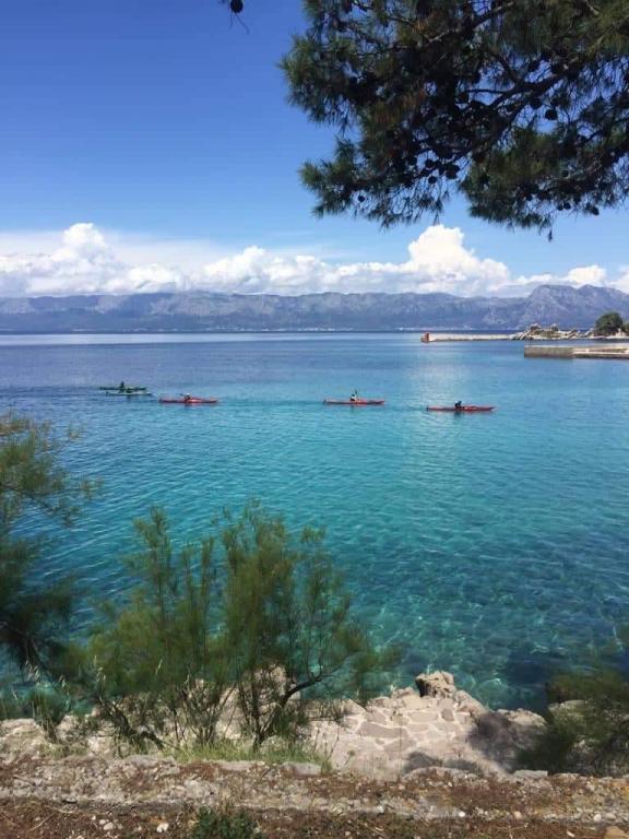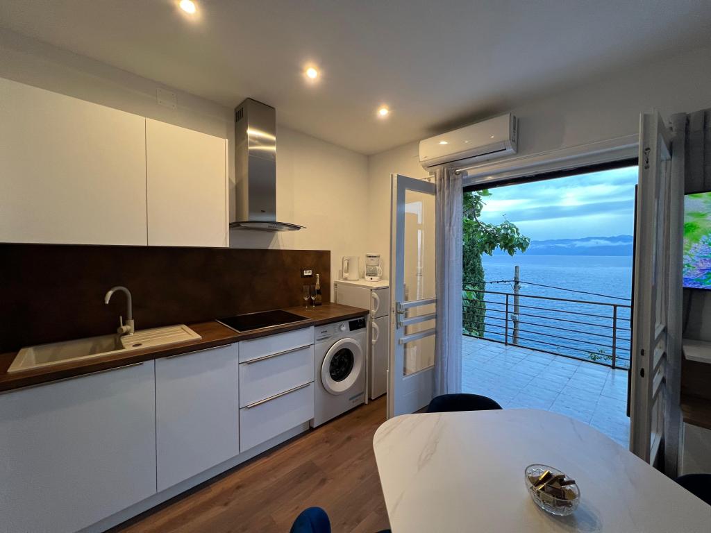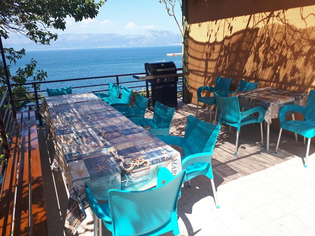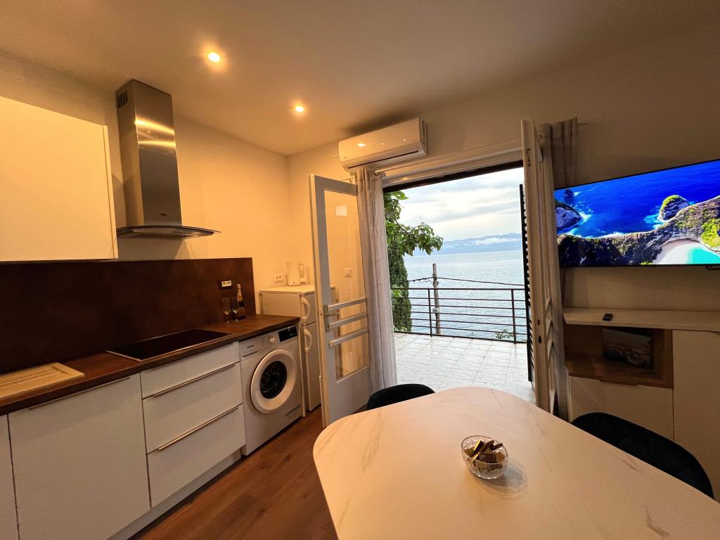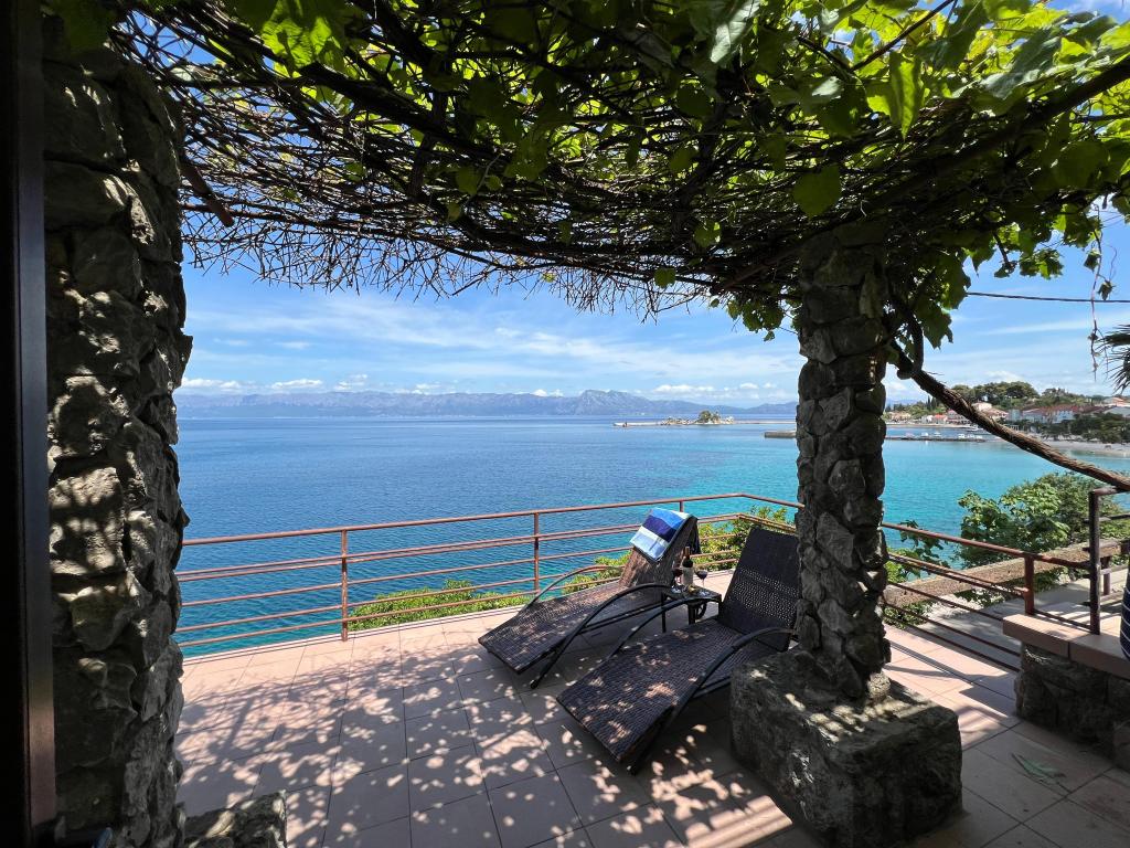 Willkommen in unserer Villa, eingebettet in die ruhige Schönheit der Natur, direkt über dem glitzernden Meer und direkt am Strand gelegen. Die Villa Montana bietet ein außergewöhnliches Erlebnis in einer wunderschönen Landschaft und einer entspannten Atmosphäre. Das Studio-Apartment im ersten Stock ist einzigartig und kombiniert modernes Design mit einheimischem Stein. Es erstreckt sich über zwei Ebenen und bietet offenen Meerblick sowie eine geräumige Terrasse. Ideal für Paare. Das Apartment im zweiten Stock verfügt über zwei Schlafzimmer, ein Badezimmer, eine modern ausgestattete Küche und einen Wohnbereich sowie eine private Terrasse. Es ist für vier Personen geeignet. Im dritten Stock befinden sich zwei Apartments, die oft zusammen vermietet werden. Das erste Apartment mit Balkonen und herrlicher Aussicht erstreckt sich über 90 m² und bietet bequem Platz für acht Gäste. Es besteht aus einem Wohnzimmer, drei Schlafzimmern (3+3+2), zwei Badezimmern und einer gut ausgestatteten modernen Küche. Das zweite Apartment für vier Personen verfügt über zwei Schlafzimmer, zwei Badezimmer, eine moderne Küche und ein Wohnzimmer. Von der geräumigen Terrasse aus haben Sie einen unglaublichen Blick auf das bezaubernde Panorama.