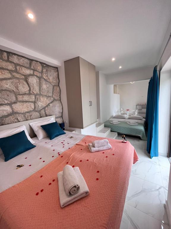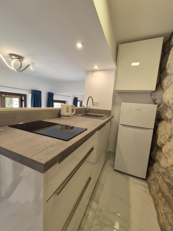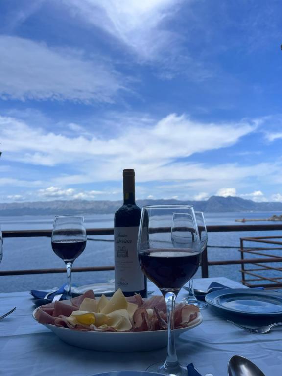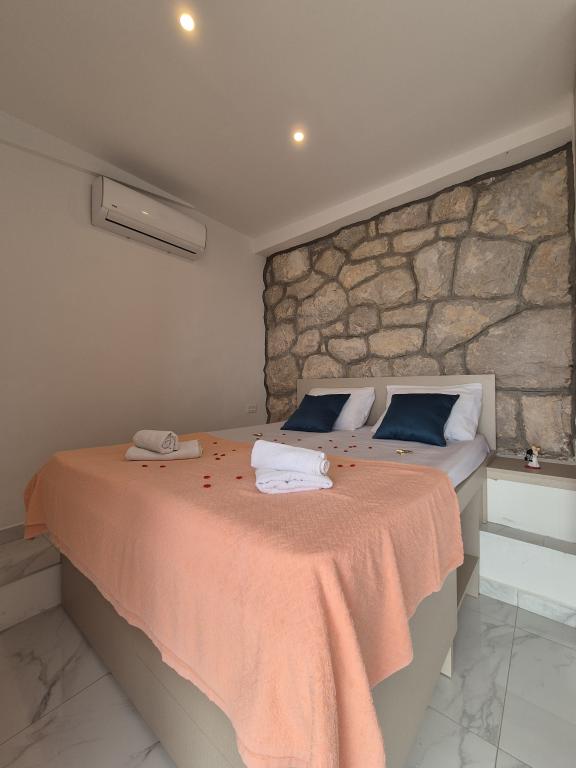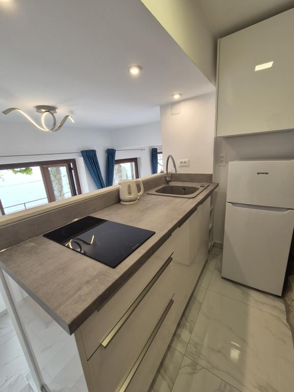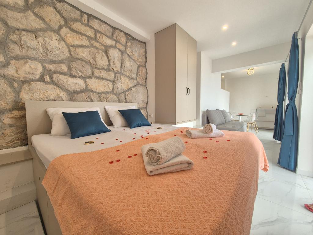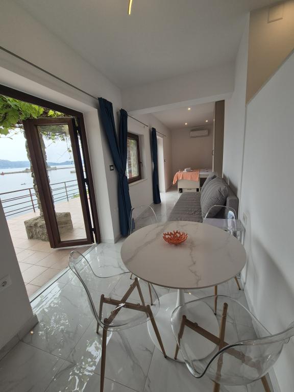 Willkommen in unserer Villa, eingebettet in die ruhige Schönheit der Natur, direkt über dem glitzernden Meer und direkt am Strand gelegen. Die Villa Montana bietet ein außergewöhnliches Erlebnis in einer wunderschönen Landschaft und einer entspannten Atmosphäre. Das Studio-Apartment im ersten Stock ist einzigartig und kombiniert modernes Design mit einheimischem Stein. Es erstreckt sich über zwei Ebenen und bietet offenen Meerblick sowie eine geräumige Terrasse. Ideal für Paare. Das Apartment im zweiten Stock verfügt über zwei Schlafzimmer, ein Badezimmer, eine modern ausgestattete Küche und einen Wohnbereich sowie eine private Terrasse. Es ist für vier Personen geeignet. Im dritten Stock befinden sich zwei Apartments, die oft zusammen vermietet werden. Das erste Apartment mit Balkonen und herrlicher Aussicht erstreckt sich über 90 m² und bietet bequem Platz für acht Gäste. Es besteht aus einem Wohnzimmer, drei Schlafzimmern (3+3+2), zwei Badezimmern und einer gut ausgestatteten modernen Küche. Das zweite Apartment für vier Personen verfügt über zwei Schlafzimmer, zwei Badezimmer, eine moderne Küche und ein Wohnzimmer. Von der geräumigen Terrasse aus haben Sie einen unglaublichen Blick auf das bezaubernde Panorama.