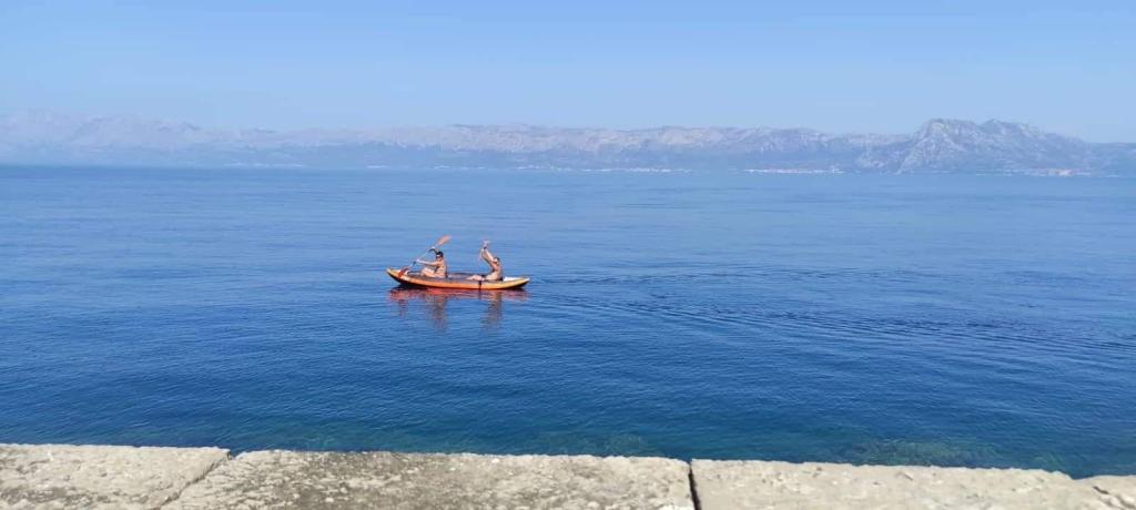 Eines der Highlights unserer Unterkunft ist die geräumige Terrasse, auf der Sie das Rauschen der Wellen, die Meeresbrise und den Duft der Küstenpflanzen genießen können. Ob Sie Ihren Morgenkaffee genießen, mit Freunden speisen oder einfach ruhige Abende verbringen, unsere Terrassen bieten eine unglaublich entspannende Atmosphäre. Gästen im dritten Stock steht eine 55 m² große Garage mit ausreichend Stellplätzen und einem Kajak für 2+1 Personen zur Verfügung. Dieser Service ist im Preis inbegriffen. Für Apartments im ersten und zweiten Stock gibt es Parkplätze entlang der Straße und die Möglichkeit, auf einem nahegelegenen gebührenpflichtigen Parkplatz zu parken. Die Parkkosten trägt der Eigentümer. Trpanj ist ideal zum Entspannen auf langen Promenaden am Meer und zum Entdecken der Sehenswürdigkeiten der Altstadt und ein ausgezeichneter Ausgangspunkt für Tagesausflüge nach Korčula, Dubrovnik, Mljet oder zu den Stränden von Divna und Duba. Das Stadtzentrum mit Geschäften, Restaurants und Geldautomaten ist nur wenige Gehminuten entfernt.