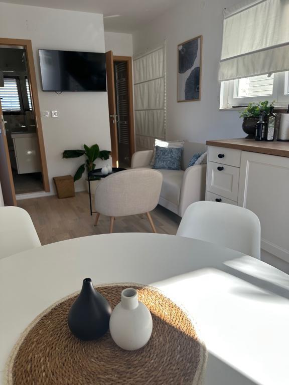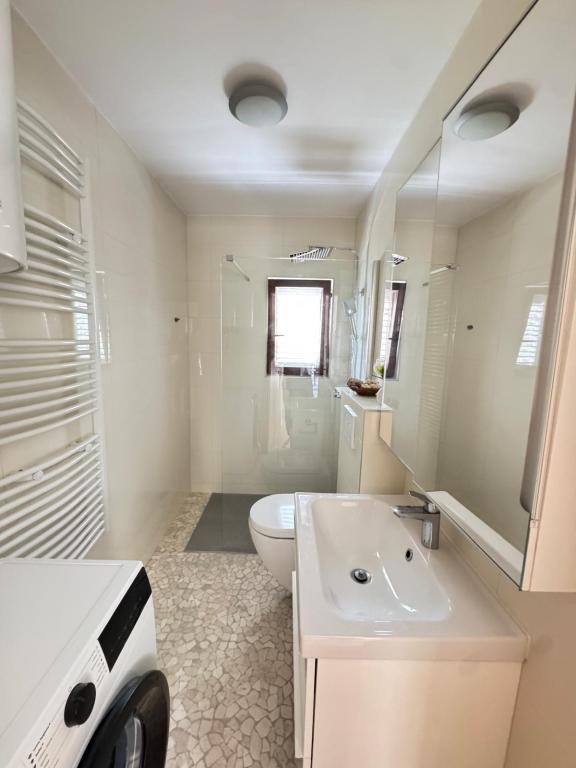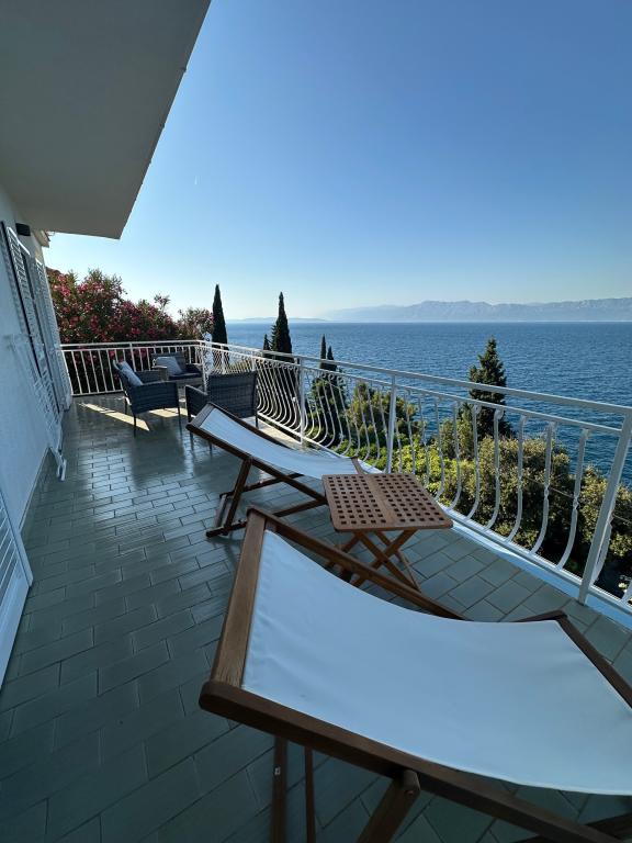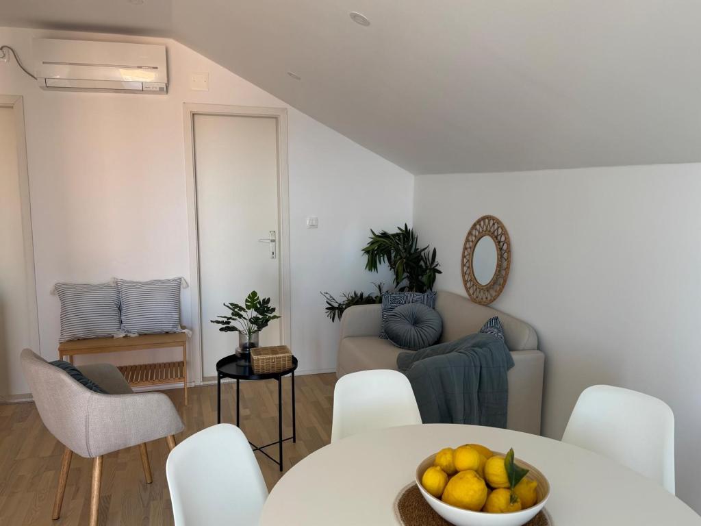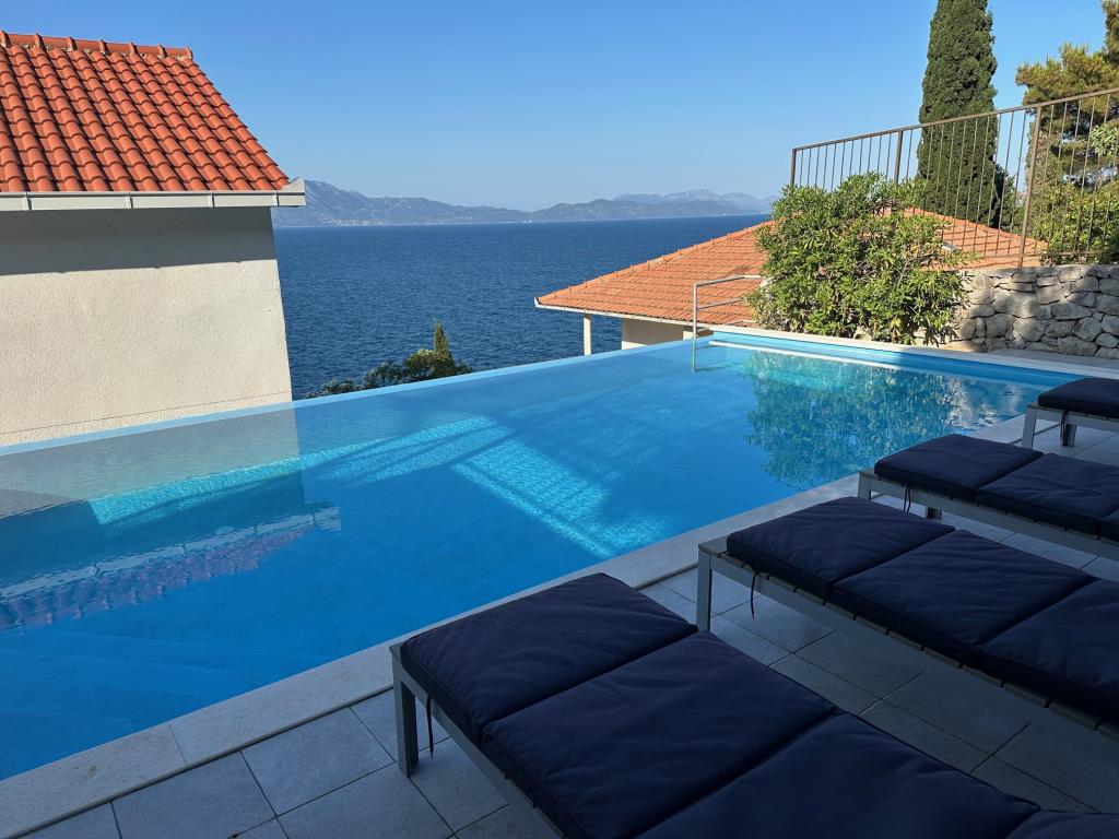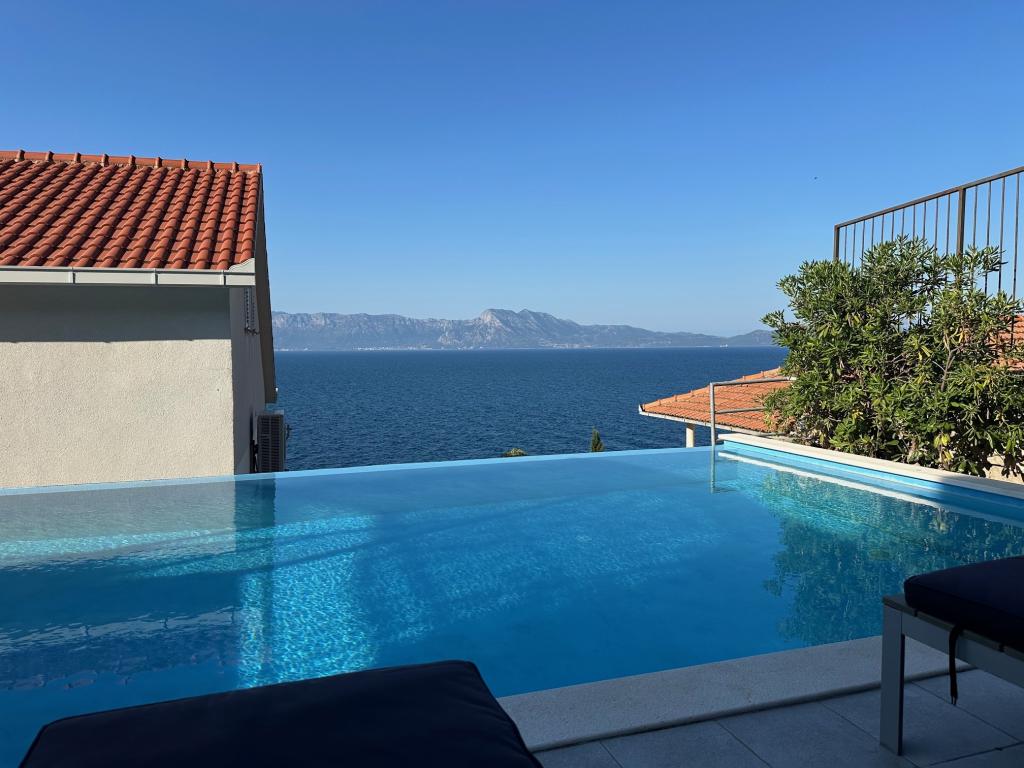 Komplett und modern eingerichtete Apartments in ruhiger Lage, in zweiter Reihe zum Meer gelegen; die Anlage liegt 15 Gehminuten vom Zentrum und 10 Gehminuten vom Kieselstrand bzw. nur 20–30 Meter von einem Fels- oder Betonstrand entfernt. Apartment 2 verfügt über einen privaten Infinity-Pool mit Sonnenliegen und Dusche sowie einen wunderschönen Meerblick. Jedes Apartment verfügt über zwei moderne Badezimmer mit Fußbodenheizung.