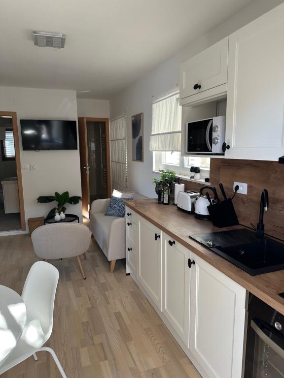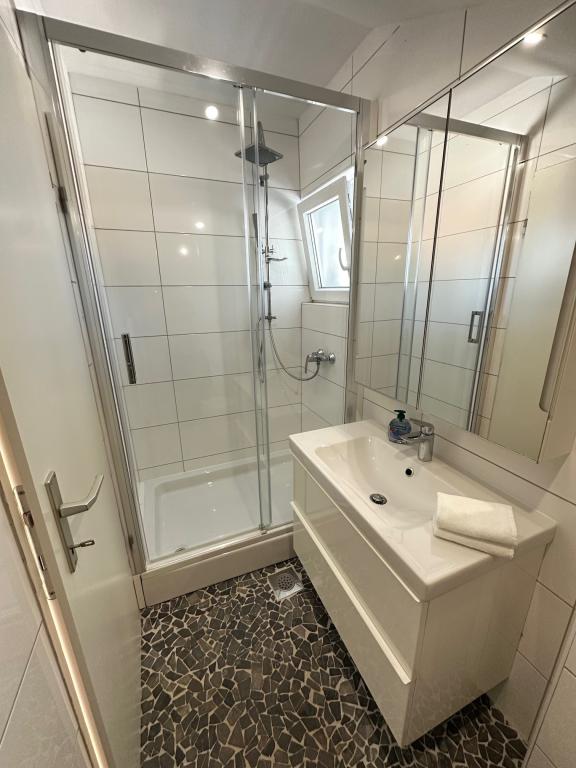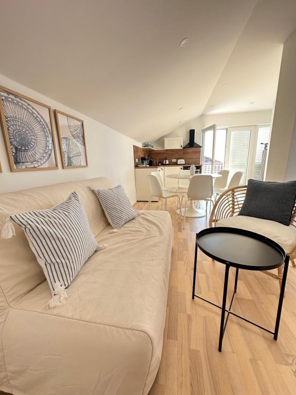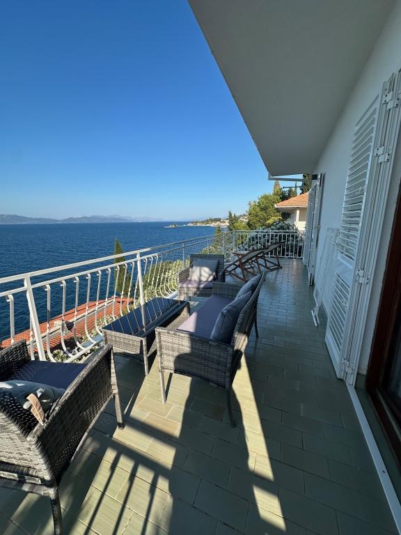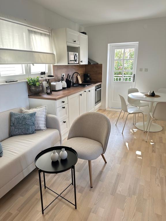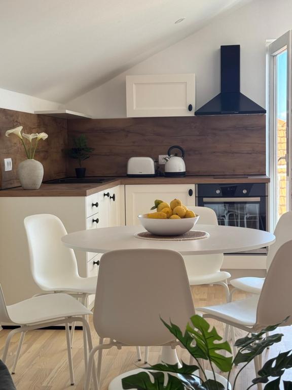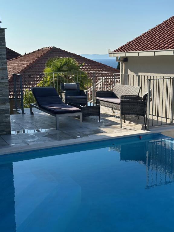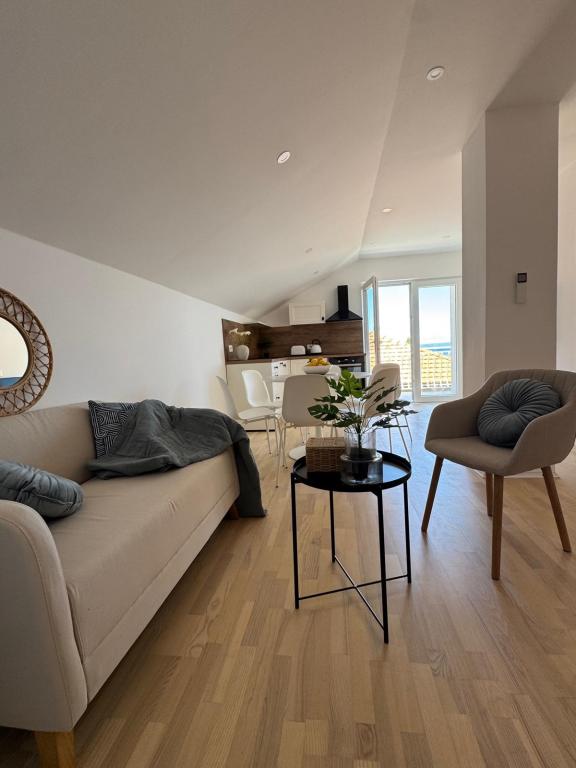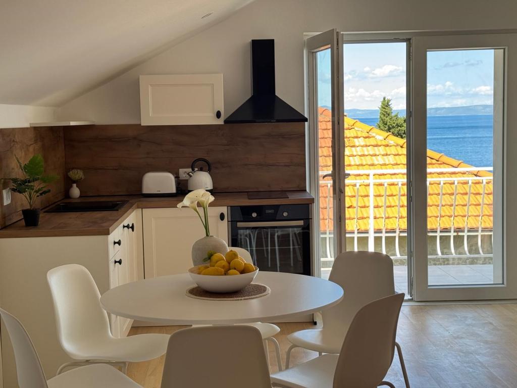 Komplett und modern eingerichtete Apartments in ruhiger Lage, in zweiter Reihe zum Meer gelegen; die Anlage liegt 15 Gehminuten vom Zentrum und 10 Gehminuten vom Kieselstrand bzw. nur 20–30 Meter von einem Fels- oder Betonstrand entfernt. Apartment 2 verfügt über einen privaten Infinity-Pool mit Sonnenliegen und Dusche sowie einen wunderschönen Meerblick. Jedes Apartment verfügt über zwei moderne Badezimmer mit Fußbodenheizung.