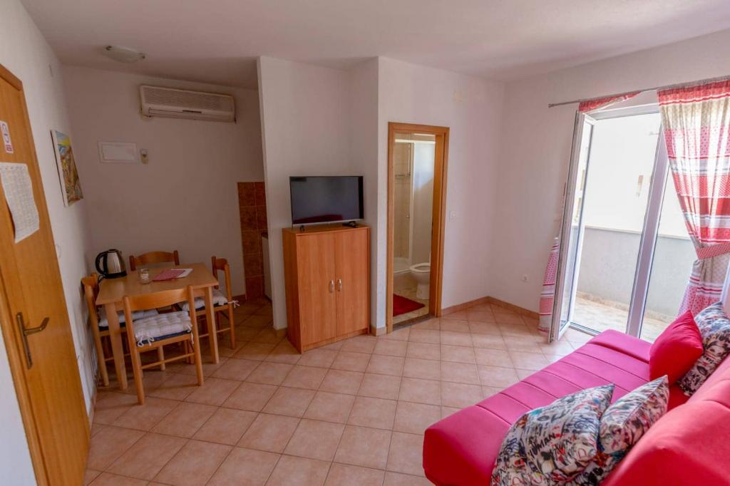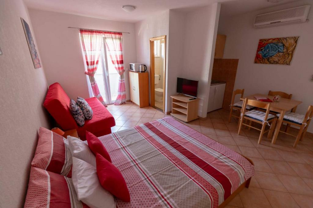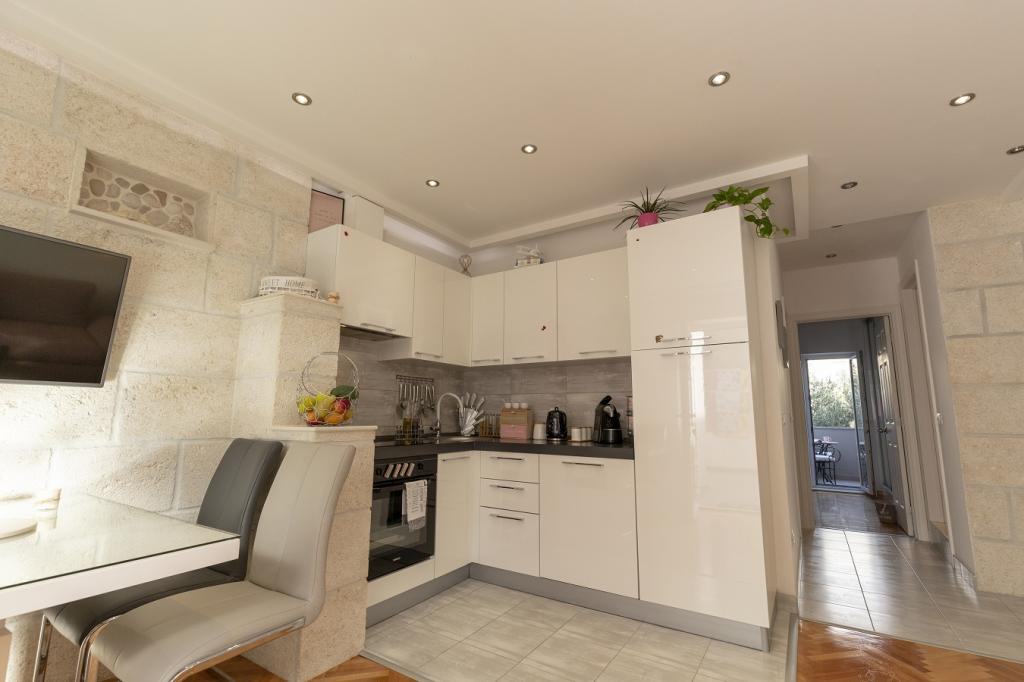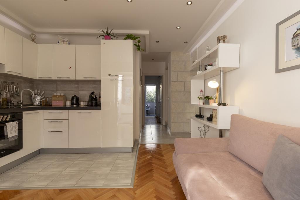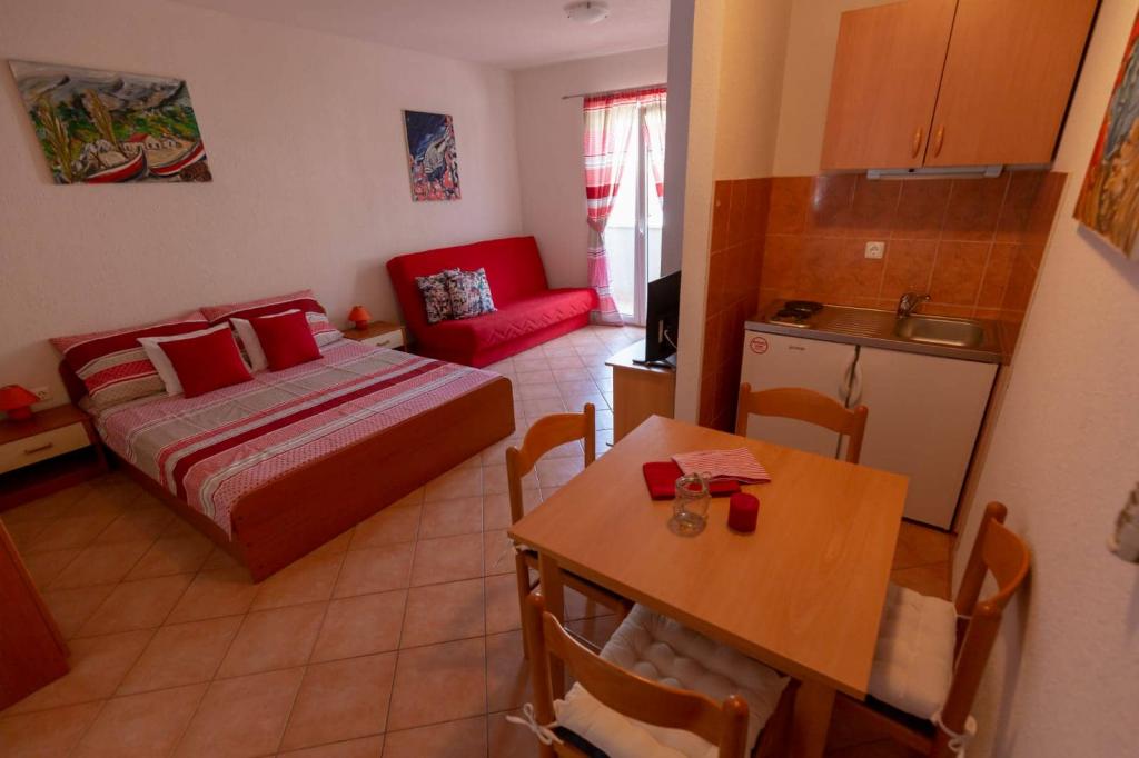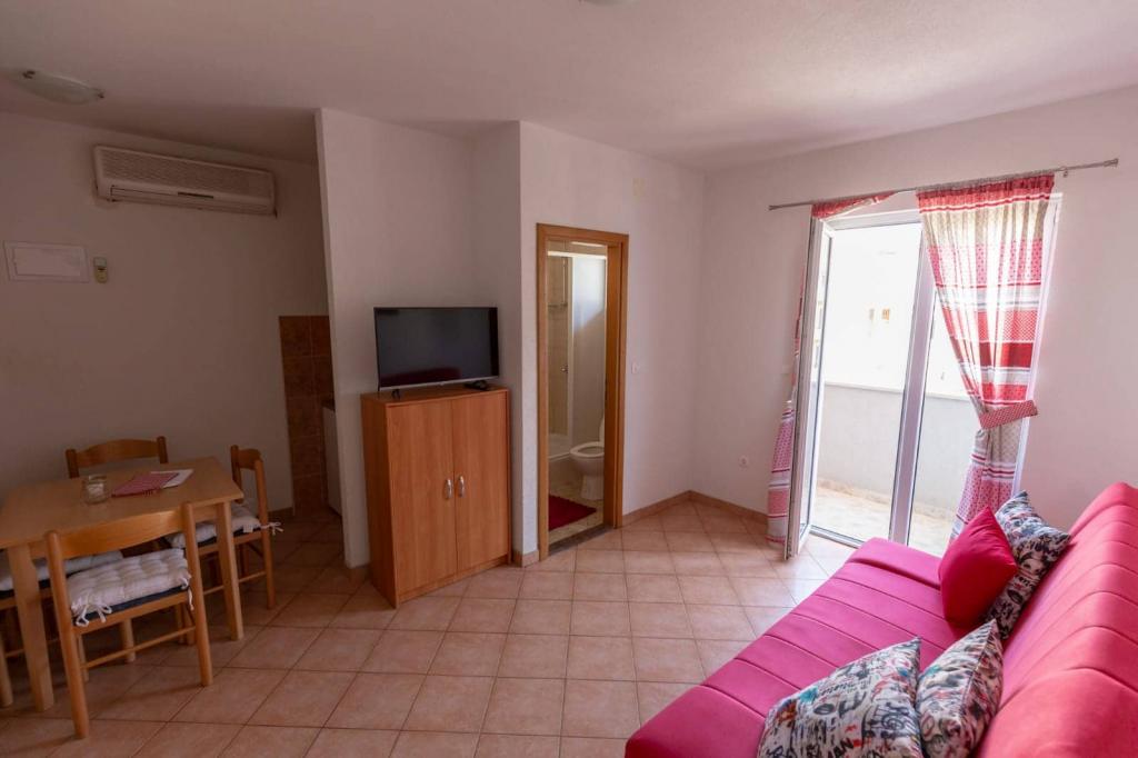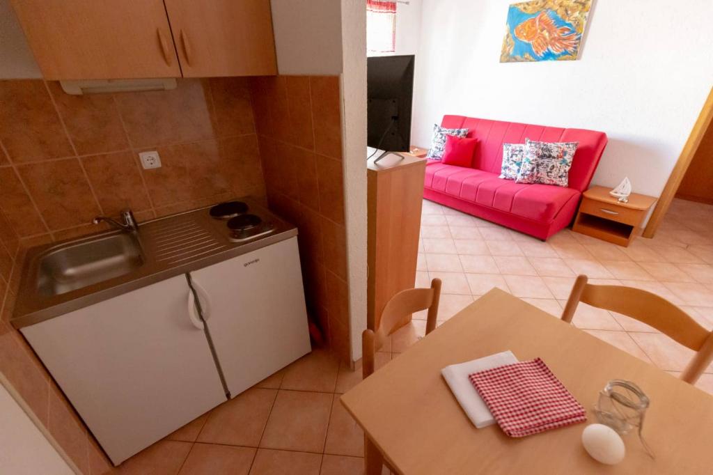 Die Wohnungen sind 30 Meter vom Meer entfernt, in der Nähe der Wohnung gibt es Restaurants, Bars, Supermarkt und andere Einrichtungen. Gegen einen Aufpreis von 6 Euro pro Person und Nacht bieten wir Frühstück im Gebäude neben dem Strand an. Ideal für einen autofreien Urlaub. Spüren Sie den Charme der Perlen Dalmatiens, entspannen Sie sich an den Stränden, die sich über 3 km erstrecken und sich im kristallklaren Meer spiegeln