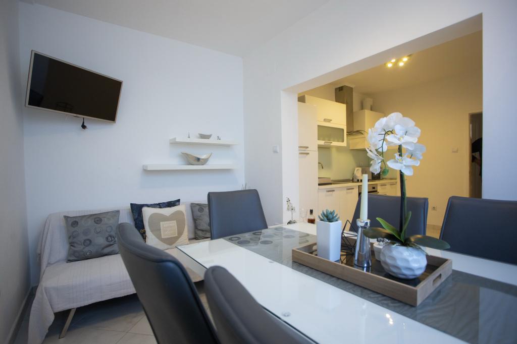 Sehr gute Bedingungen. Wohnung komplett ausgestattet, modern, Möbel neu, nicht zerstört. Fotos vollständig widerspiegeln die Fakten. Die Gastgeber immer angenehm und freundlich. Während unseres Aufenthaltes hatten wir einen kleinen Crash das Auto. Der Eigentümer war sehr hilfsbereit. Er empfahl uns von einem guten Mechaniker II in allem geholfen. Wir empfehlen auch die Umgebung - ein guter Ort, um zu erkunden. Tolle Aussicht und ein fantastischer Strand mit Duschen, Umkleidekabinen. Mit ihr zufrieden sind Amateure von Sonne und Schatten Unterstützer, die wachsenden Pinien am Strand entlang zu schaffen. Der Weg zum Strand dauert 5 Minuten. gehen. Wir waren schon in mehreren Orten in Kroatien gewesen, aber hier gehen wir wieder. Vielen Dank für einen wunderbaren Aufenthalt und grüßen :)