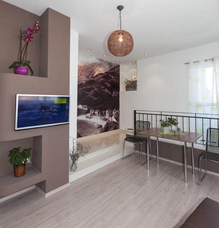 Die Wohnungen sind komplett ausgestattet und befinden sich nur 3 bis 4 Gehminuten vom Strand und 7 bis 8 Gehminuten vom Zentrum entfernt. Entlang des Strandes befinden sich zahlreiche Restaurants und Supermärkte. Die Bushaltestelle ist eine Gehminute entfernt. Je nach Wohnung verfügt jedes über eine große Terrasse oder einen größeren Balkon.