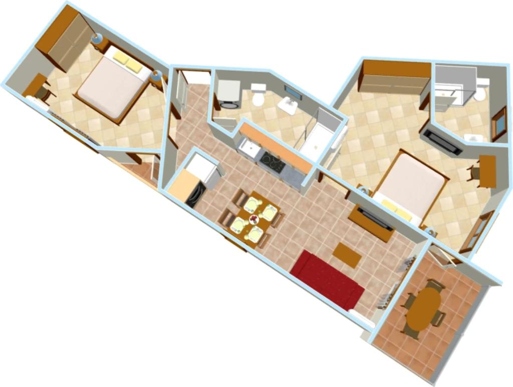Ferienwohnung für zwei Personen mit drei Zusatzbetten (59 m2)