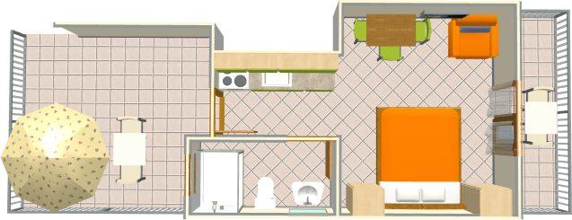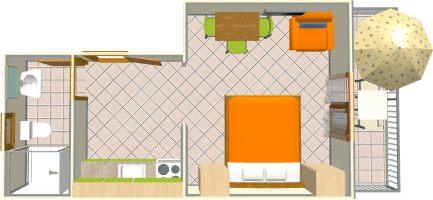 Ferienwohnung für zwei Personen mit Zusatzbett (20 m2)