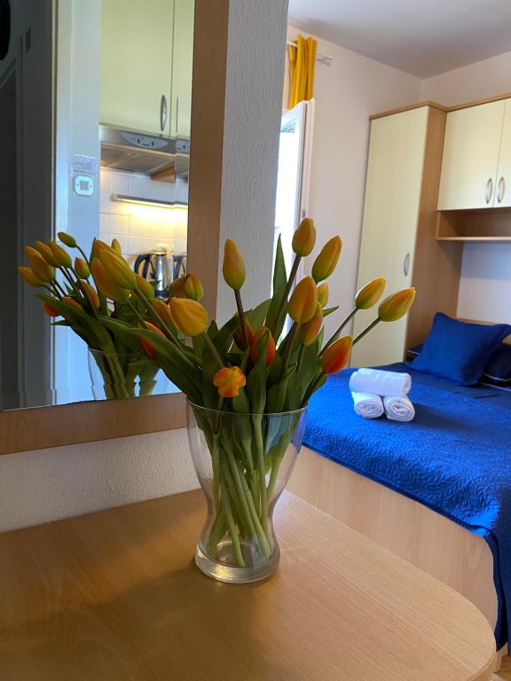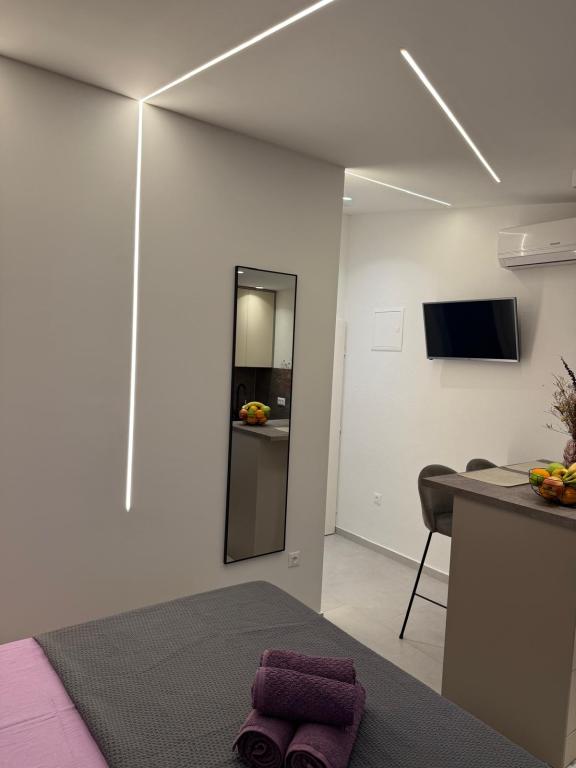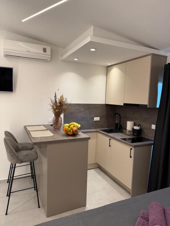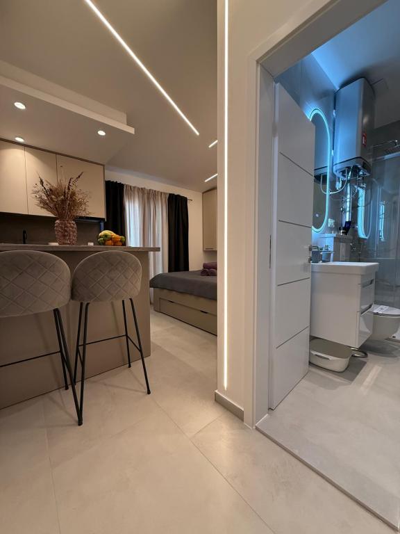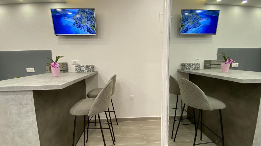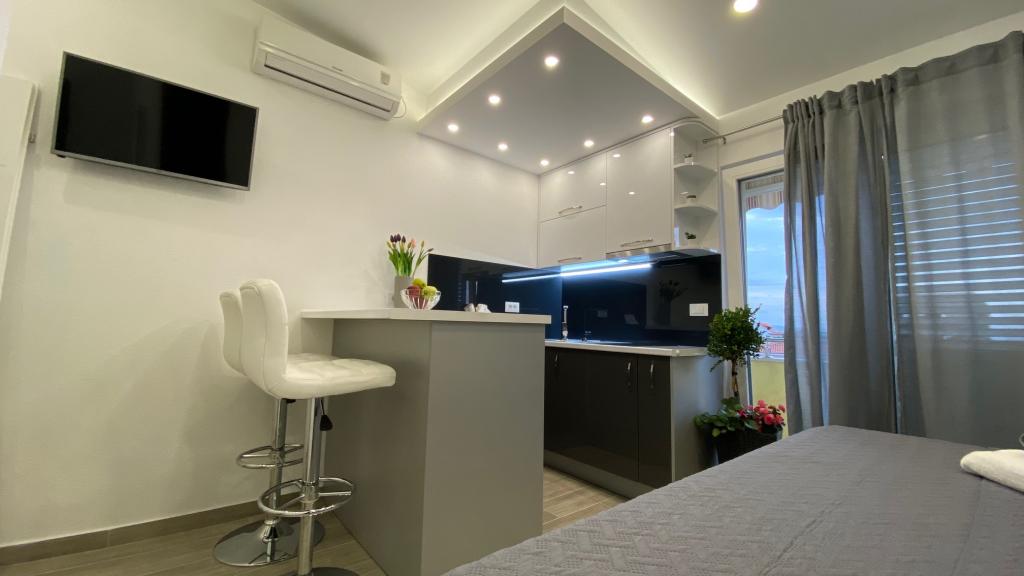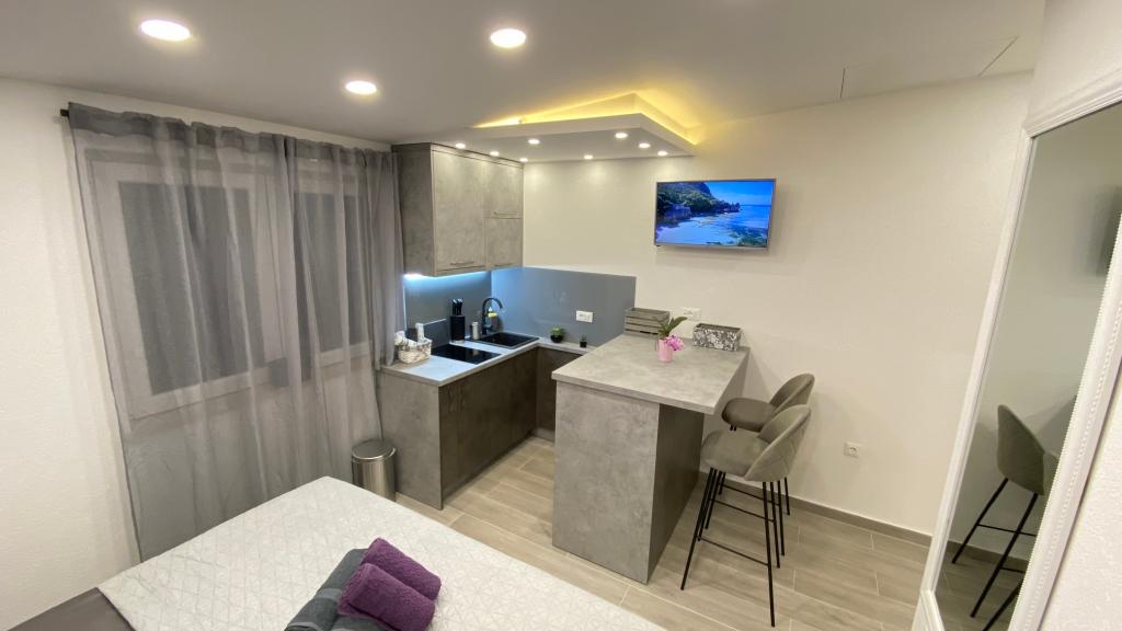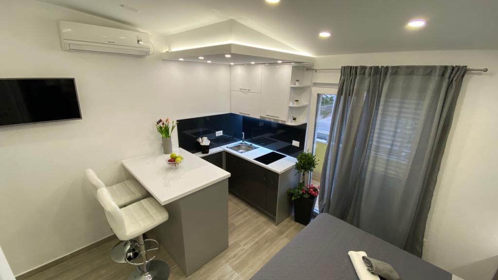 Das luxuriös ausgestattete Studio-Apartment **** für 2 Personen bietet alles, was Sie erwarten können und noch mehr. Moderne Möbel, Küche mit Bar, Barhocker, fantastische LED-Beleuchtung, alle möglichen Geräte, Smart-TV, Klimaanlage, Balkon mit Meerblick und Kinderspielplatz, alles ist sehr ordentlich und sauber. Die Gastgeber sind phänomenale Leute. Sehr nett, lächelnd, zuvorkommend. Wenn Sie zum ersten Mal dort sind, haben Sie das Gefühl, zu Ihren guten, alten Freunden gekommen zu sein. Und das Meer und der Strand ... 100 Meter von der Wohnung entfernt, sowie das Stadtzentrum mit Geschäften und Restaurants. Alles ist an Ihren Fingerspitzen und dennoch befindet sich die Unterkunft selbst in einem ruhigeren Teil der Nachbarschaft. Eine erstaunliche Kombination! Absolut alle Empfehlungen !!!