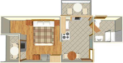 Studio-Apartment für zwei Personen mit Zusatzbett (0 m2)