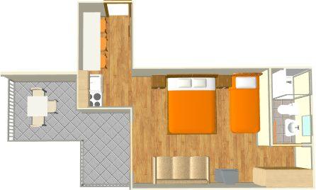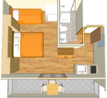Studio-Apartment für zwei Personen mit zwei Zusatzbetten (0 m2)
