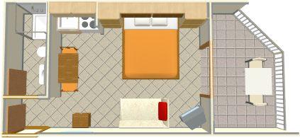 Studio-Apartment für zwei Personen mit Zusatzbett (0 m2)