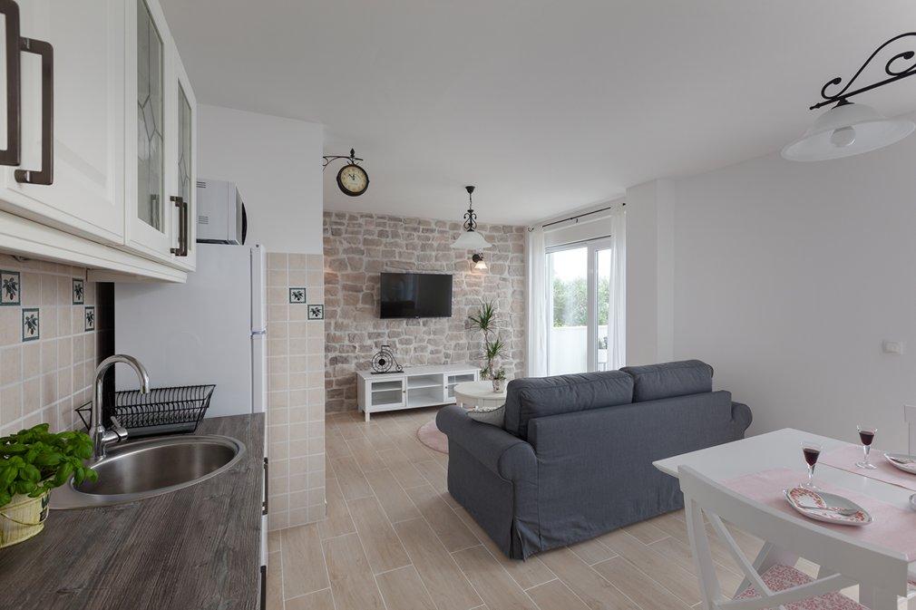 Wohnung modern mit hohem Stil ausgestattet, mit allem, was Sie brauchen, um sich wie zu Hause zu fühlen, Sauberkeit auf dem Niveau, die Gastgeber freundlich und für jede Antwort auf Ihre Frage zur Verfügung, begrüßte uns mit Eis für Kinder, half Koffer zu bringen ... Wohnung mit schönen Meerblick, unvergessliche Sonnenuntergänge, ein paar Schritte zum Strand, sehr angenehme Atmosphäre, Ruhe für die Seele, klares Meer ... ein Ort, an den Sie immer wieder zurückkehren möchten ...