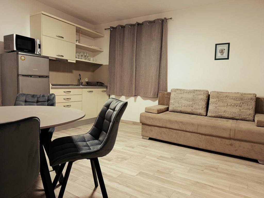 Die Apartments Mitan liegen im zentralen Teil von Tučepi, entlang der Hauptstraße. Die Anlage liegt 1,5 Gehminuten vom Strand entfernt, den Sie erreichen, indem Sie die Hauptstraße an der Fußgängerampel überqueren. In jedem Apartment sind die Küchen mit Geschirrspülern und Kühlschränken mit Gefrierfach ausgestattet. Drei Apartments verfügen über zwei oder drei Klimaanlagen, während zwei Apartments über eine Klimaanlage verfügen. Die Nutzung der Waschmaschine ist kostenlos. Parkplätze befinden sich im Hof vor dem Gebäude, jede Wohnung verfügt über einen eigenen Stellplatz.