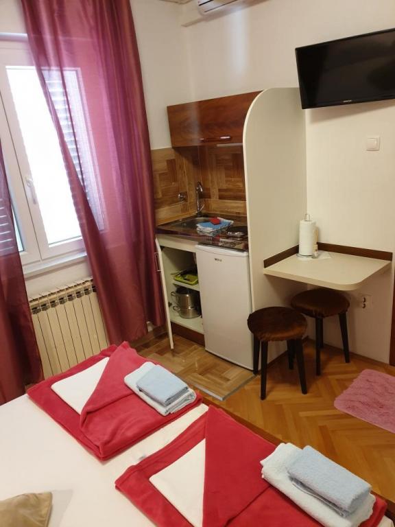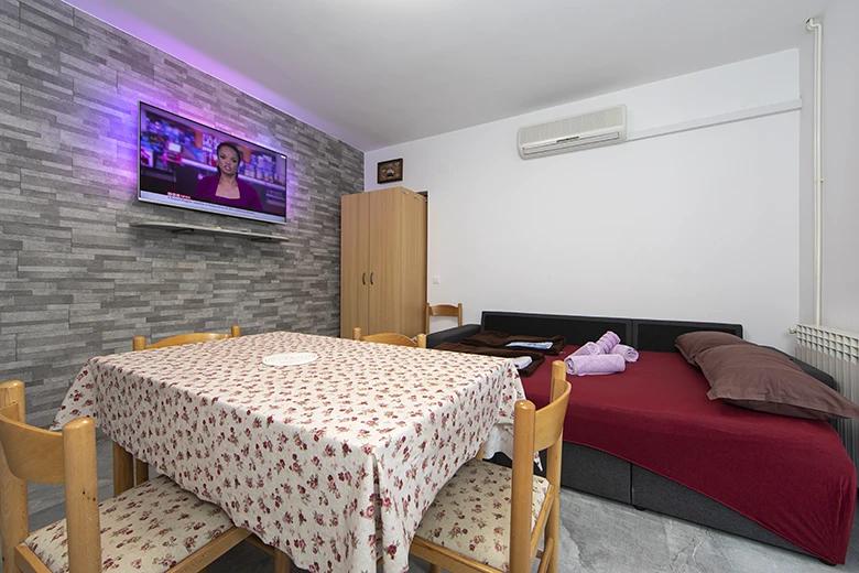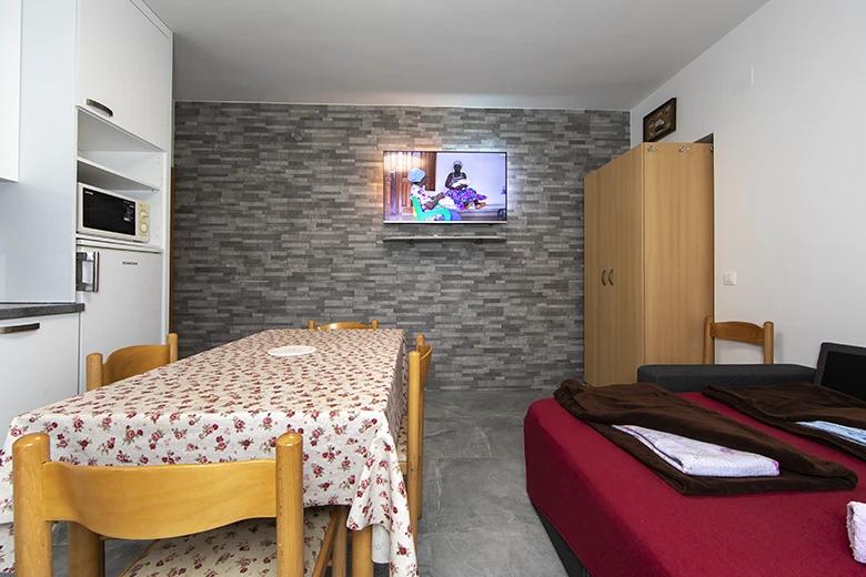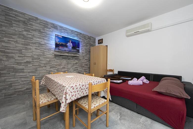 Die Zimmer und Apartments in der Nähe von Meer und Sandstrände. Die Anlage befindet sich 400 Meter vom Zentrum und dem nächsten Restaurant nur 50 Meter entfernt.