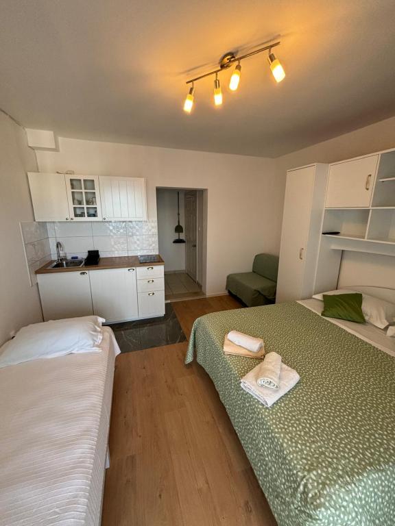 Wir befinden uns im Zentrum, 50 m vom schönen Strand in Tučepi, (4km), Apotheken, Geschäfte und Wohnungen sind ausgestattet restorana.Svi klma Einrichtungen, WLAN und Privat parkingom.Uz reiche Gastronomie, Sport-, Kultur- und Unterhaltungsangebot, in unserem schönen bleiben, der Ort wird nezaboravnim.Nedaleko von uns (10 Minuten zu Fuß) zu machen gibt es Tennisplätze und Sport igralista.Veliki Auswahl an Restaurants, die in 2 min zu erreichen ist. Es besteht die Möglichkeit, Ausflüge mit dem Boot, um unsere schönen Inseln zu besuchen und eine Reihe anderer Einrichtungen.