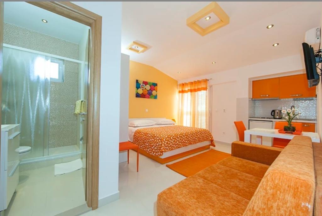 Die Villa Grgo befindet sich im Zentrum von Tučep, in der ersten Reihe zum Meer und ist nur 20 Meter von der Küste entfernt. Es bietet kostenloses WLAN, Klimaanlage und einen LCD-TV mit Satellitenprogrammen. Der nächste Strand ist nur 50 Meter entfernt. Die meisten Studios und Apartments verfügen über einen eigenen Balkon und einen Blick auf das Meer oder das Biokovo-Gebirge. Wir haben kostenlose Parkplätze vor oder hinter der Villa im Schatten. Alle Wohneinheiten verfügen über eine voll ausgestattete Küche mit Essbereich und ein Badezimmer mit Dusche, Pflegeprodukten und Haartrockner. Der Flughafen Split liegt 75 km von der Villa Grgo entfernt. Ein Flughafentransfer ist auf Anfrage und gegen Aufpreis verfügbar.