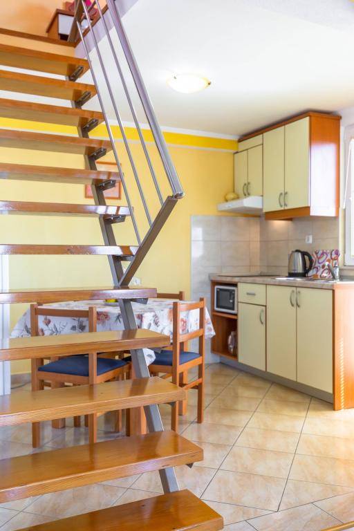 Die Wohnung war sauber und gut ausgestattet, der Gastgeber war mehr als freundlich und hilfsbereit, aber unaufdringlich. Erwähnenswert ist, dass wir zusätzliche Handtücher und ausreichend Toilettenpapier, Müllbeutel usw. zur Verfügung hatten. Die Lage ist ausgezeichnet, in der Nähe des Strandes, der Bäckerei, des Geschäfts, des Restaurants und allem, was Sie im Urlaub brauchen. Ich kann es auf jeden Fall wärmstens empfehlen.