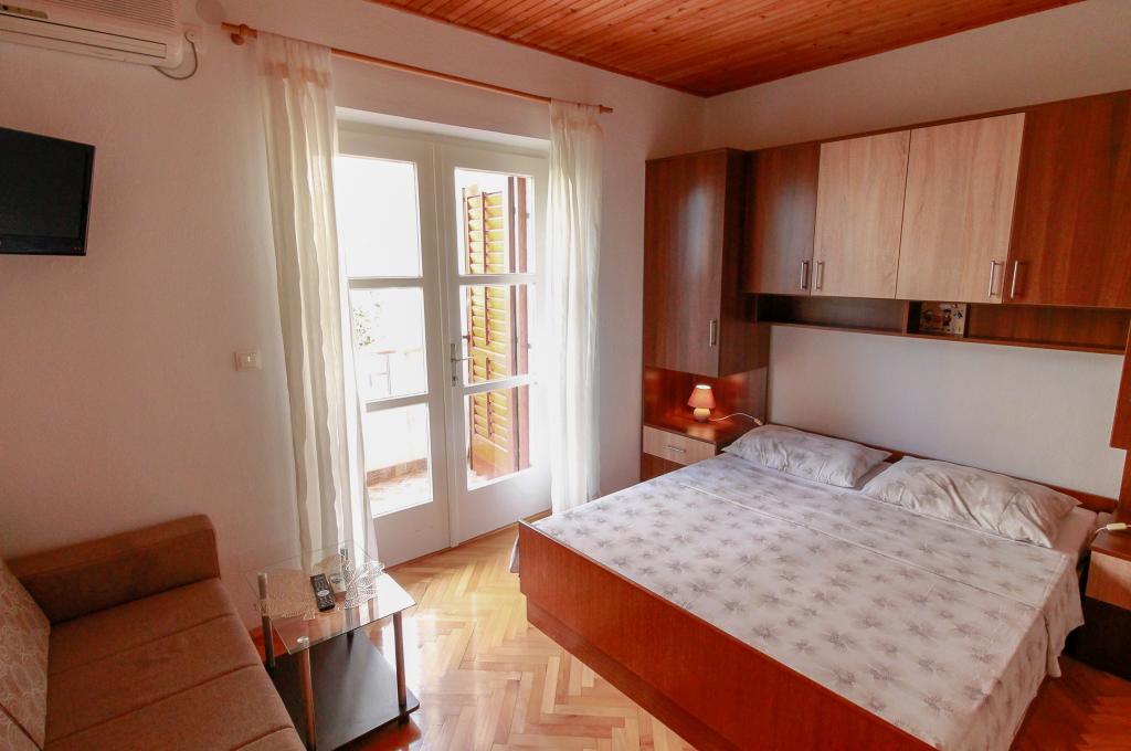 Villa Ševelj liegt 10 m vom Strand entfernt, erste Reihe zum Meer. Ruhiger Garten mit Olivenhain und Parkplatz, Kinderspielplatz und Tischen im Schatten.