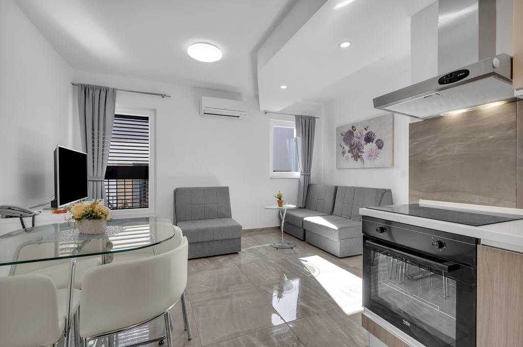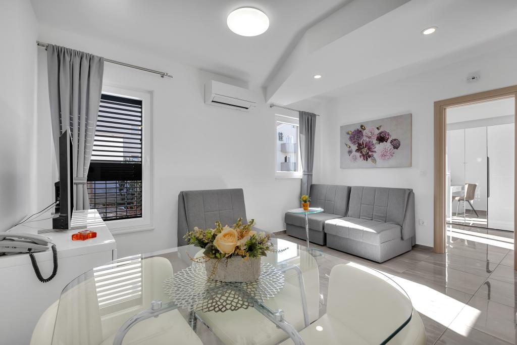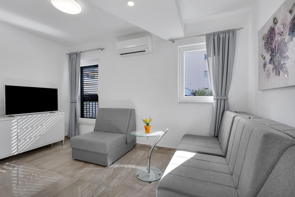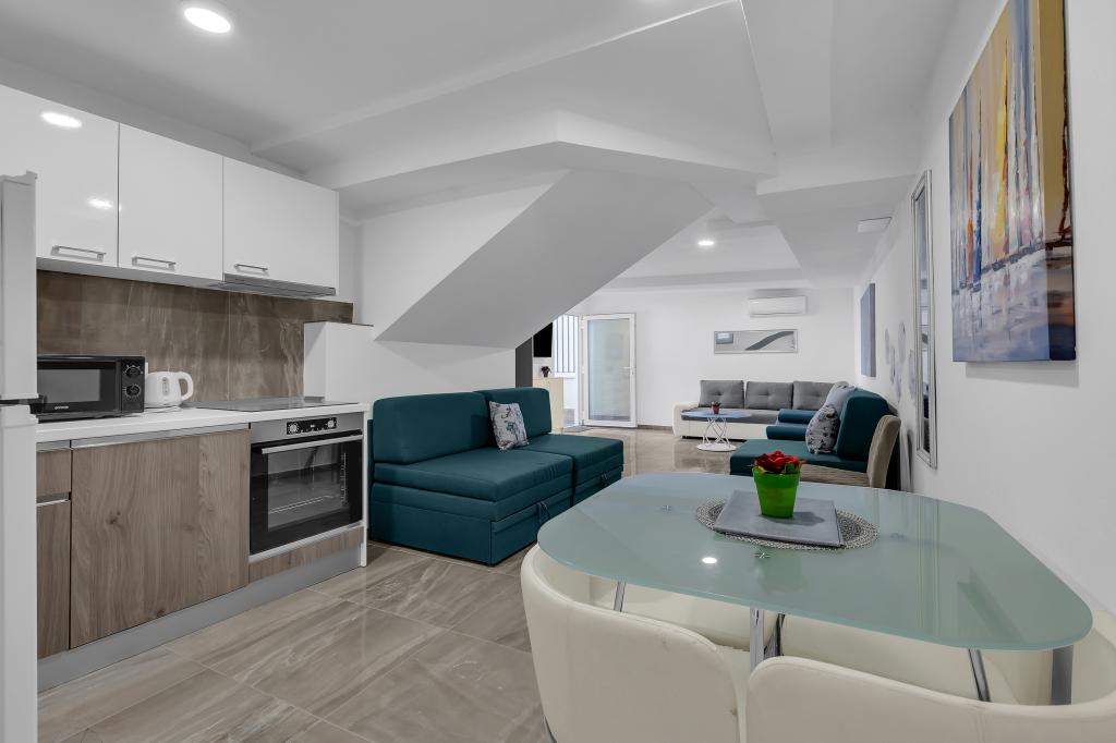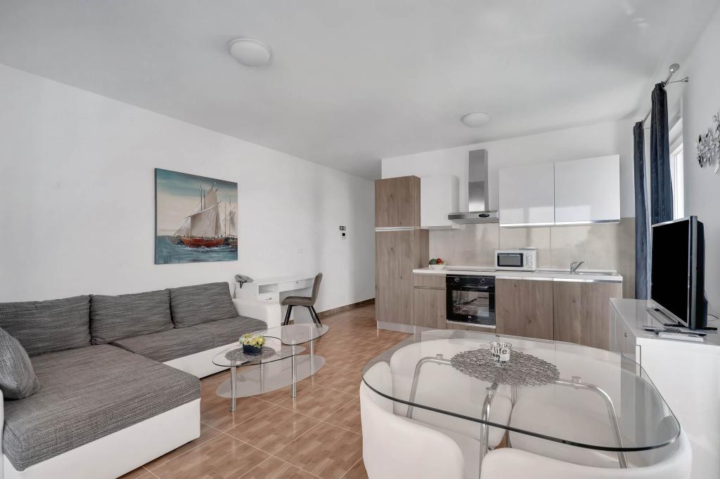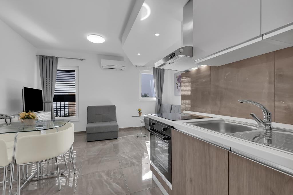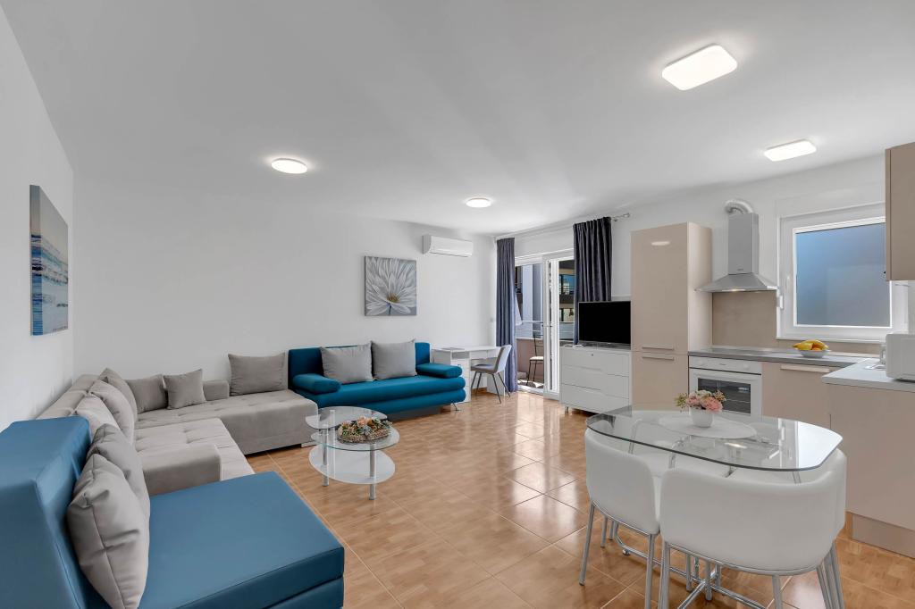 Vollständig und modern ausgestattete, exklusive und luxuriöse 4-Sterne-Apartments in Tučepi in Meeresnähe (NEUBAU). Die Anlage liegt 5 Gehminuten vom Zentrum und 2 Gehminuten vom Strand (100 m) entfernt. Neben der voll ausgestatteten Anlage verfügt jedes Apartment über eine Garage, einen Aufzug und eine Terrasse. Der Preis für das Apartment beginnt bei 79 € pro Tag, abhängig von der Personenzahl und dem Zeitraum (Anzahl der Nächte). Die Kurtaxe ist im Preis inbegriffen.