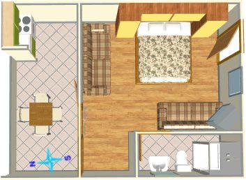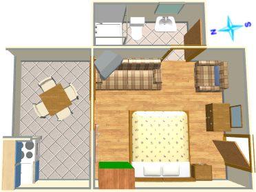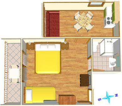 Ferienwohnung für zwei Personen mit zwei Zusatzbetten (25 m2)